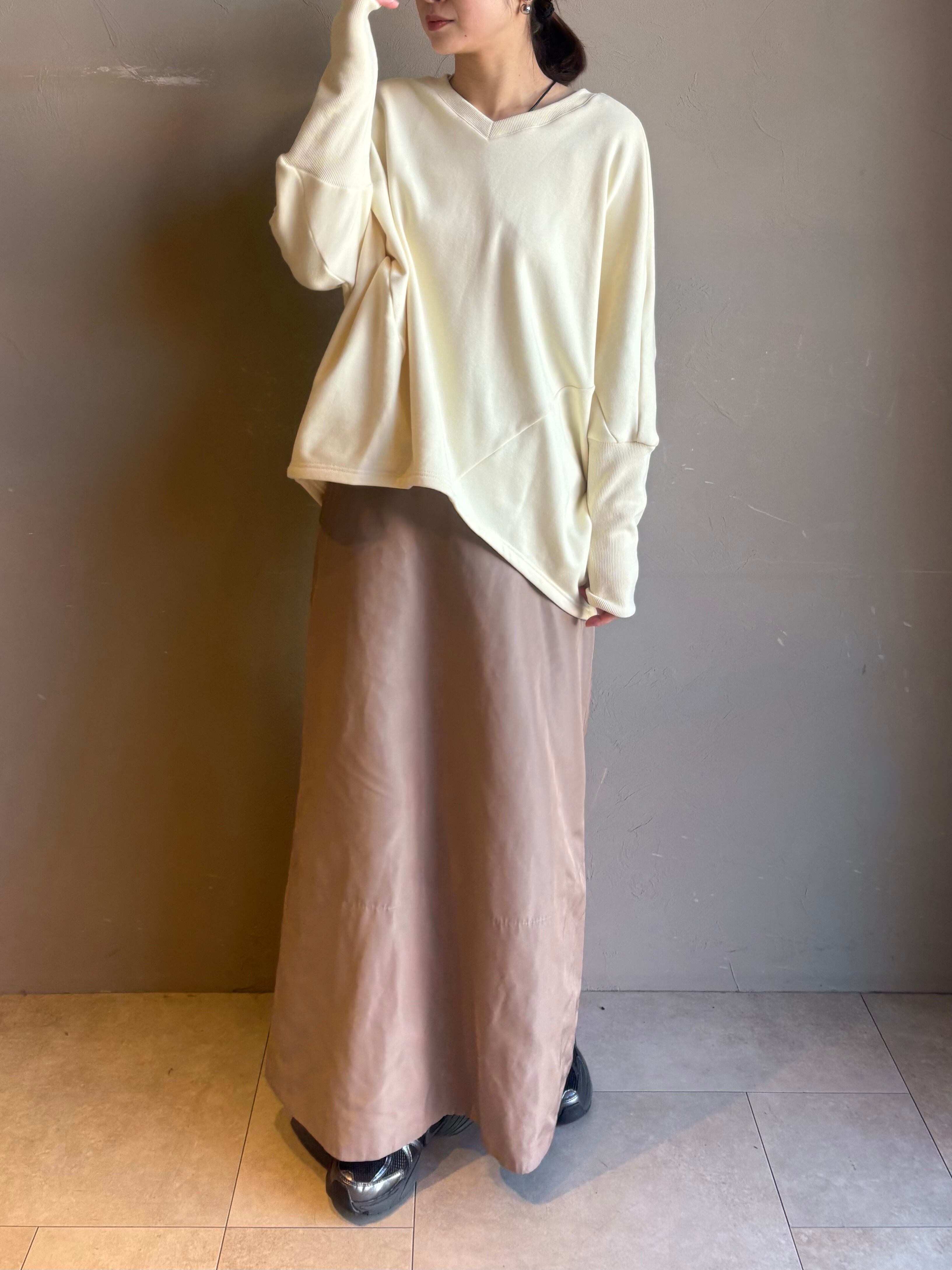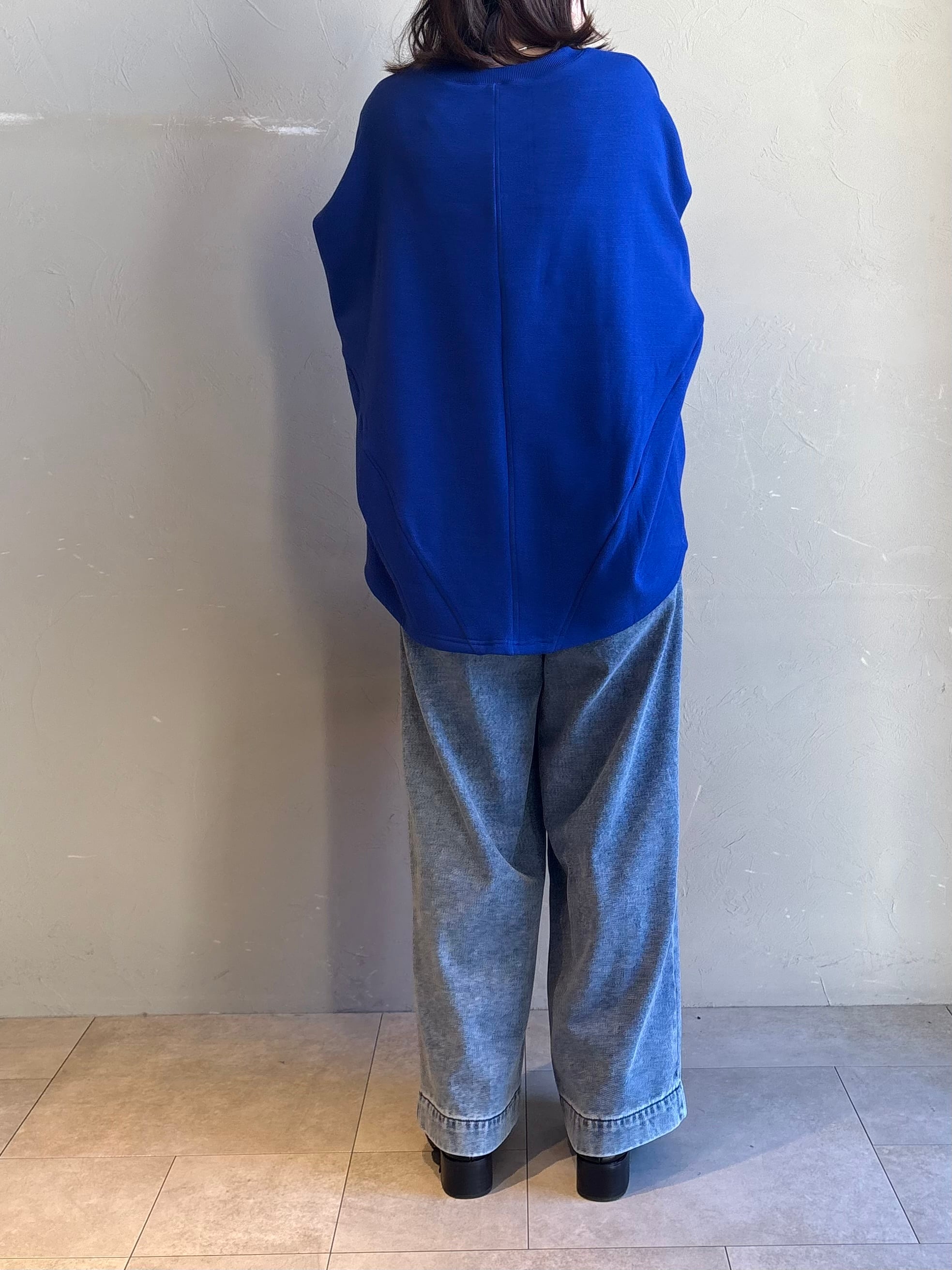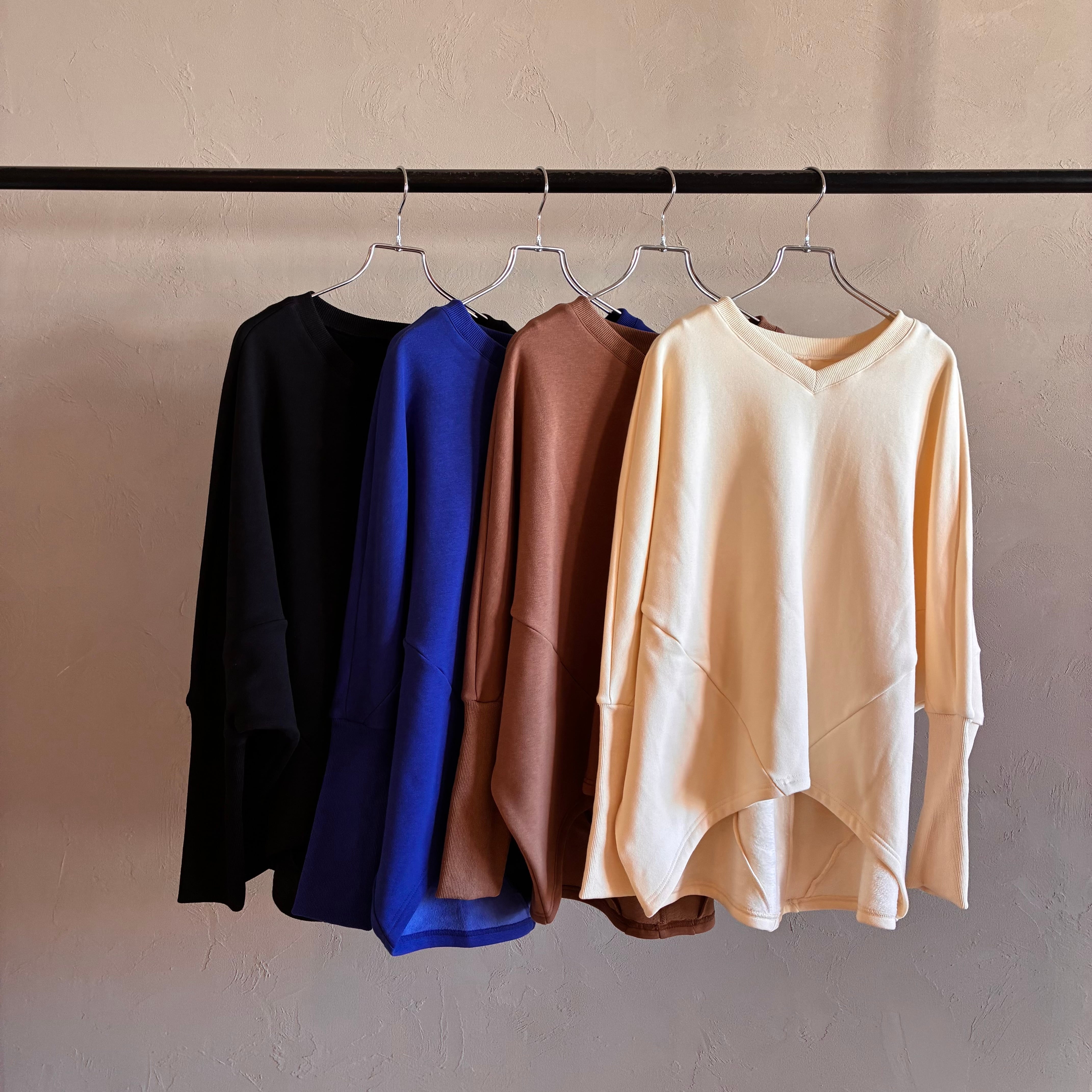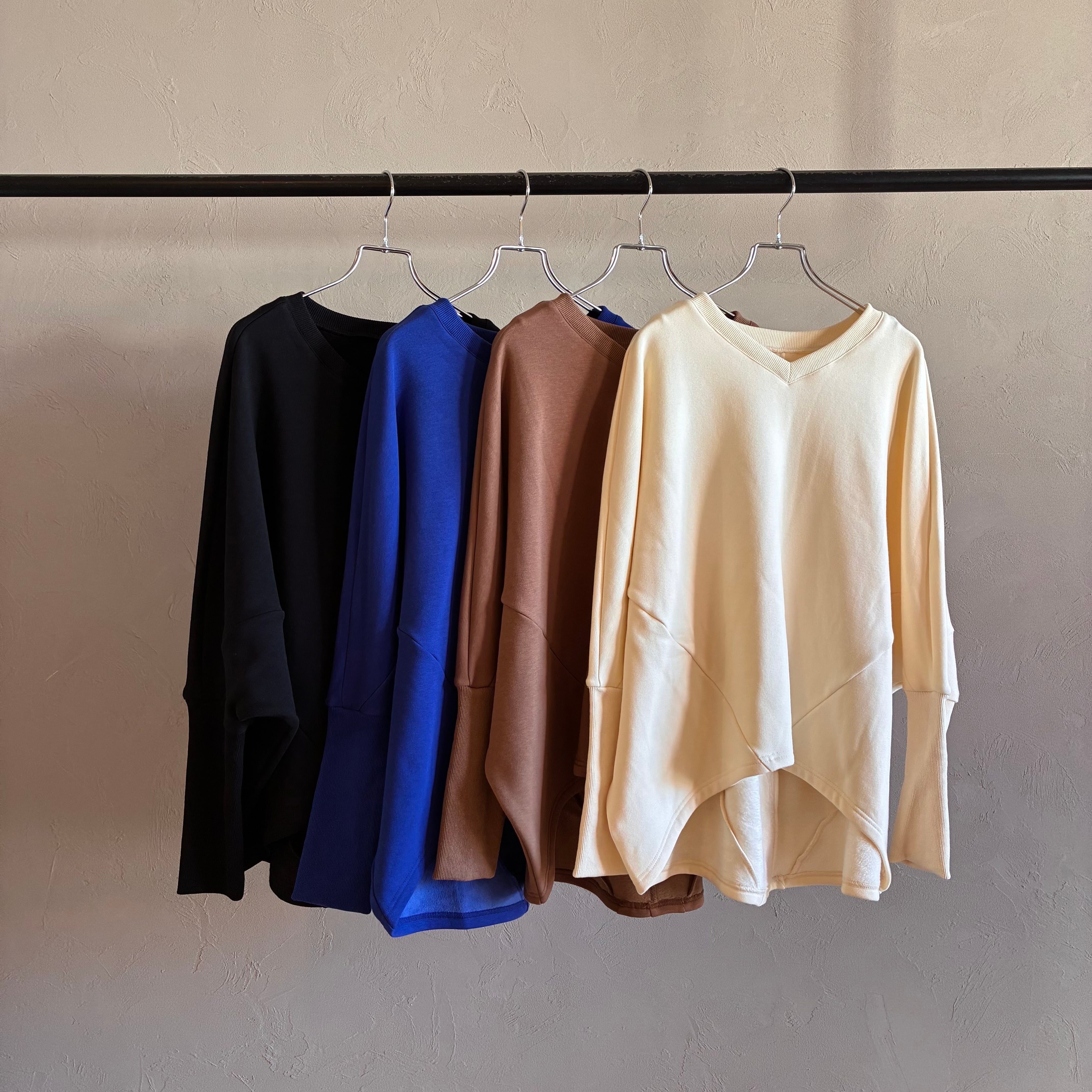 肩まわりが楽なドルマンシルエットで、着るだけでこなれた立体感に。前後差のある丸みヘムが腰回りをやさしくカバーし、デニムもスラックスもすっきり見せます。