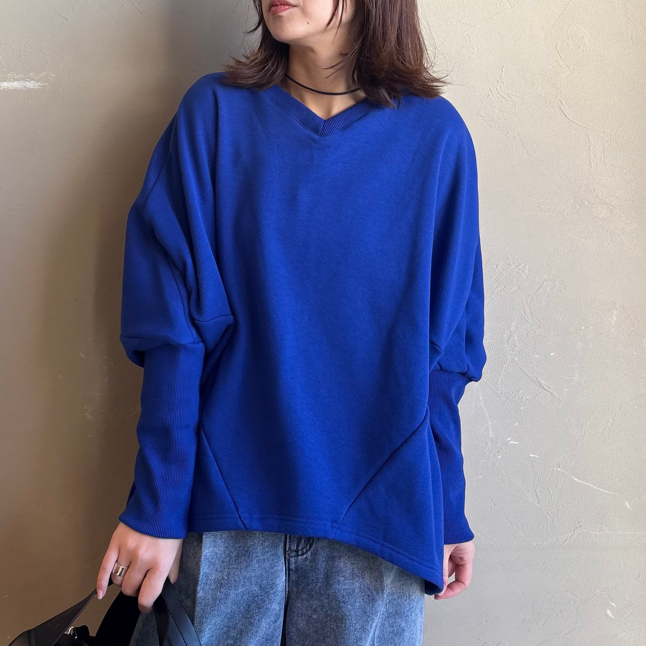 CYNICALのボンバーヒートVネックドルマントレーナーは、ふんわり裏起毛のぬくもりと、Vネックの抜け感が両立した大人のための一枚。