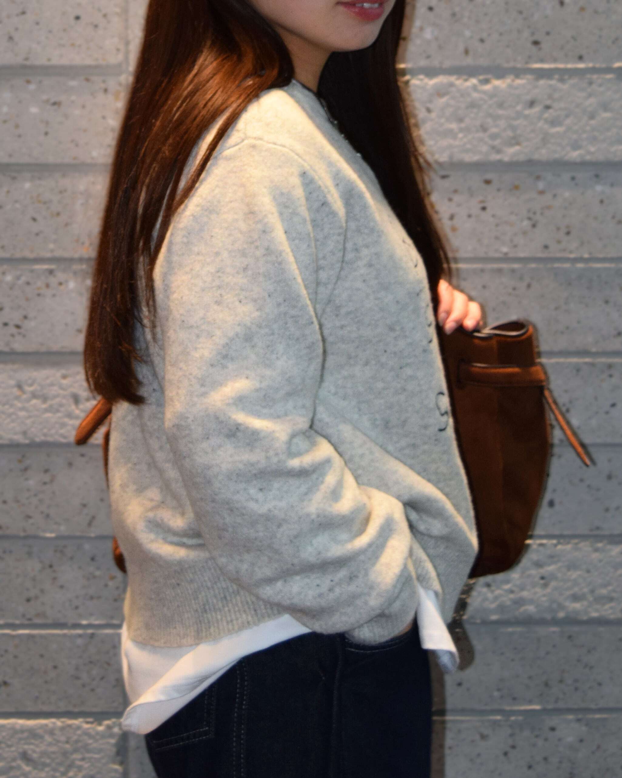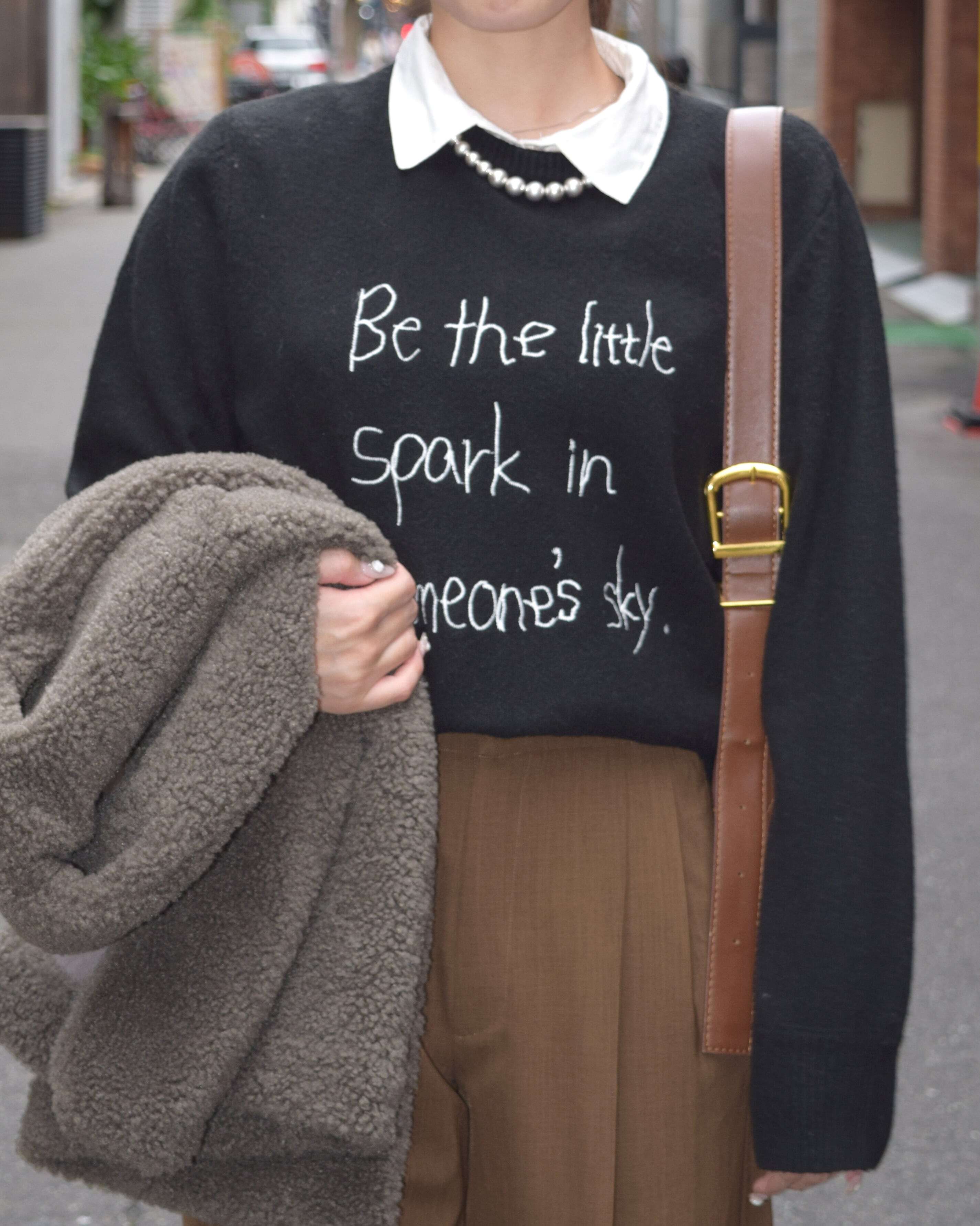 アウターの下からさりげなく刺繍が覗くので、冬のレイヤードにもピッタリ!