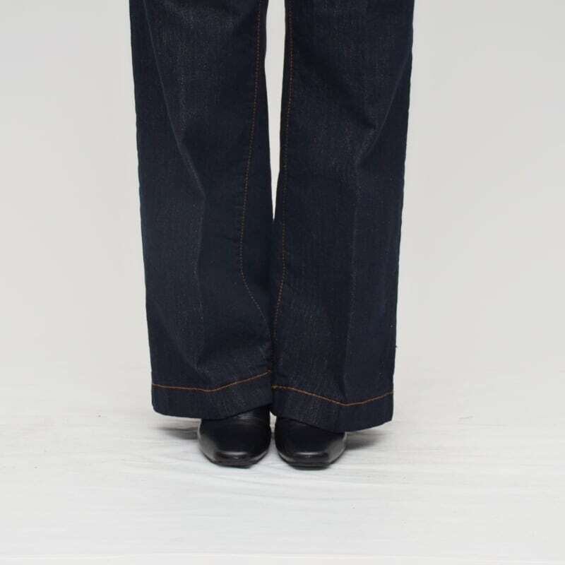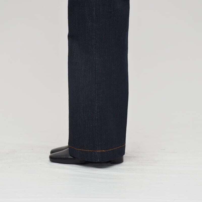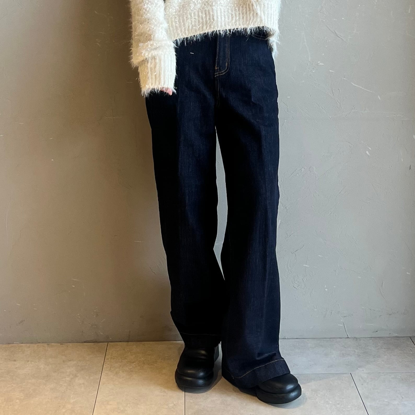 広がりすぎない絶妙な太さが、脚を長く、まっすぐに見せる美脚シルエット。