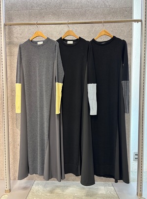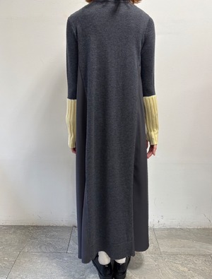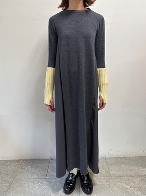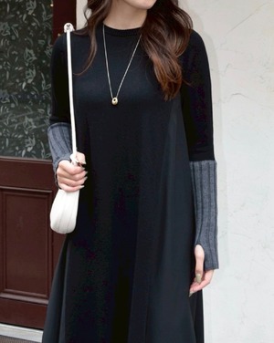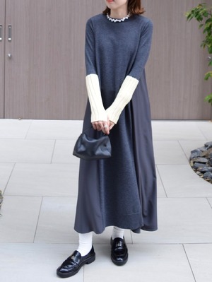【 ROSIEE 】アームウォーマーライク布帛ドッキングニットワンピース
