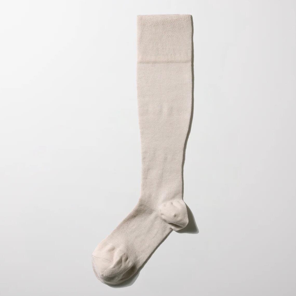 オーストラリア産メリノウールの中でもわずか0.2%しか採れない希少なウールを採用。ふんわりと包み込まれるような肌ざわりが特長です。じんわりと心地よい温もりをもたらす保温性と、ムレを感じにくい通気性を兼ね備えた快適な履き心地。鹿の子調のプレーン編みで脚全体を面で支えるようにサポートし、土踏まずやふくらはぎ下を持ち上げるようなフィット感を実現しました。一般医療機器の段階着圧設計により、気になる脚のむくみを予防・軽減。