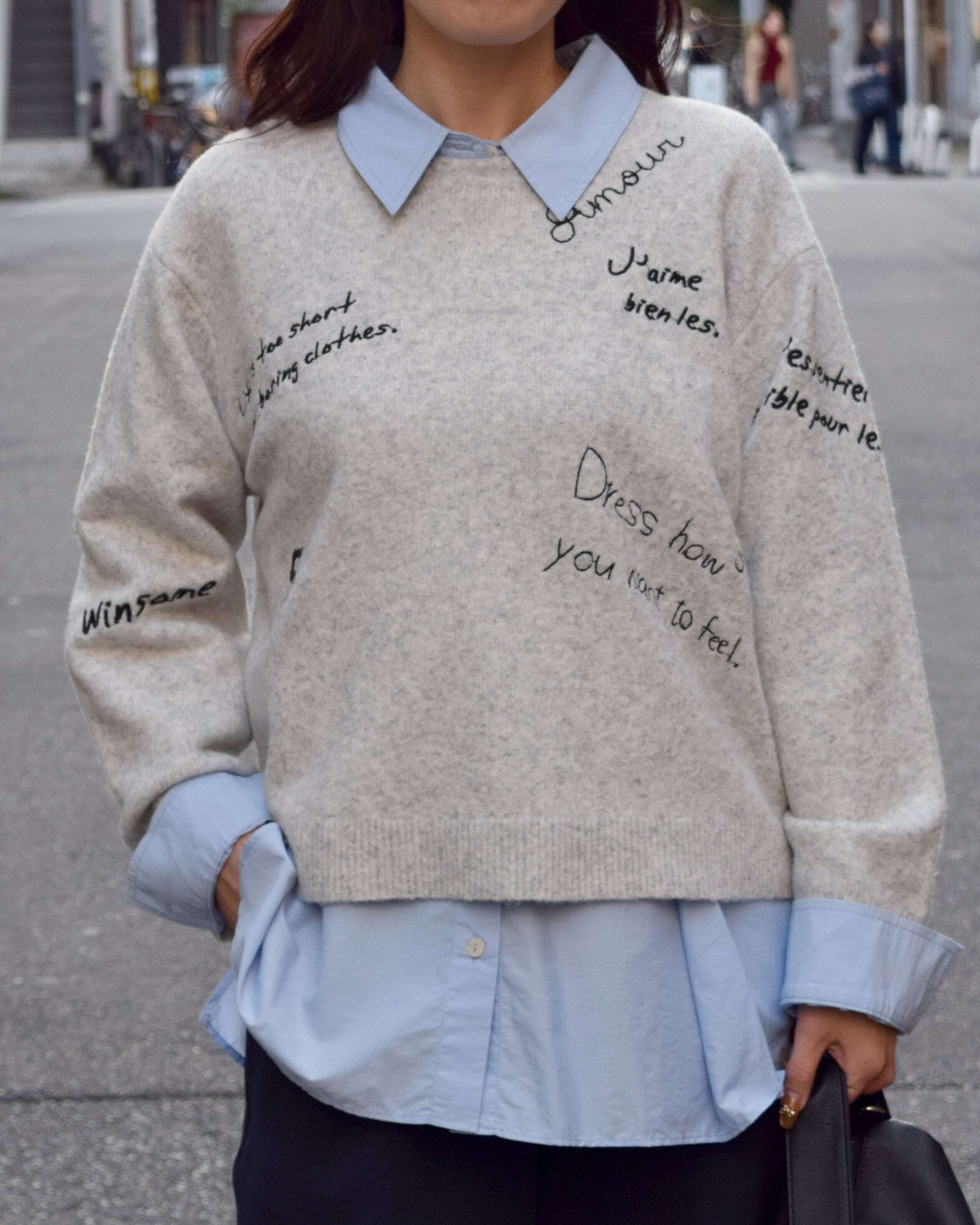 アウターの下からさりげなく刺繍が覗くので、冬のレイヤードにもピッタリ!