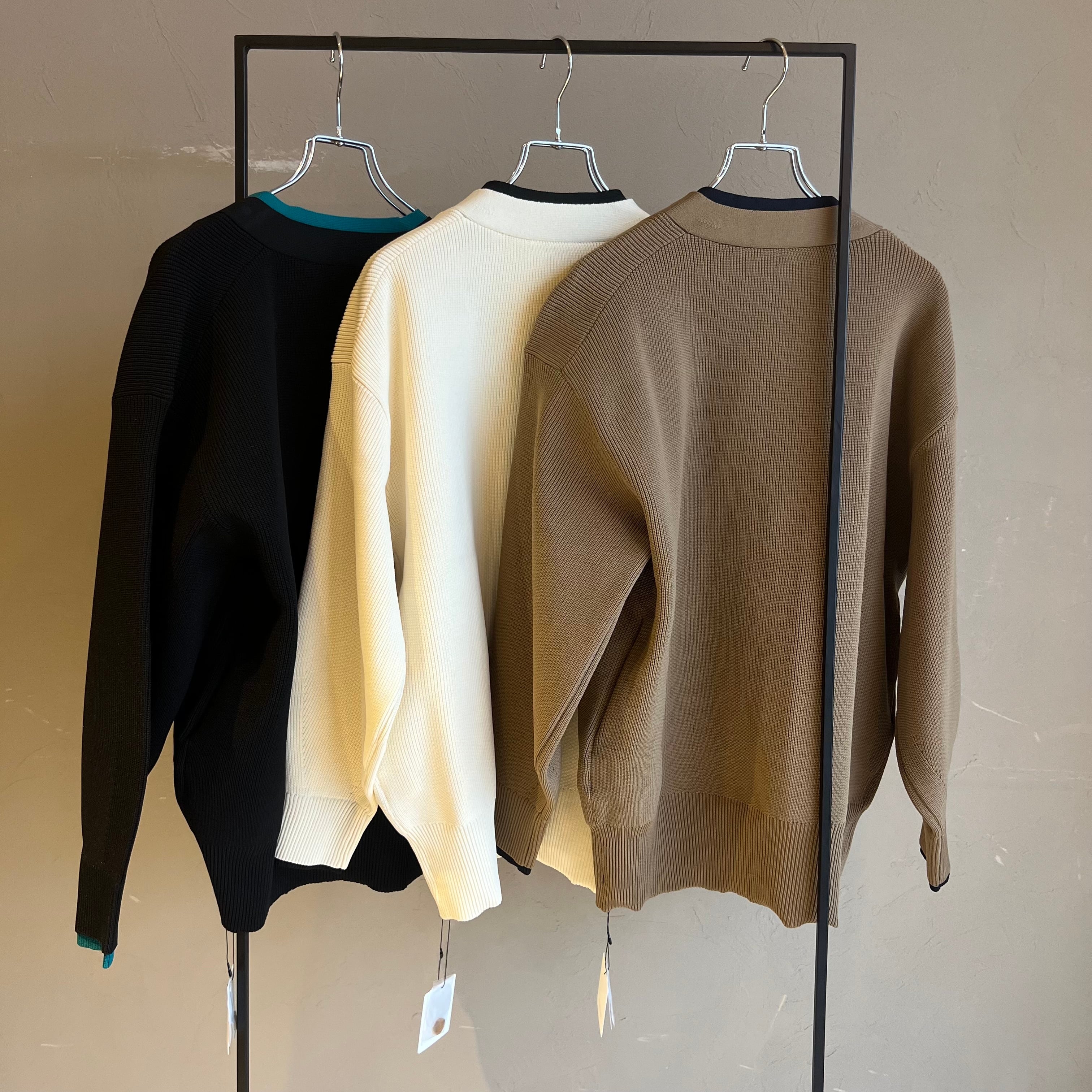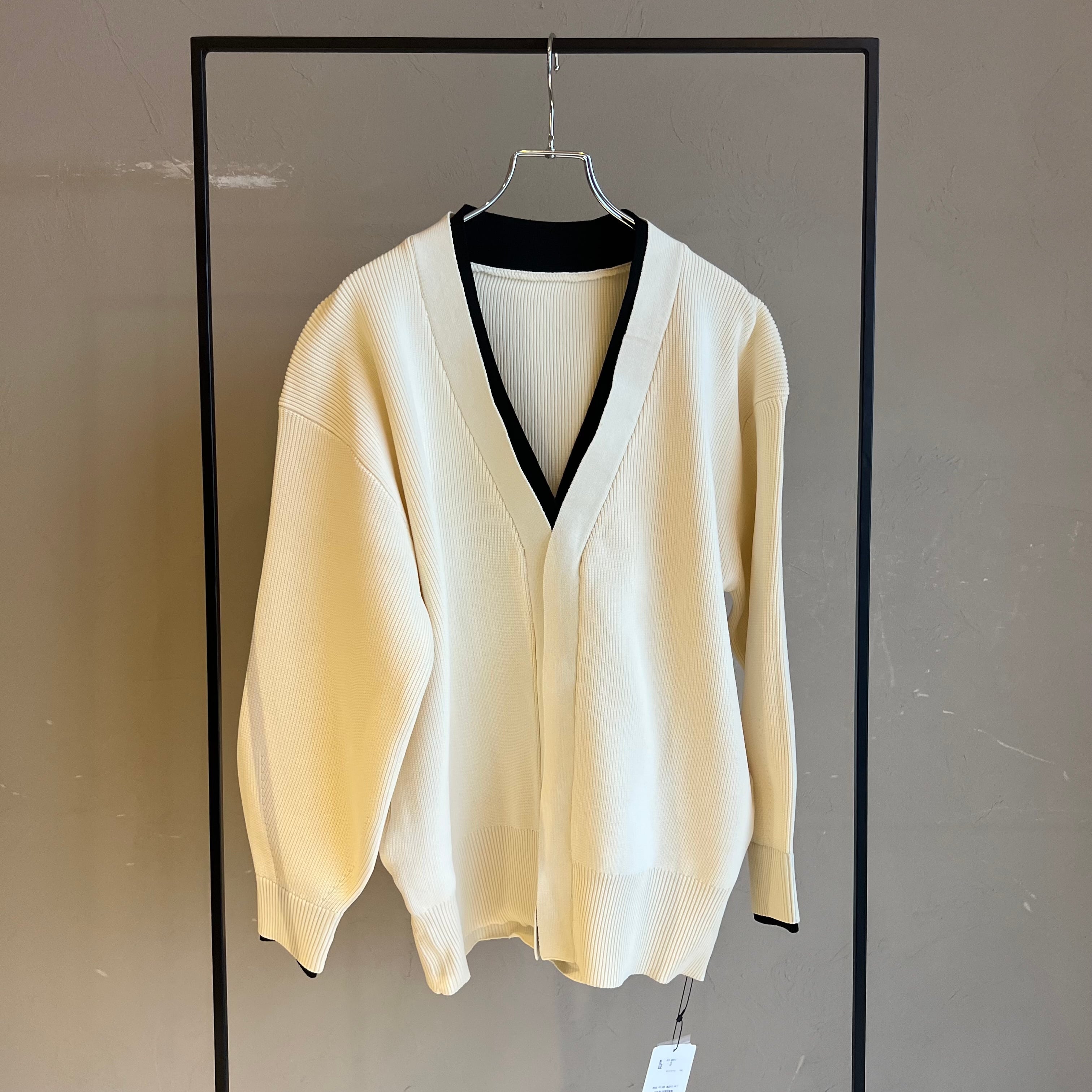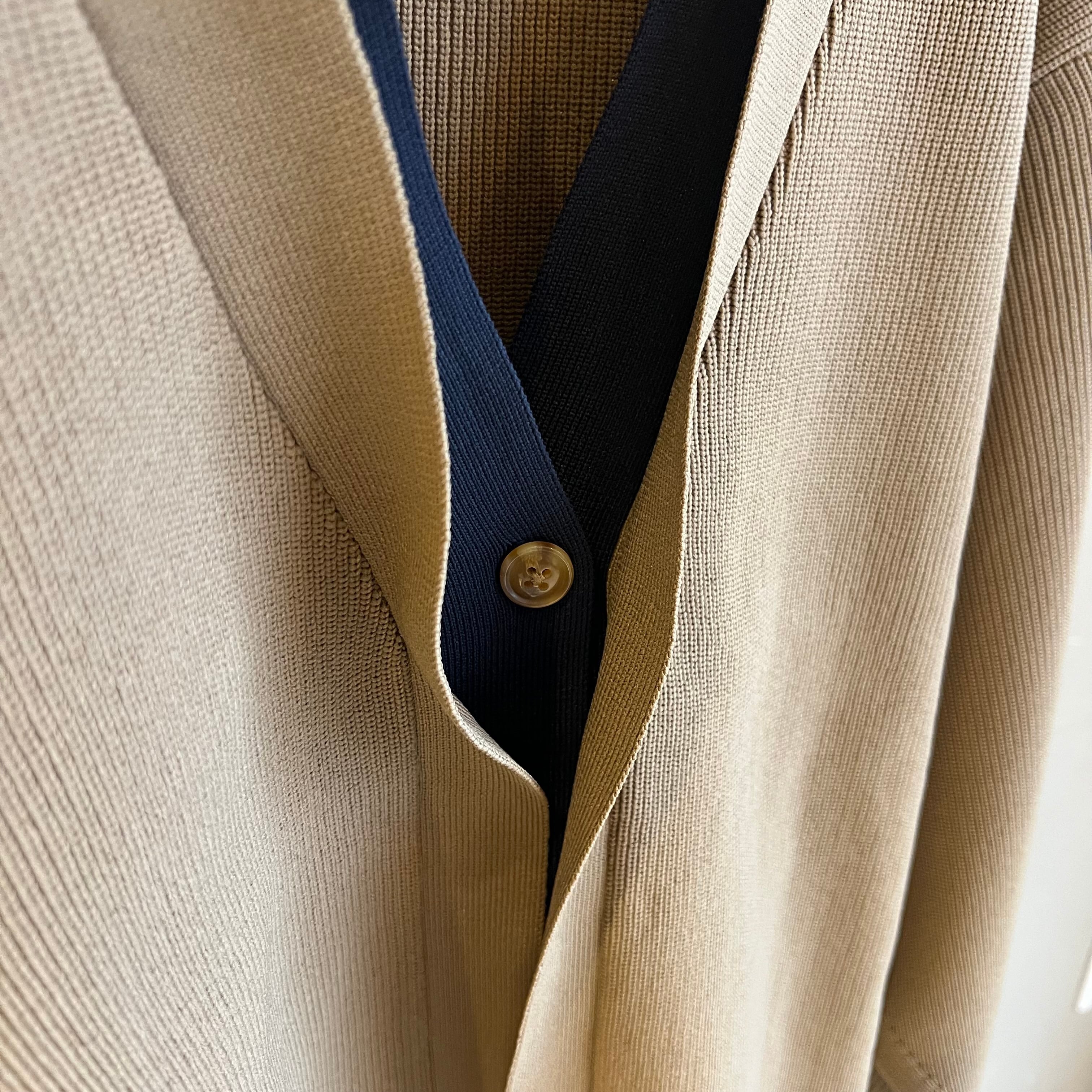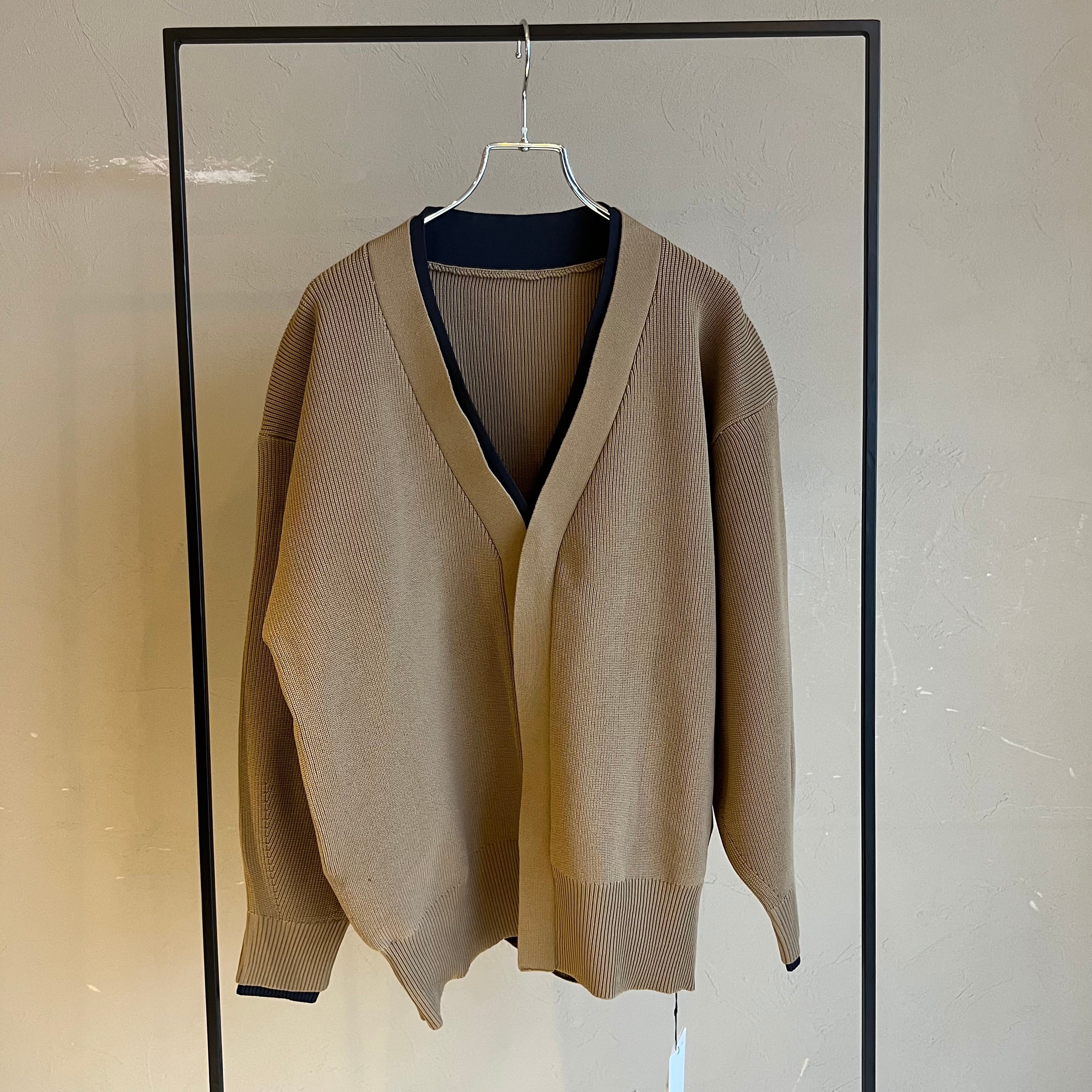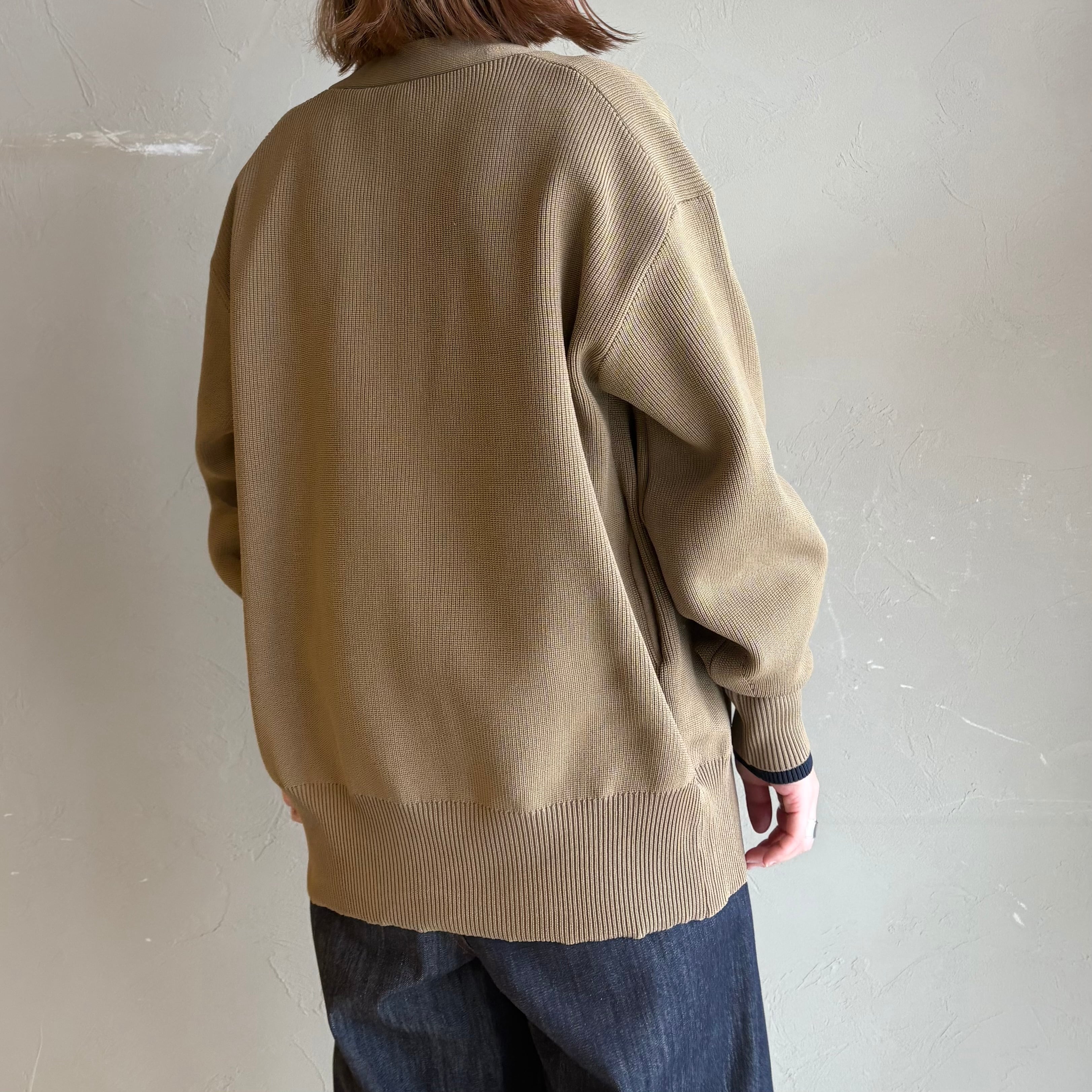 ポリエステルニットで編まれたニットカーディガン。