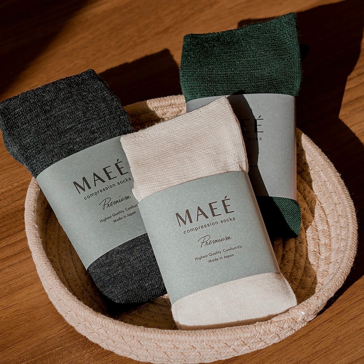 「綿MAEÉ初の“プレミアムライン”、上質なメリノウールを贅沢に使用した着圧ソックスです。