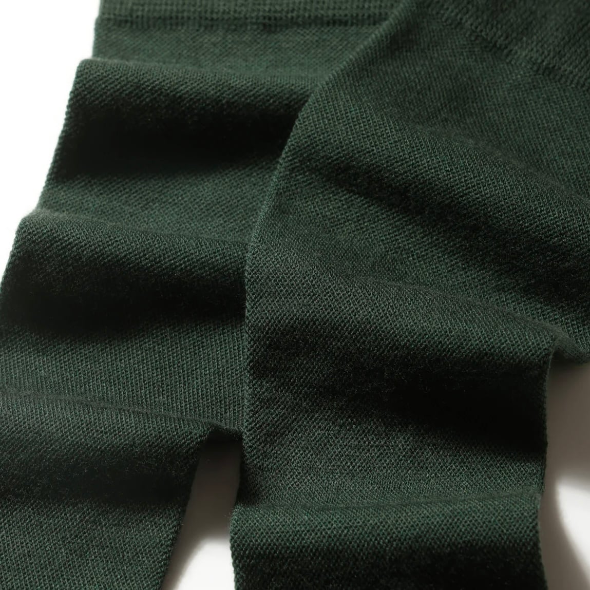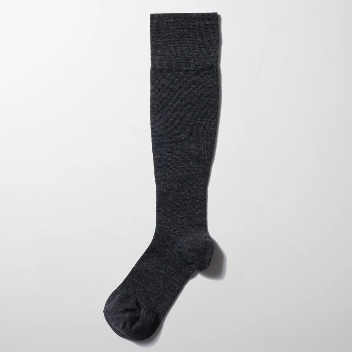 オーストラリア産メリノウールの中でもわずか0.2%しか採れない希少なウールを採用。ふんわりと包み込まれるような肌ざわりが特長です。じんわりと心地よい温もりをもたらす保温性と、ムレを感じにくい通気性を兼ね備えた快適な履き心地。鹿の子調のプレーン編みで脚全体を面で支えるようにサポートし、土踏まずやふくらはぎ下を持ち上げるようなフィット感を実現しました。一般医療機器の段階着圧設計により、気になる脚のむくみを予防・軽減。