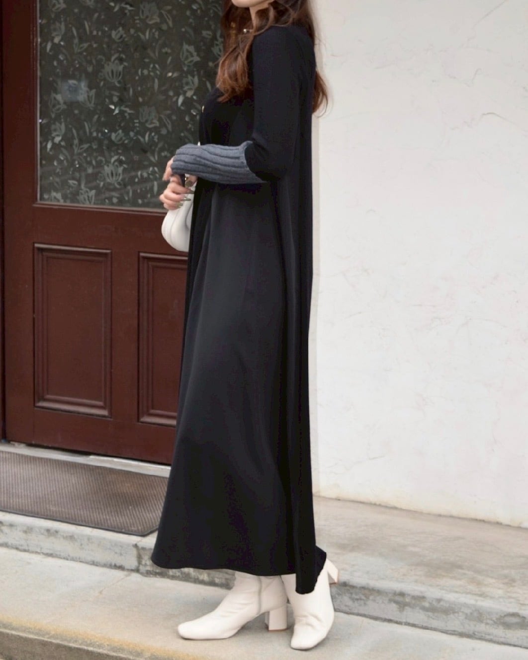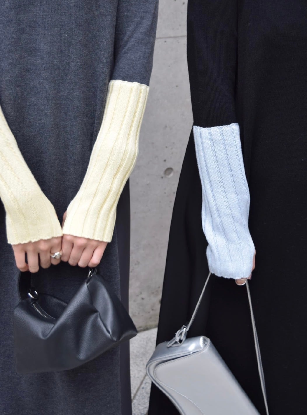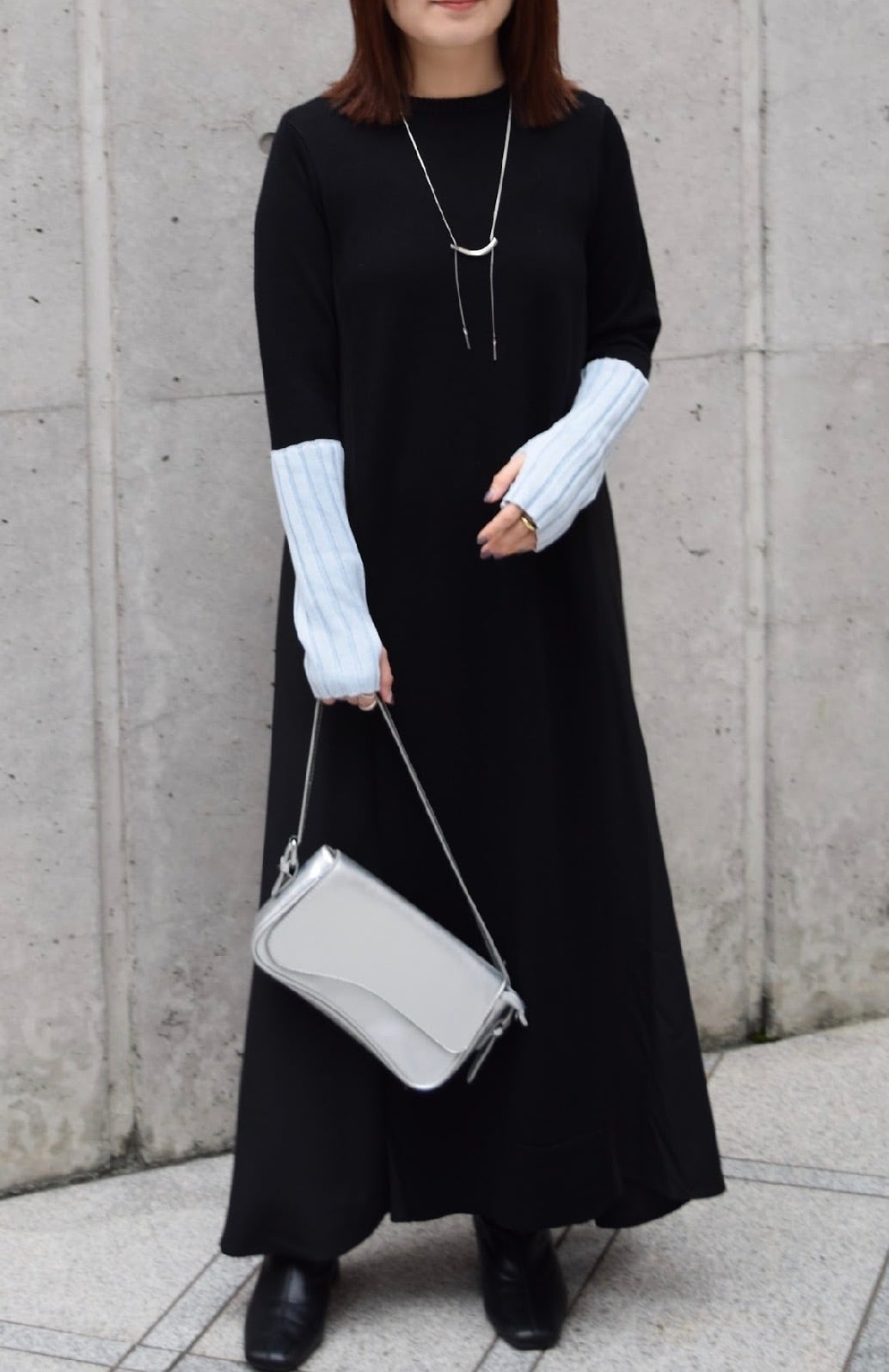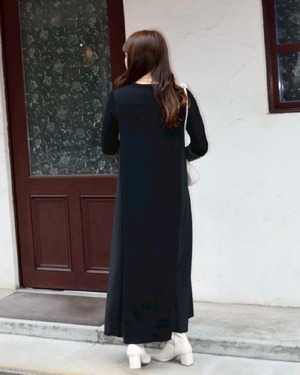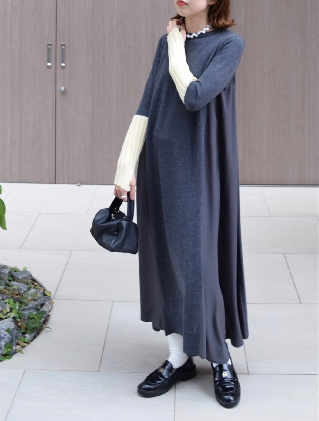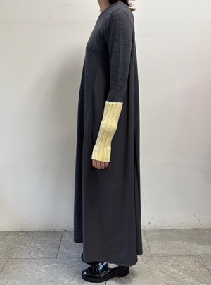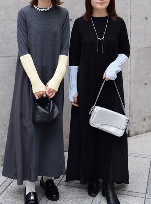 akiko_mitanさま専用ページ【 ROSIEE 】アームウォーマーライク布帛ドッキングニットワンピース ブラック×チャコール