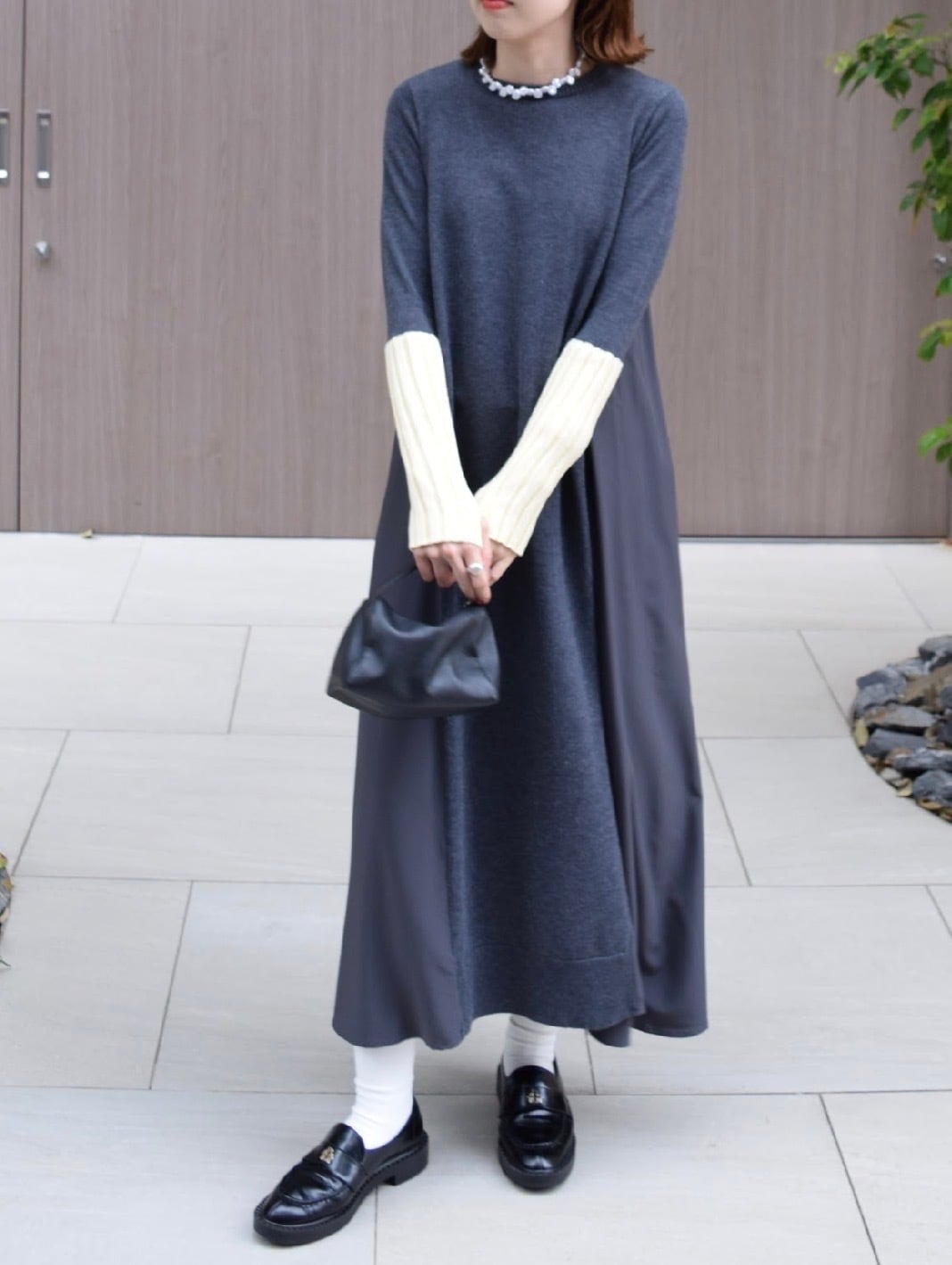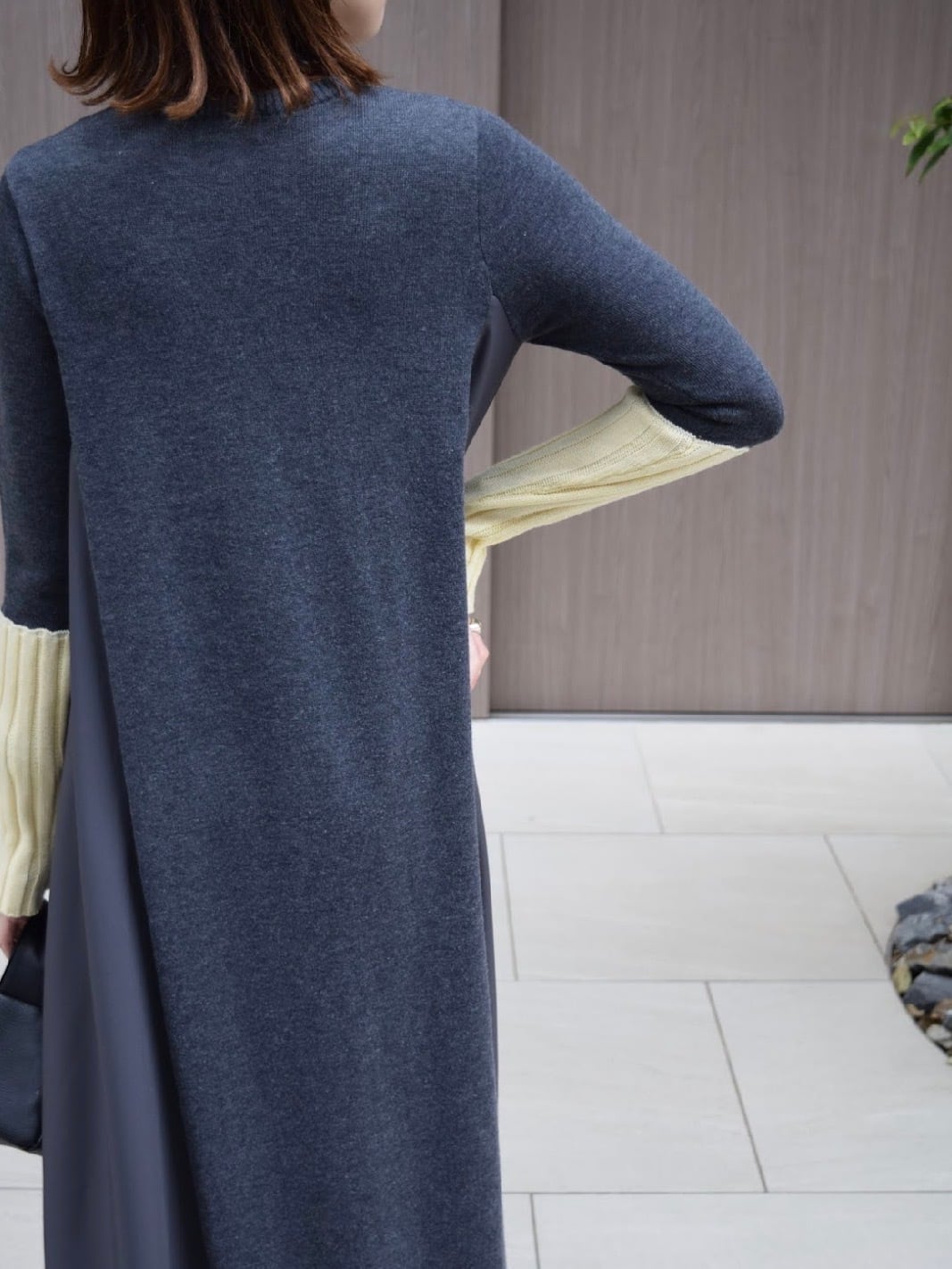 Mayu.uykaさま専用ページ:【 ROSIEE 】アームウォーマーライク布帛ドッキングニットワンピース ブラック×サックス