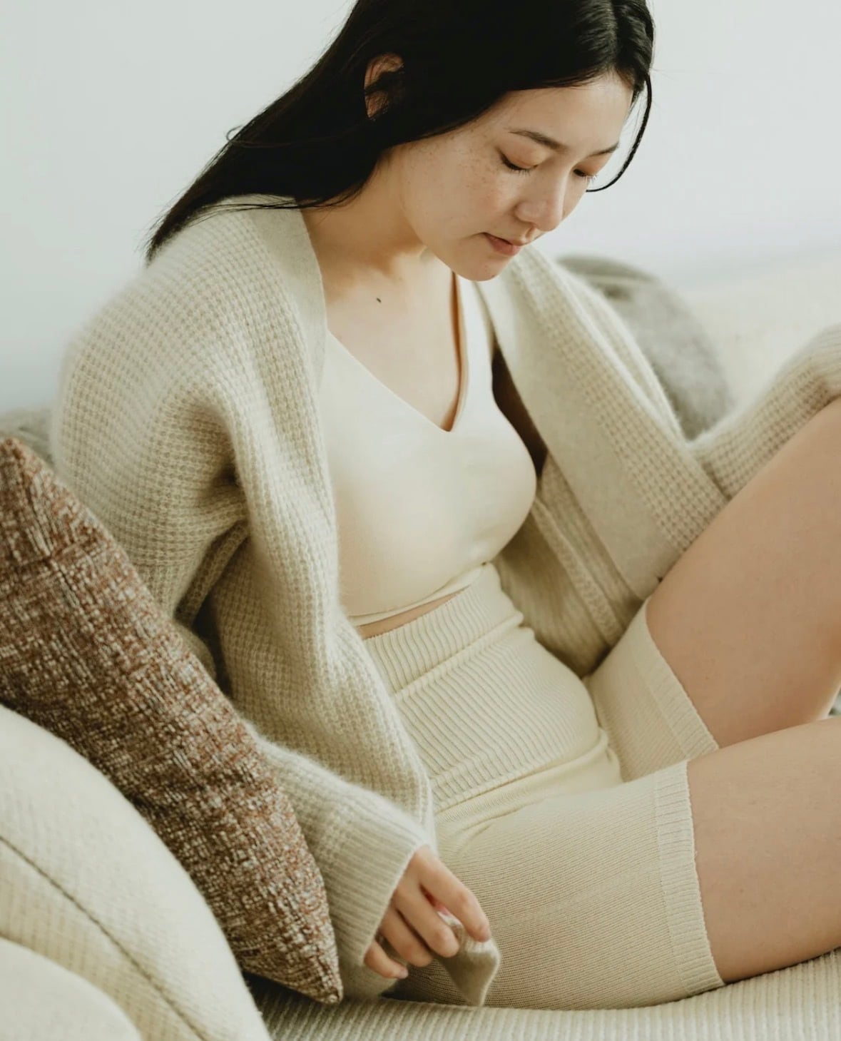 ホールガーメントと呼ばれる技術で、身体に沿うよう立体的に編み上げているため、縫い目がなく身体にきれいになじみます。