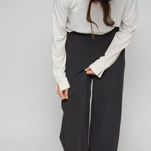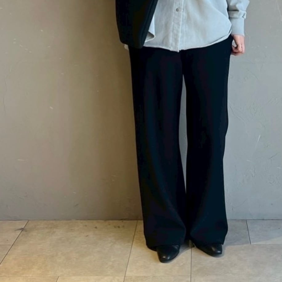 【 Praia 】梨地×裏起毛 美脚セミワイドパンツ