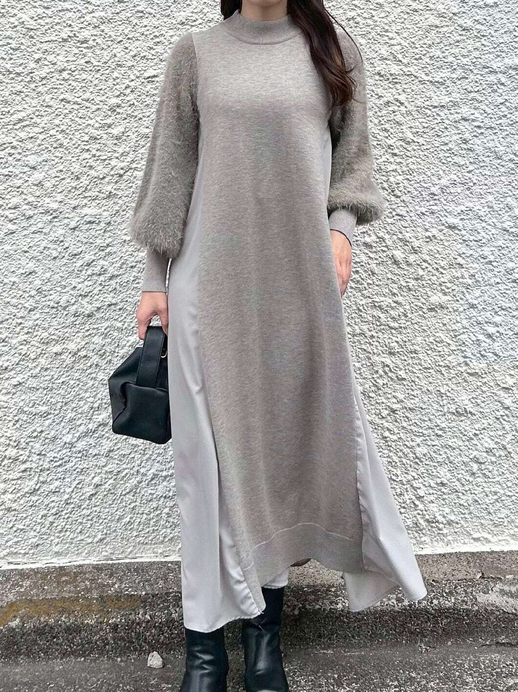 布帛ドッキングニットワンピース グレージュ ¥19800→¥13860