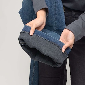 デニム生地の裏側に、**フリース素材を貼り合わせる(ボンディング)**ことで、高い保温性を実現。