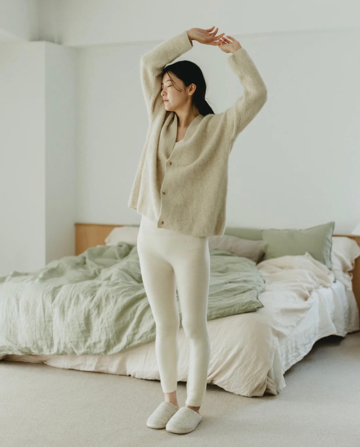 シルクとウールを最適な比率で組み合わせることで、ずっと身に着けていたい心地よさは生まれています。