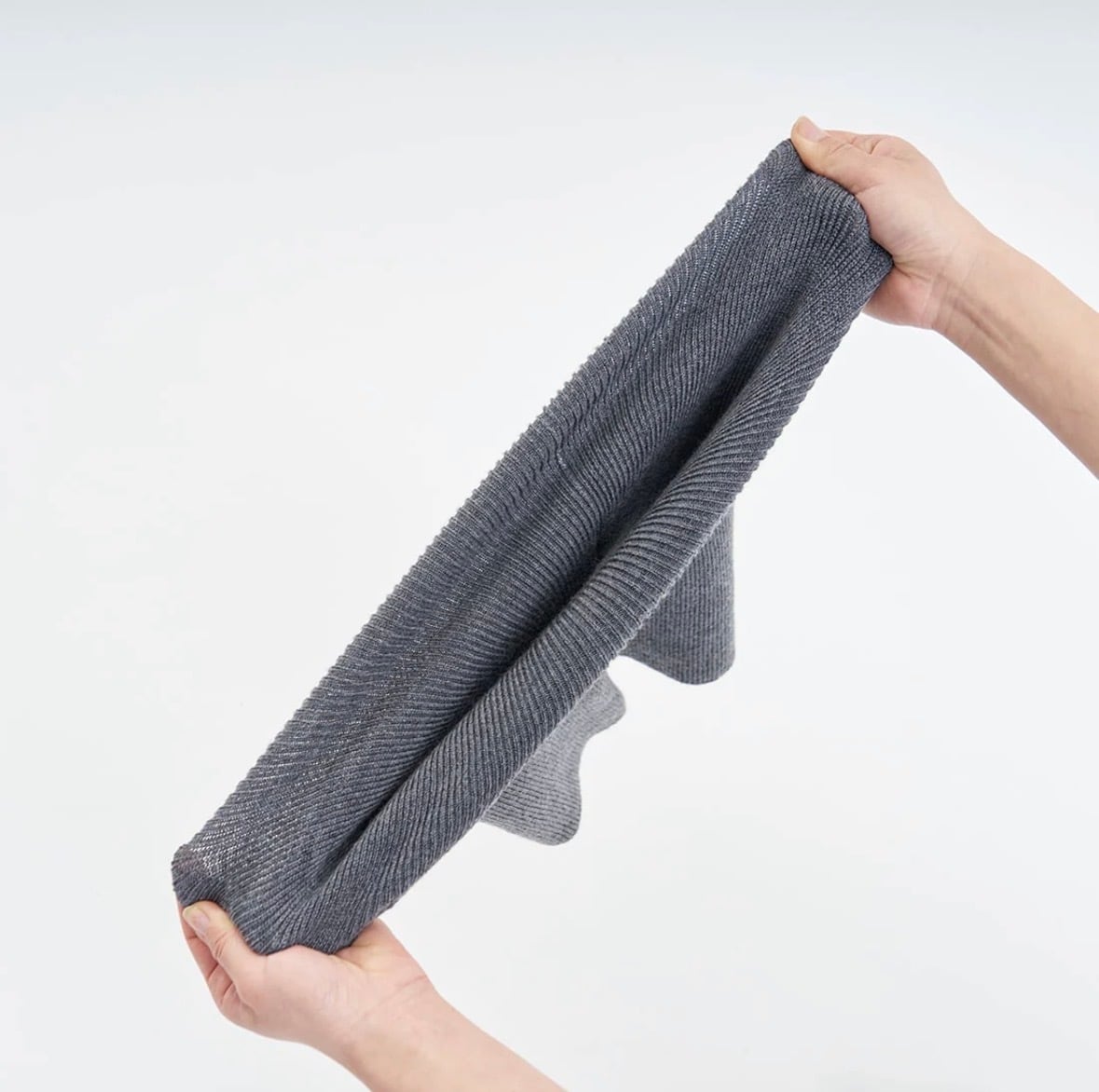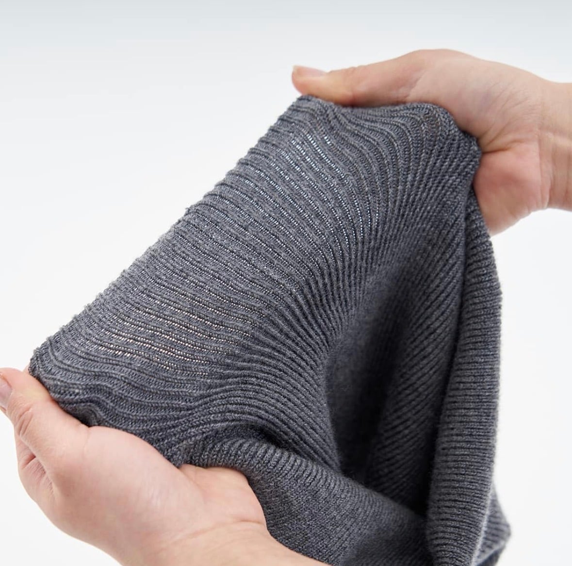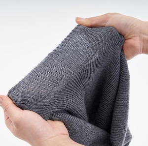 シルクとウールをたっぷり使いながら、伸縮性のある糸を編み込んでいるため、見た目以上によく伸びます。