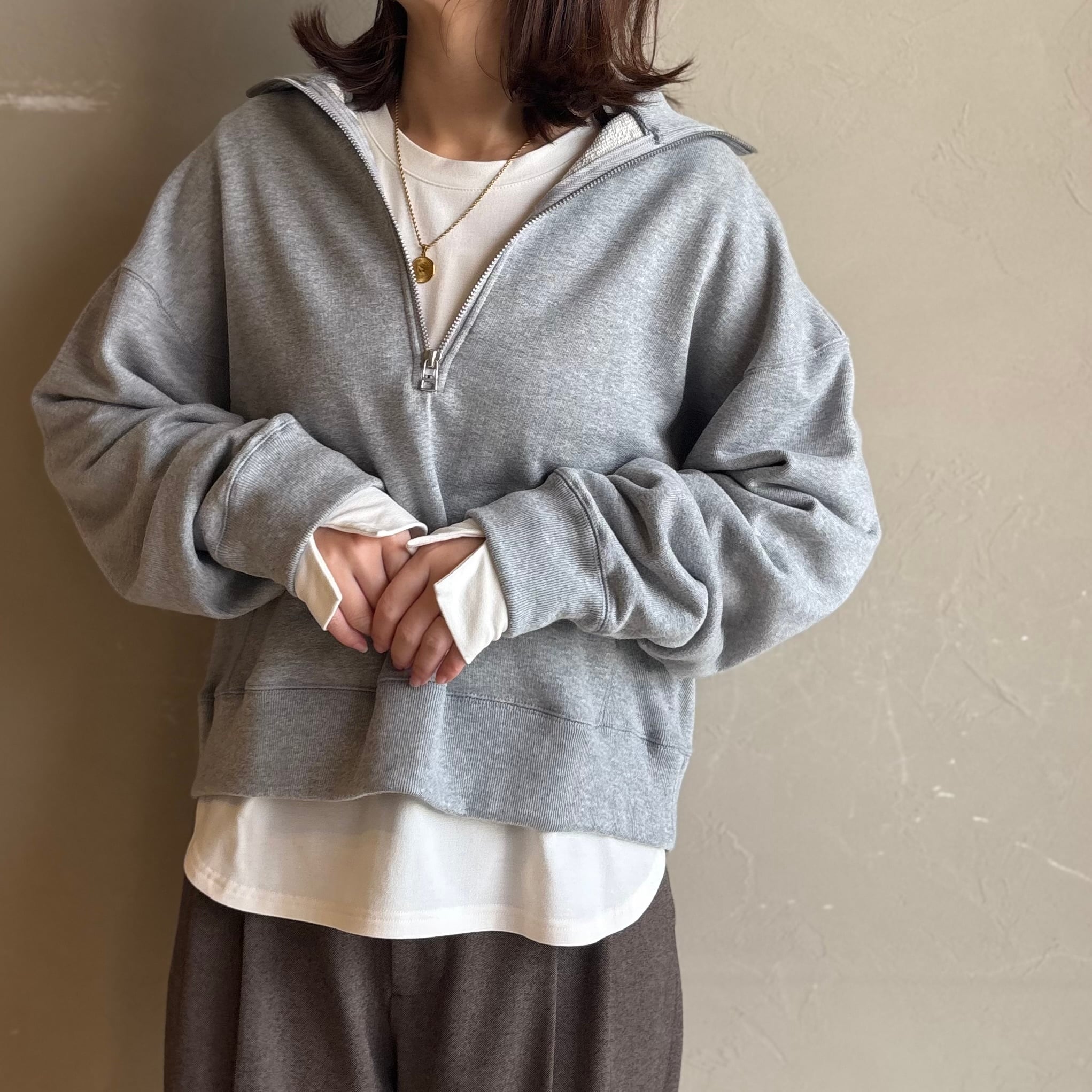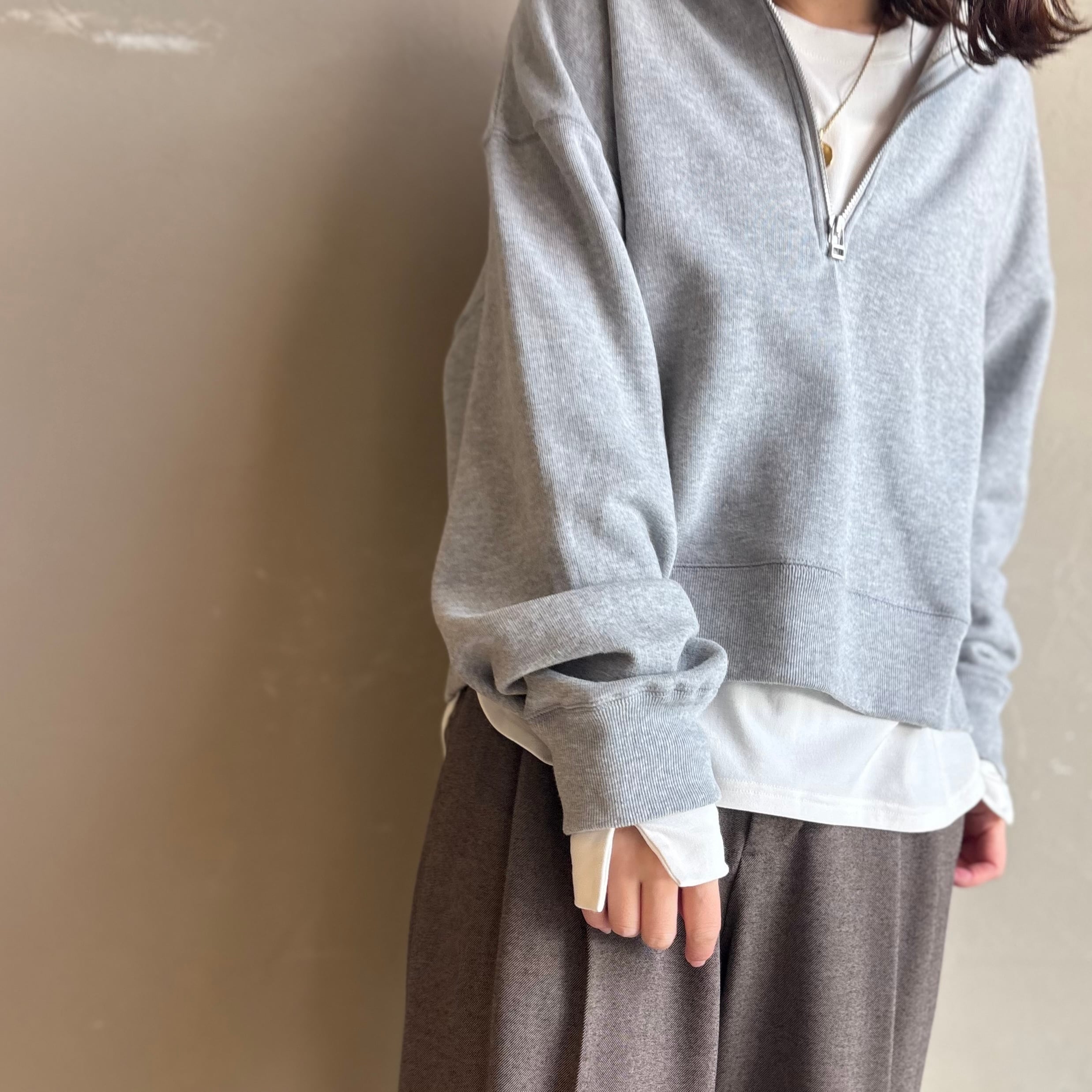 袖にはスリット、裾はラウンドヘムで、ニットやスウェットからちらっと見せたくなるデザイン。