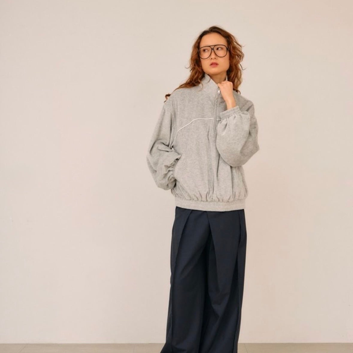 【 null. 】ベロアジップスウェットプルオーバー