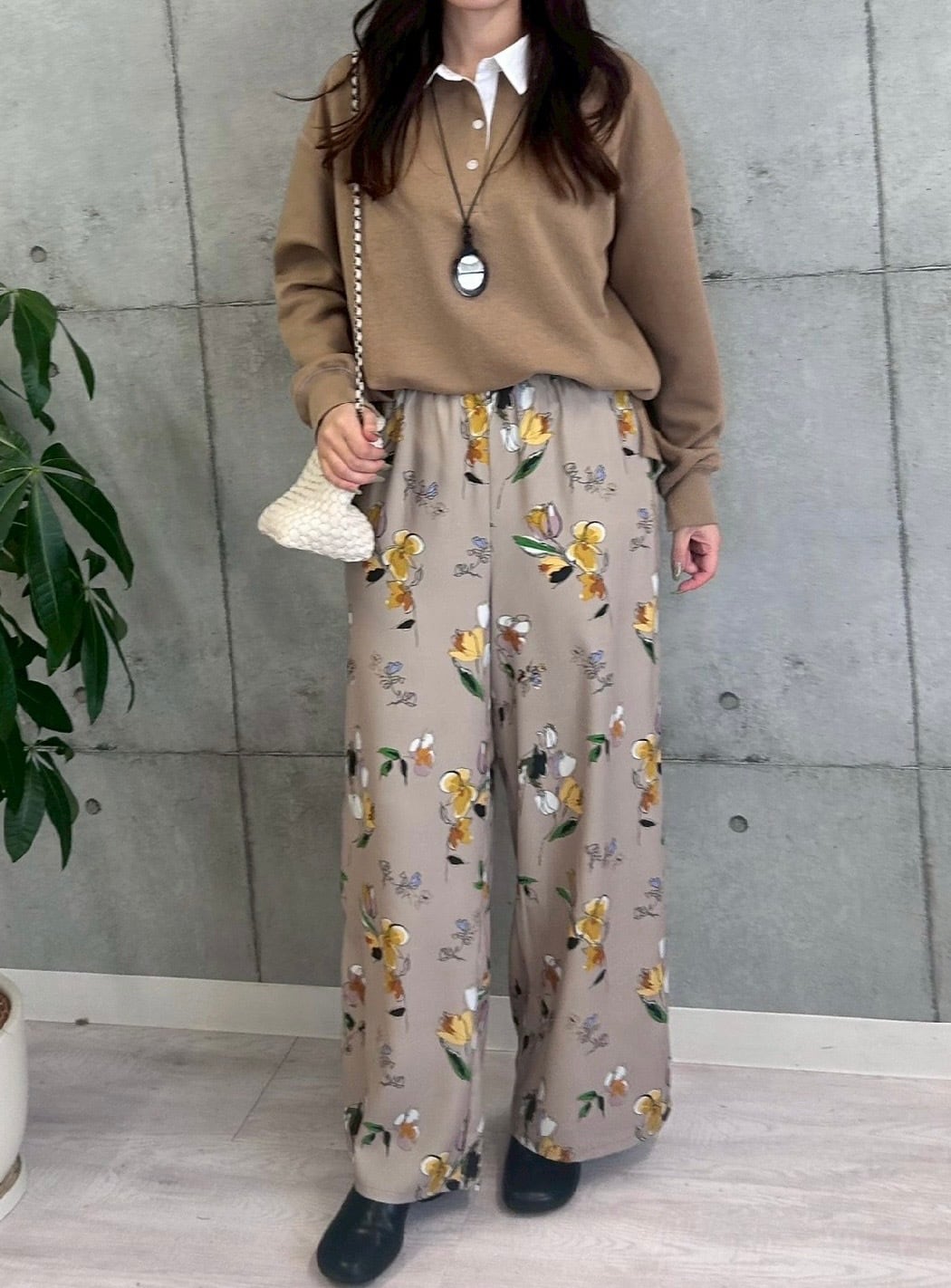 【 ROSIEE 】ニュアンス花柄イージーパンツ
