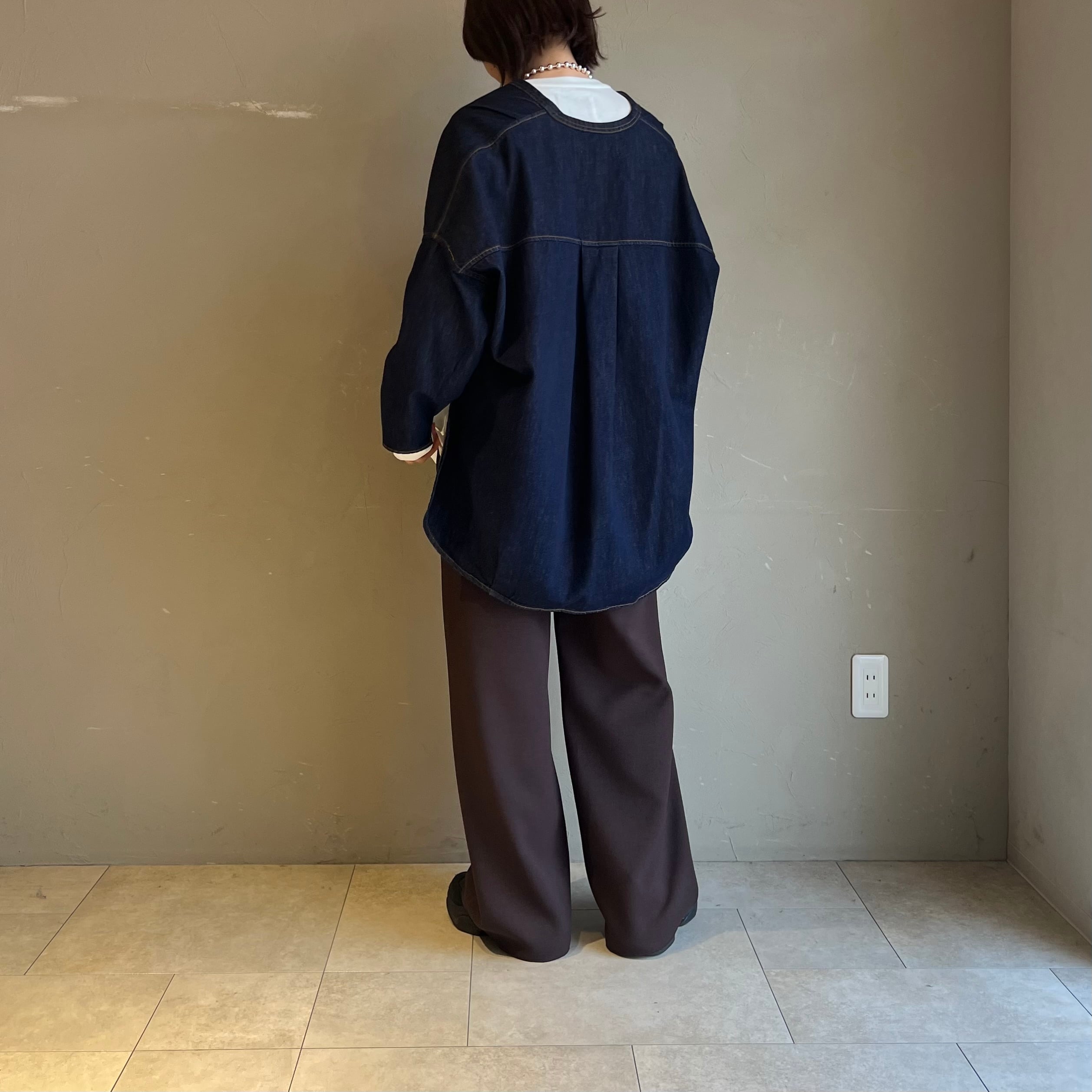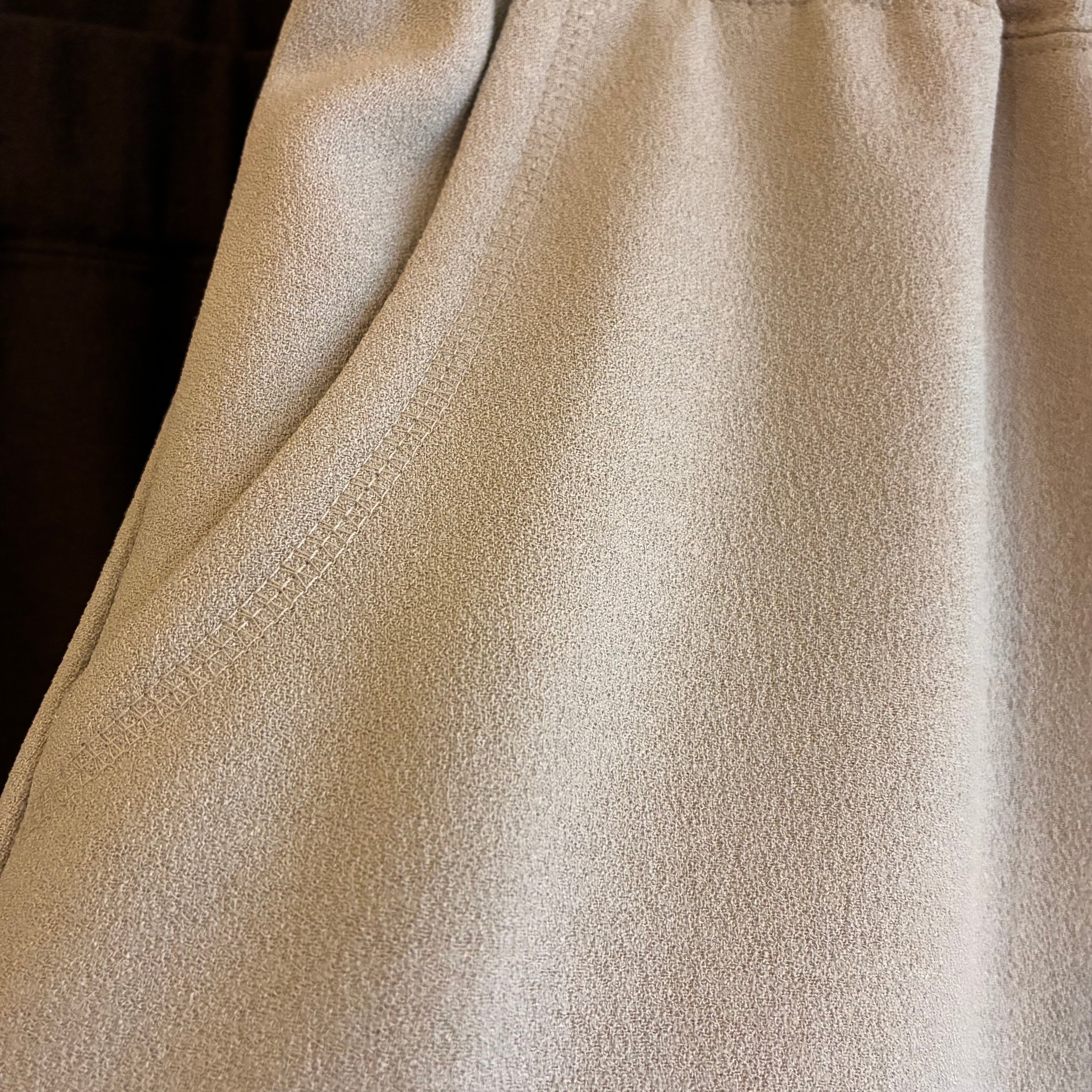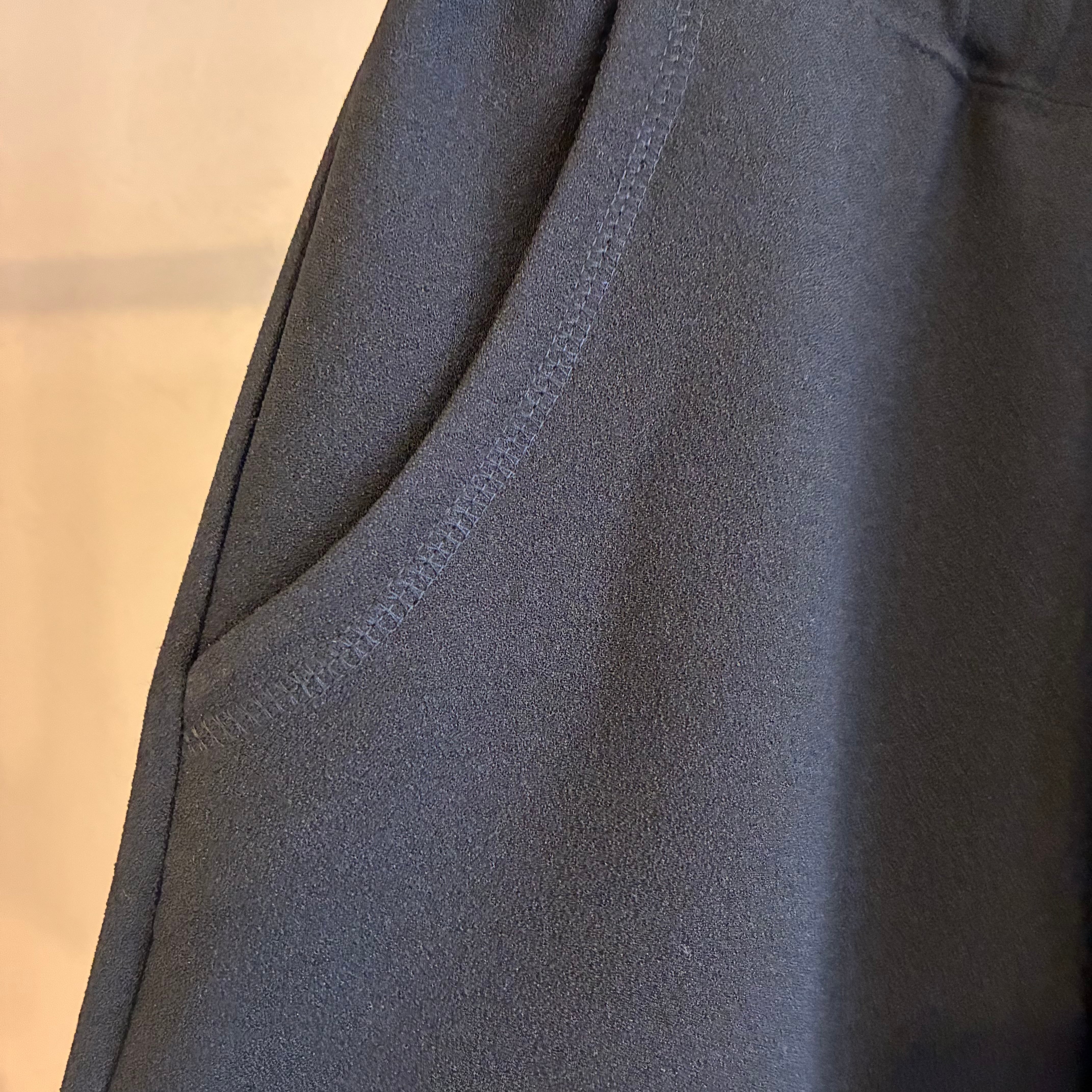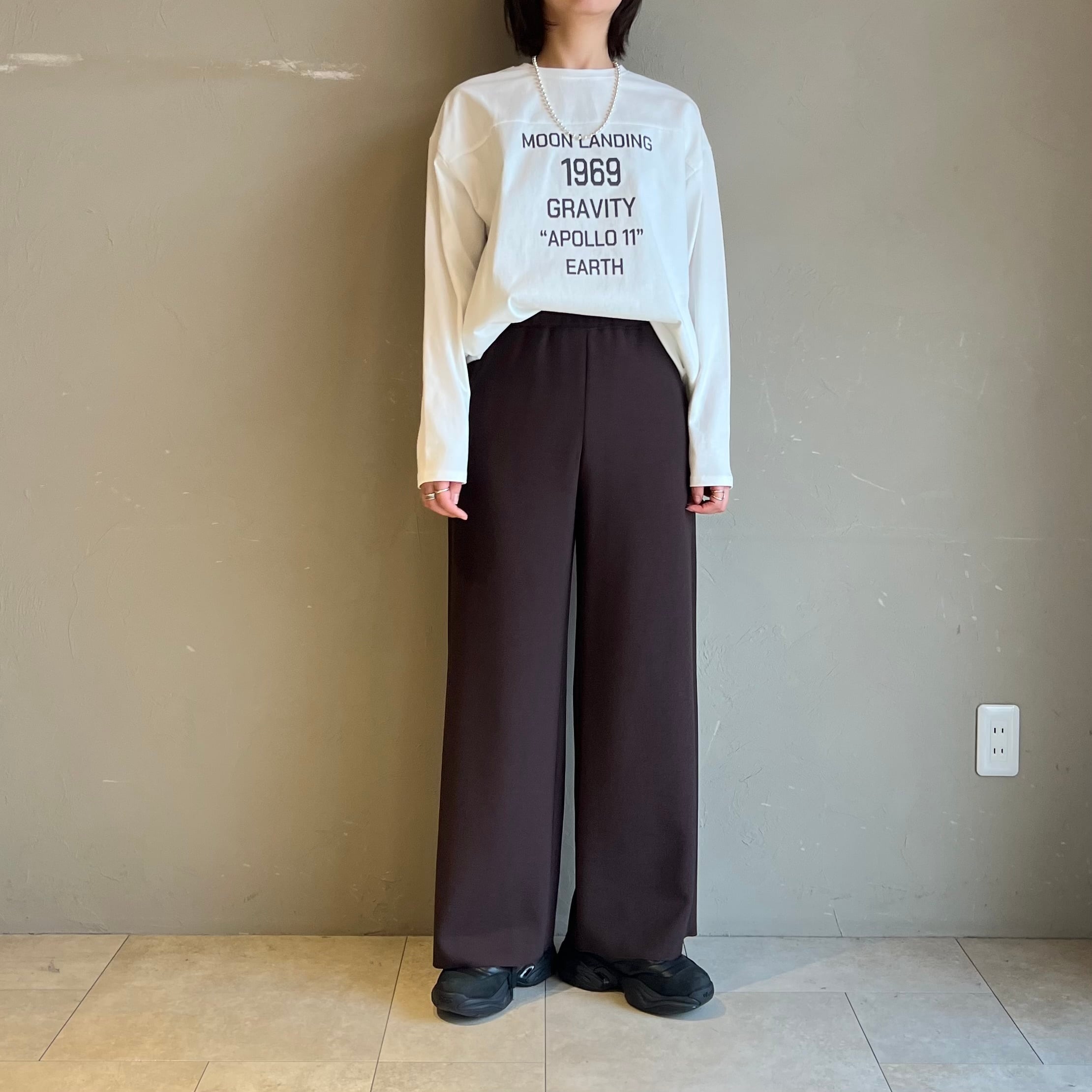 滑らかな素材感が特徴で、程よいドレープ感が楽しめます。程よい張り感もあることでシルエットはすっきりとしており、スタイルアップ効果も期待できます◎