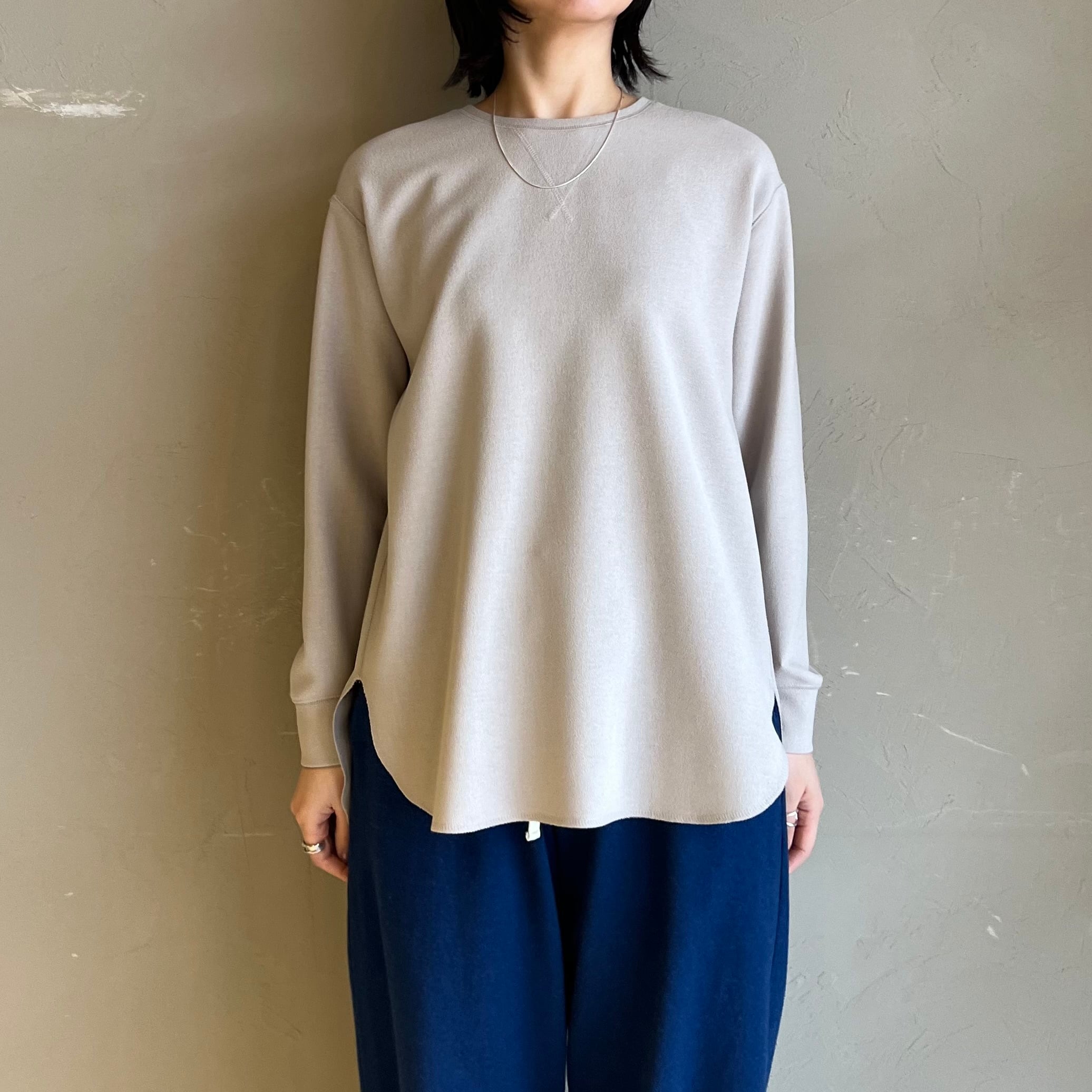 程よい厚みのストレッチのきいたジョーゼット生地のカットソー。