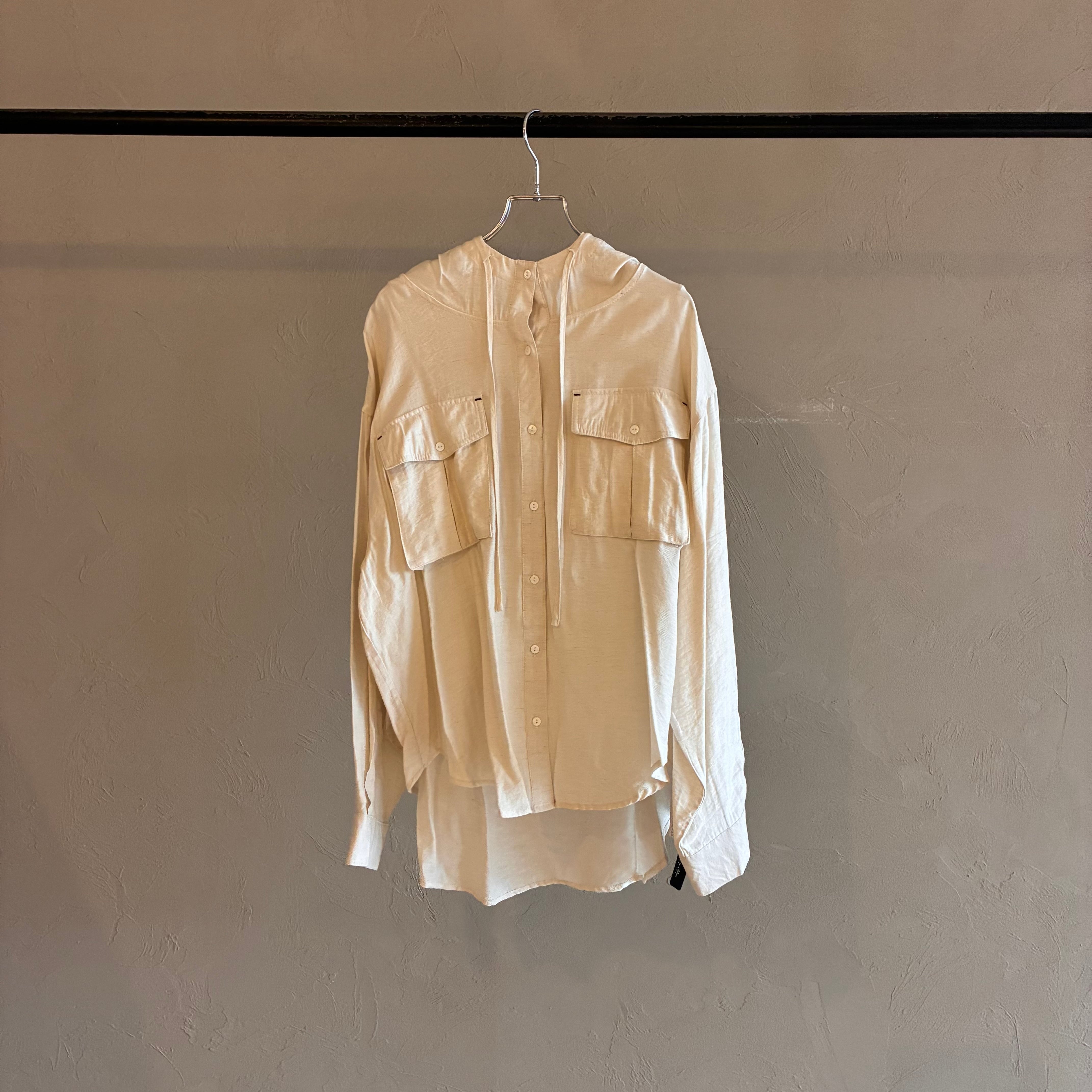 【 Pauline Bleu 】フードリネンシャツ