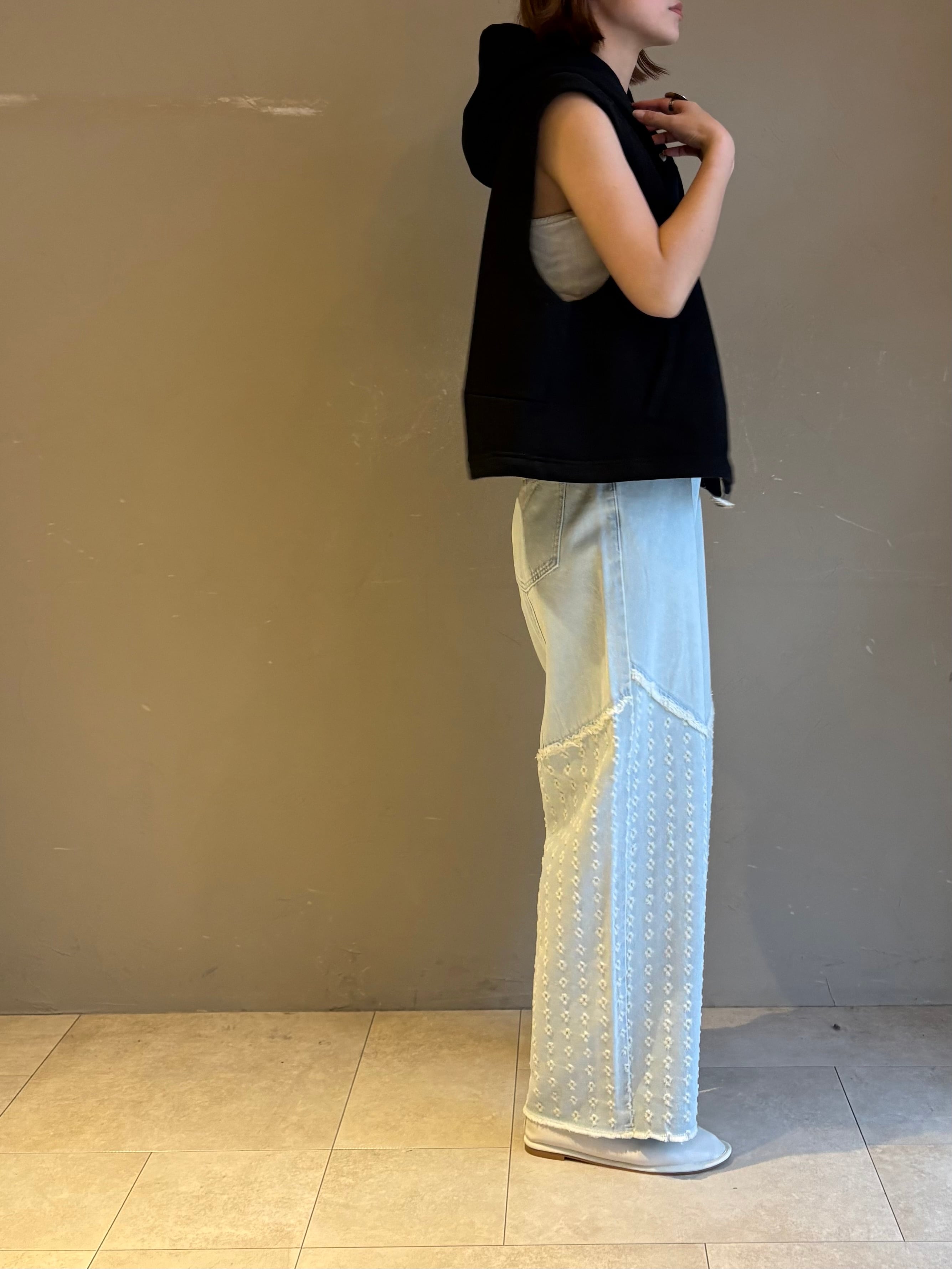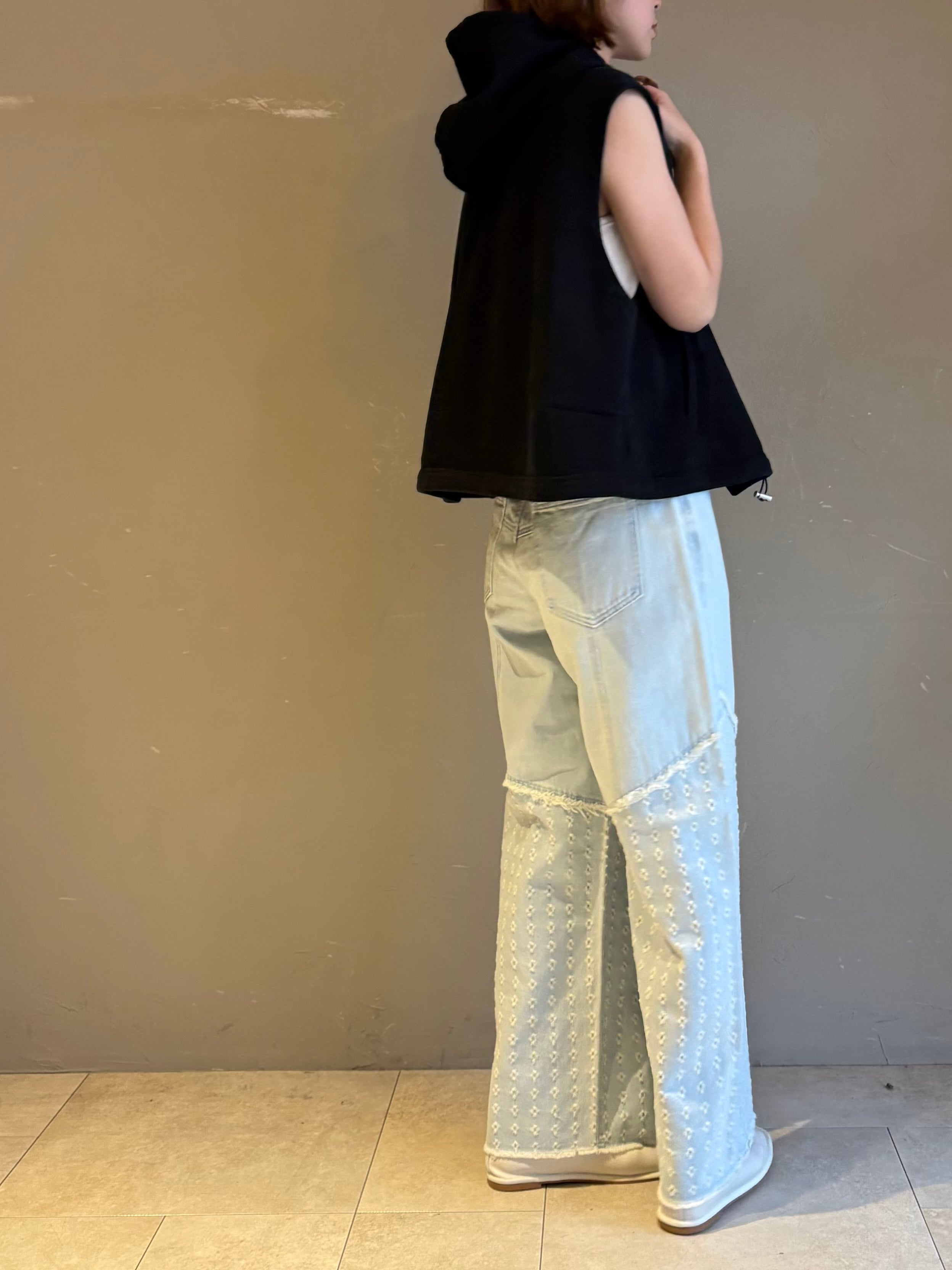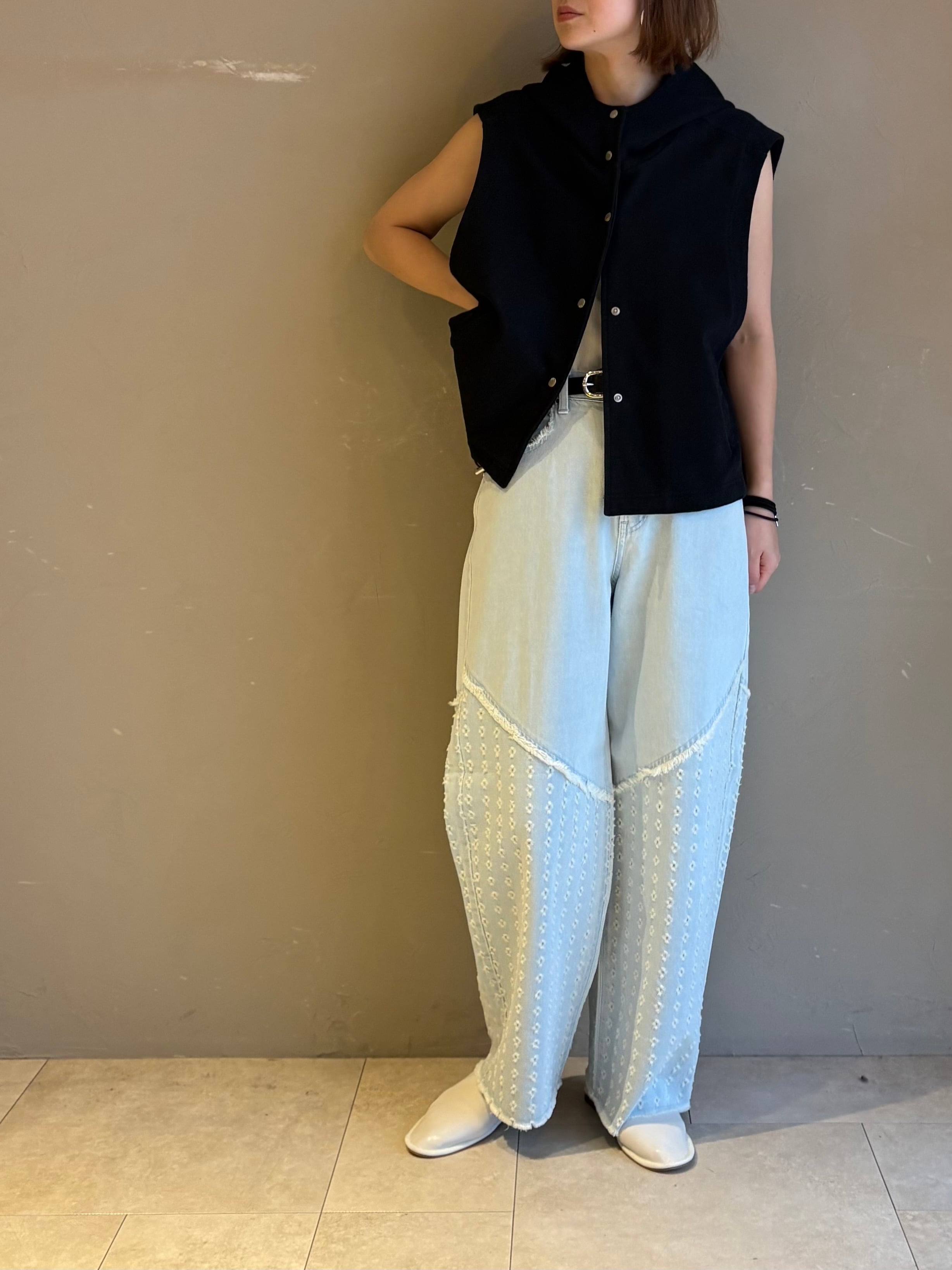 クリーンな印象でありながら、ポケットのダメージ加工など、さりげない抜け感をお楽しみいただけます。