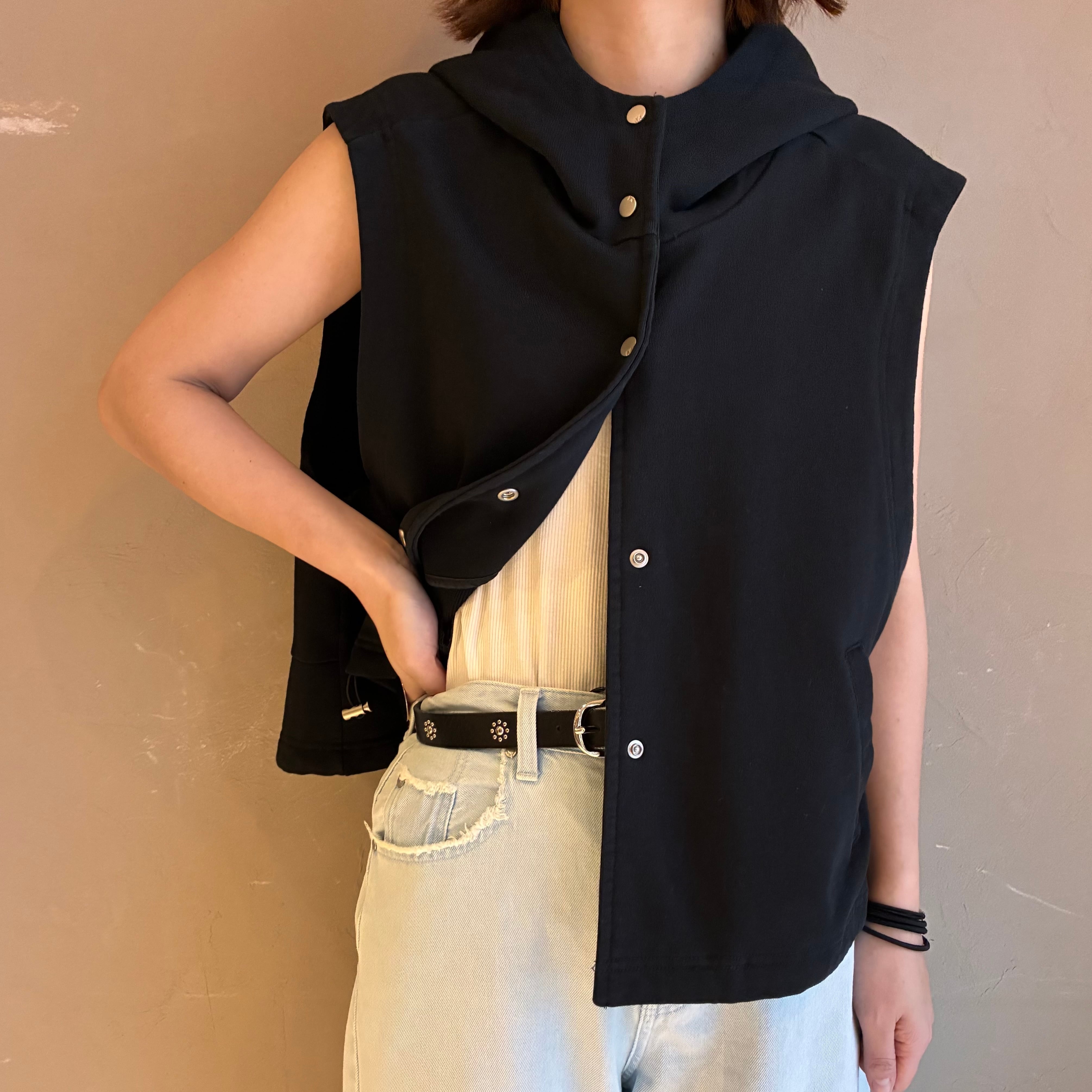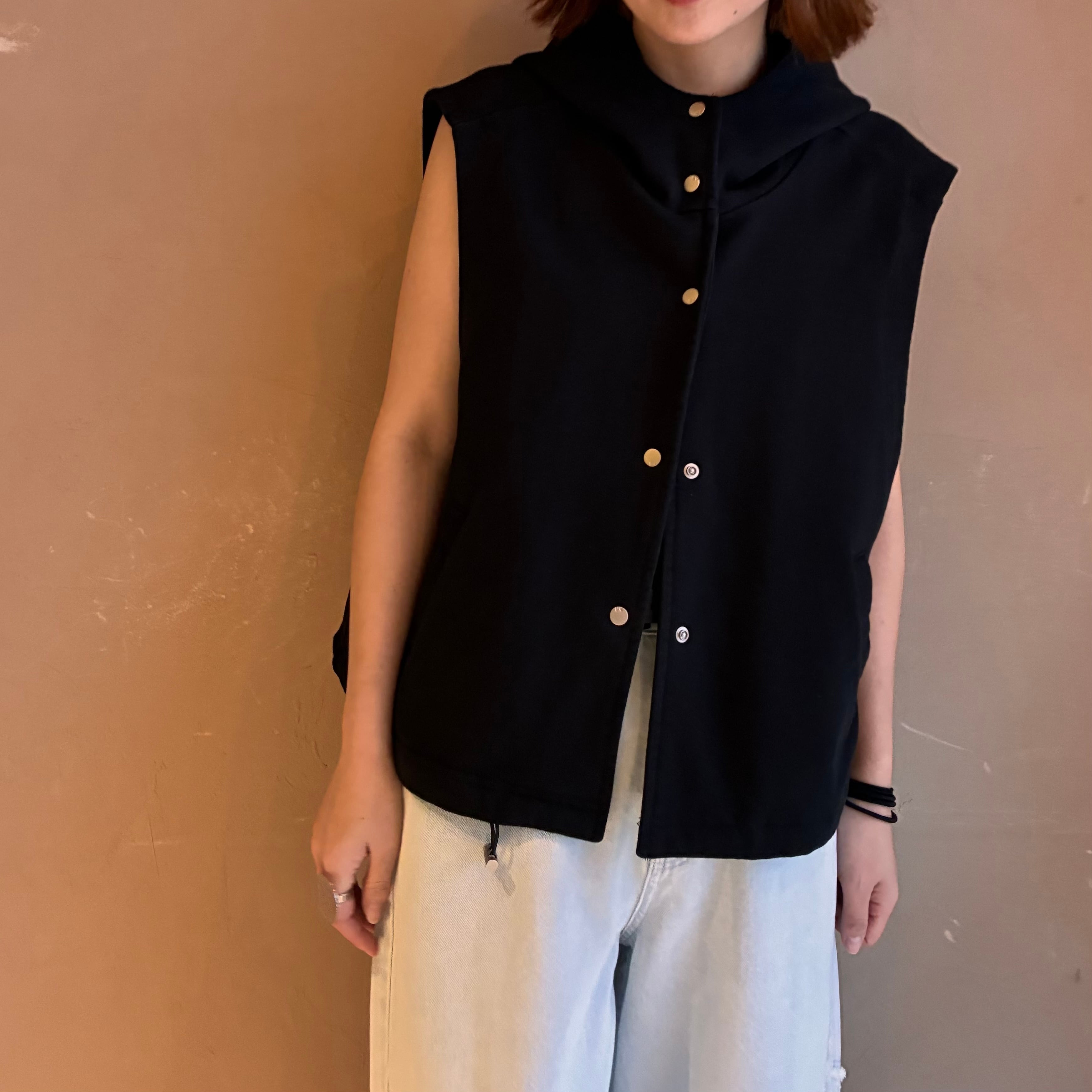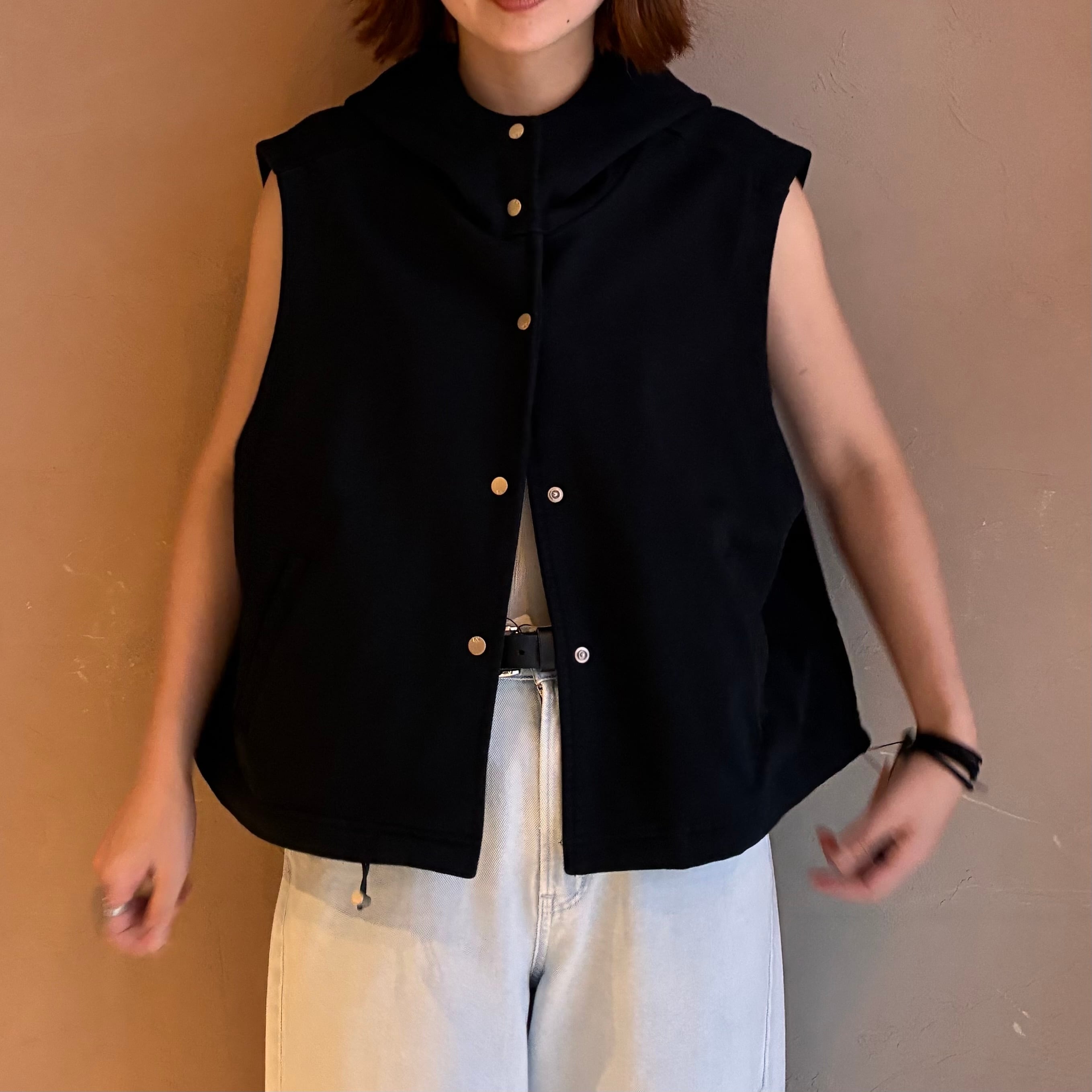 【 Pauline Bleu 】クリーン裏毛フーディベスト