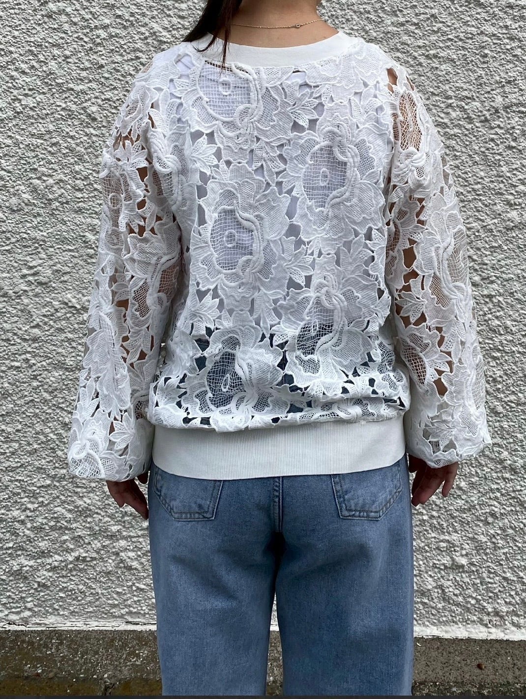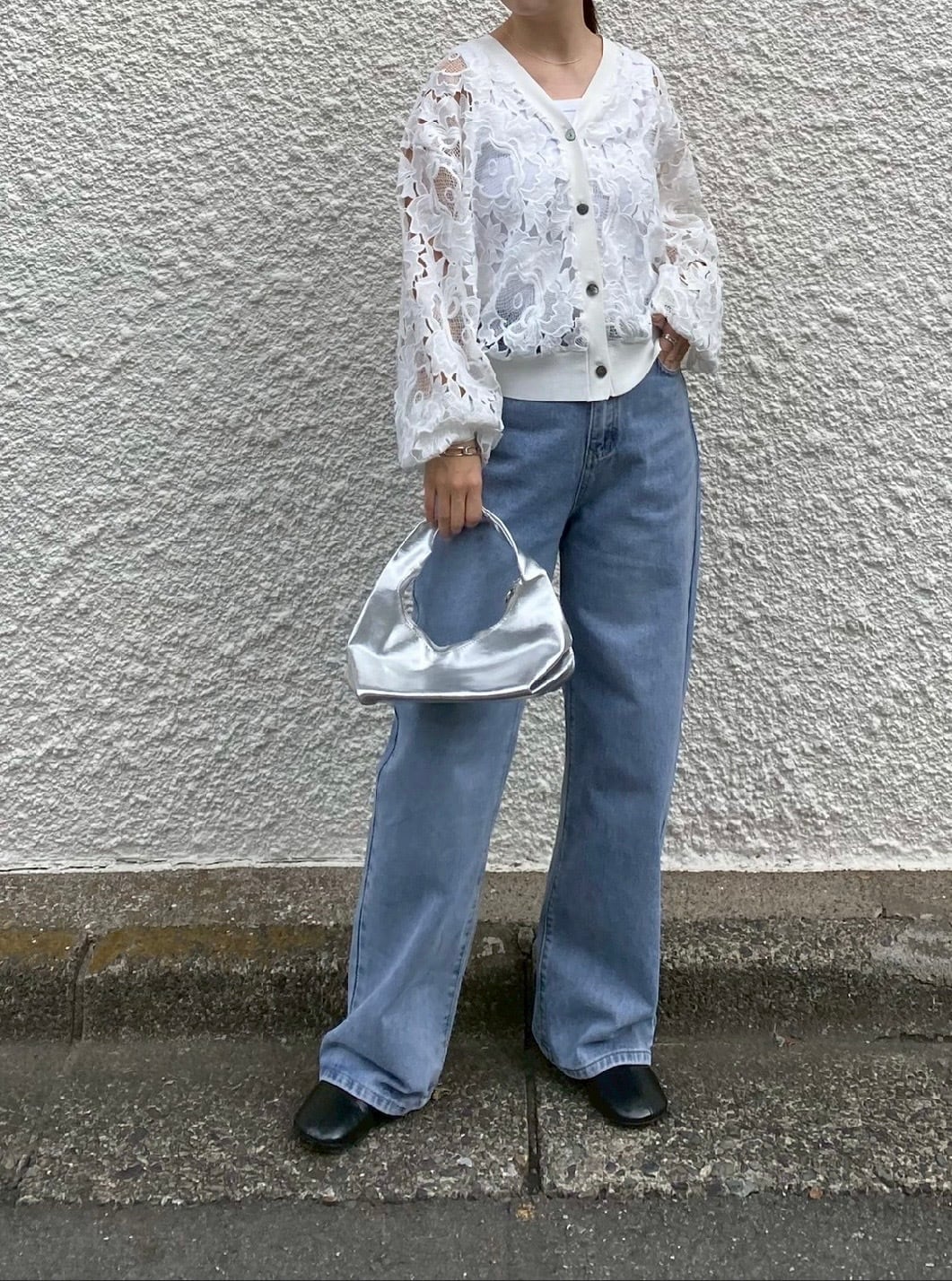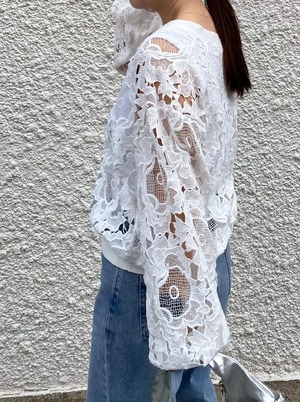 大きめの花柄レースを使用しており、1枚でぐっと華やかな印象に。