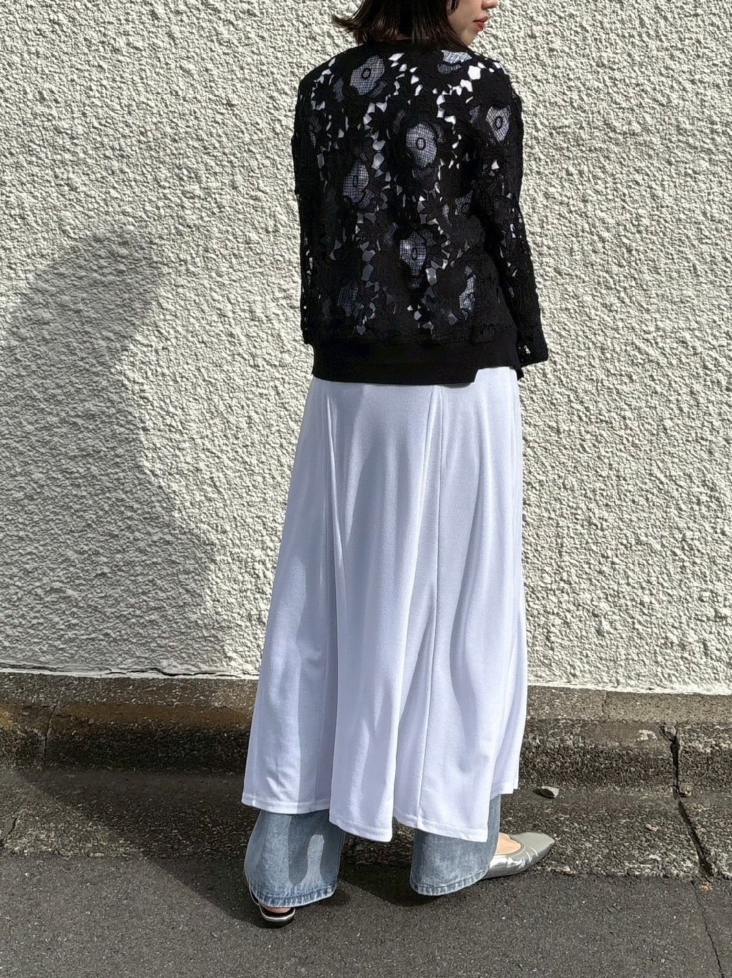 レースの下に、チュールを重ねているので、透け感も控えめになり着用しやすいデザインに仕上げています。