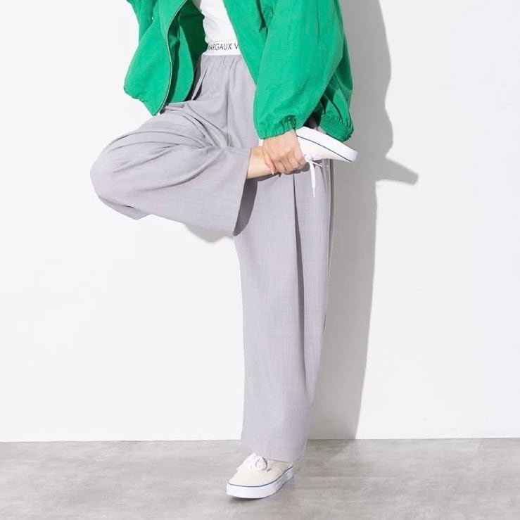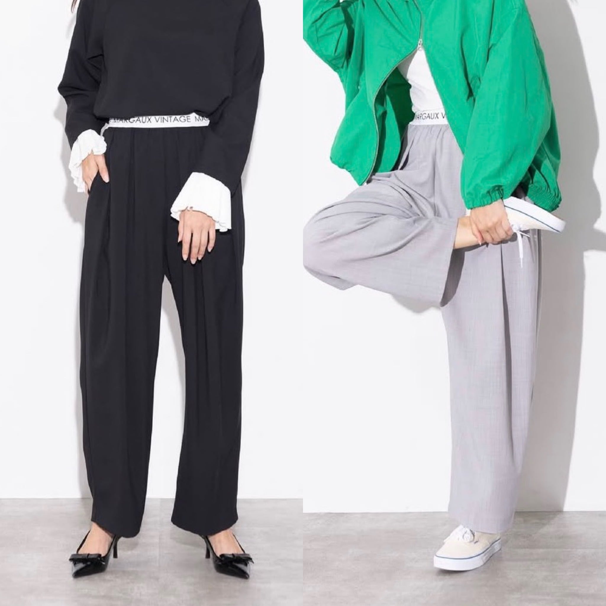 【MARGAUX VINTAGE】のロゴウエストゴムタックパンツは抜群のリラックス感と今っぽさを兼ね備えた一本。