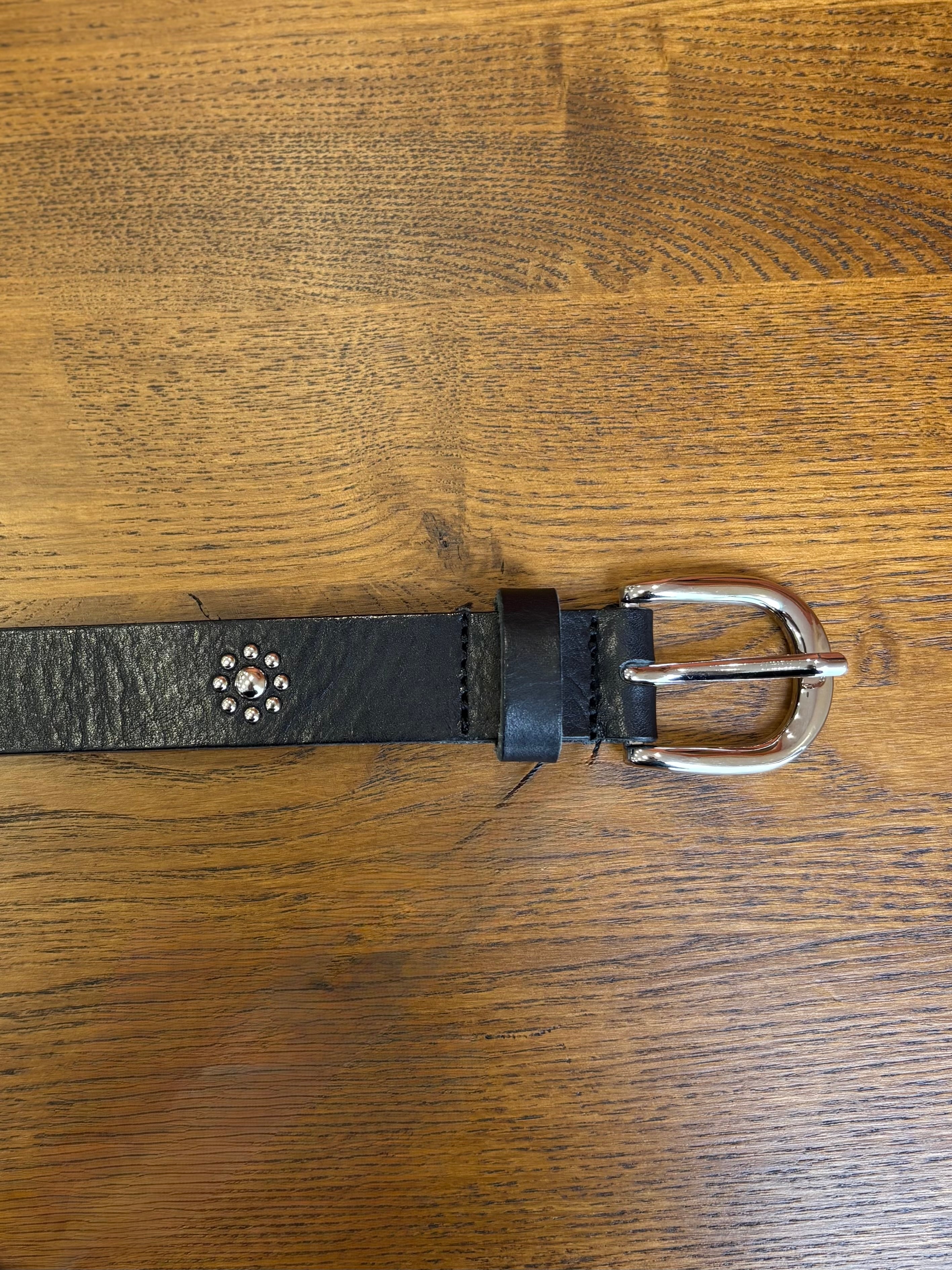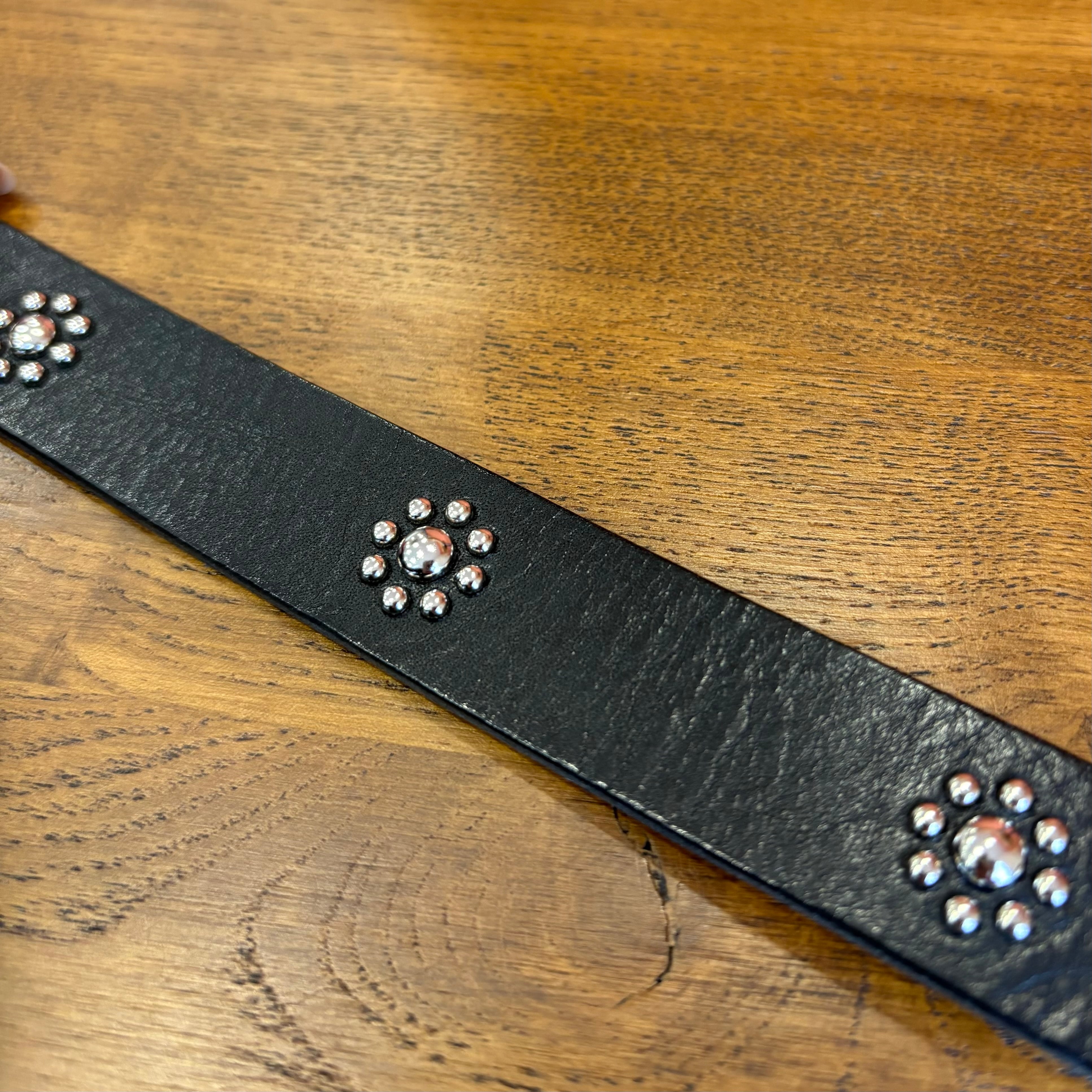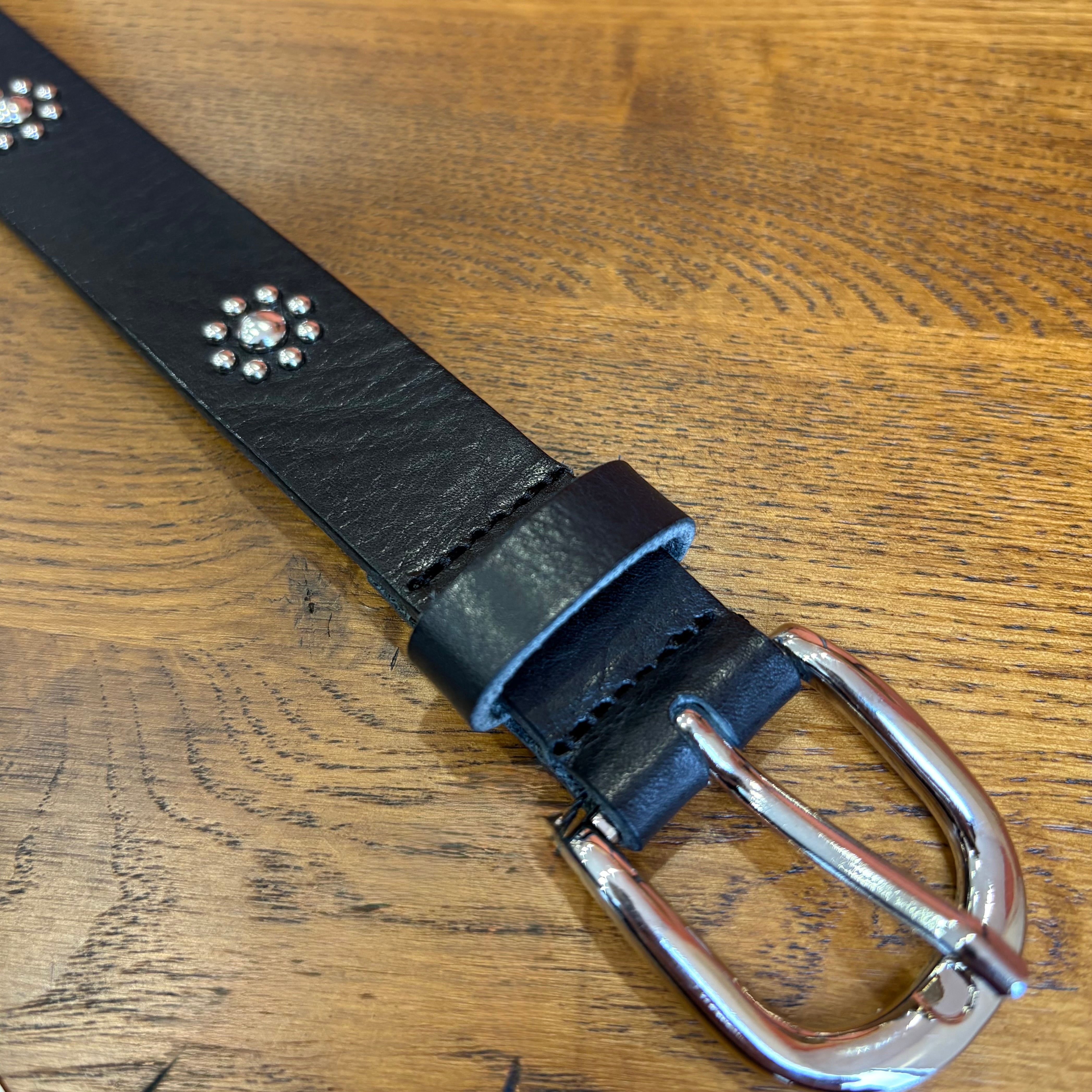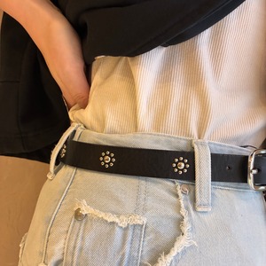 PAKU スタッズレザーベルトはシルバーバックルと繊細スタッズが大人のアクセント。