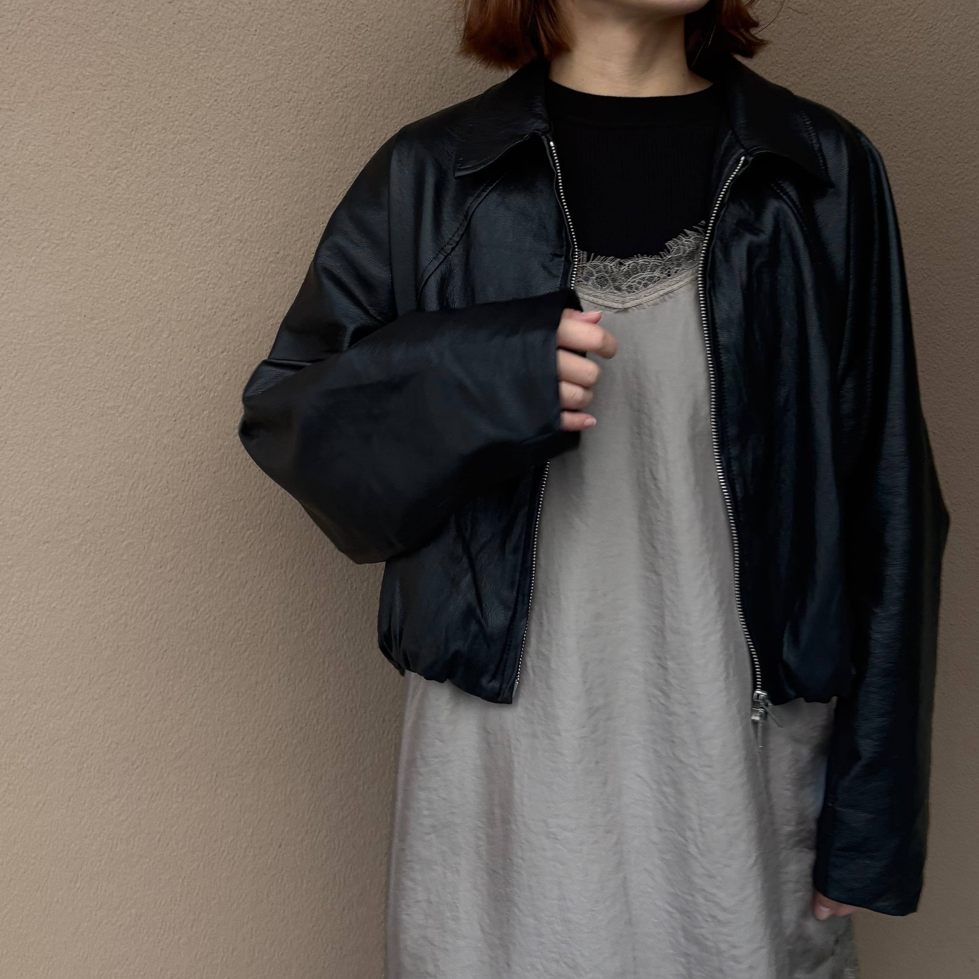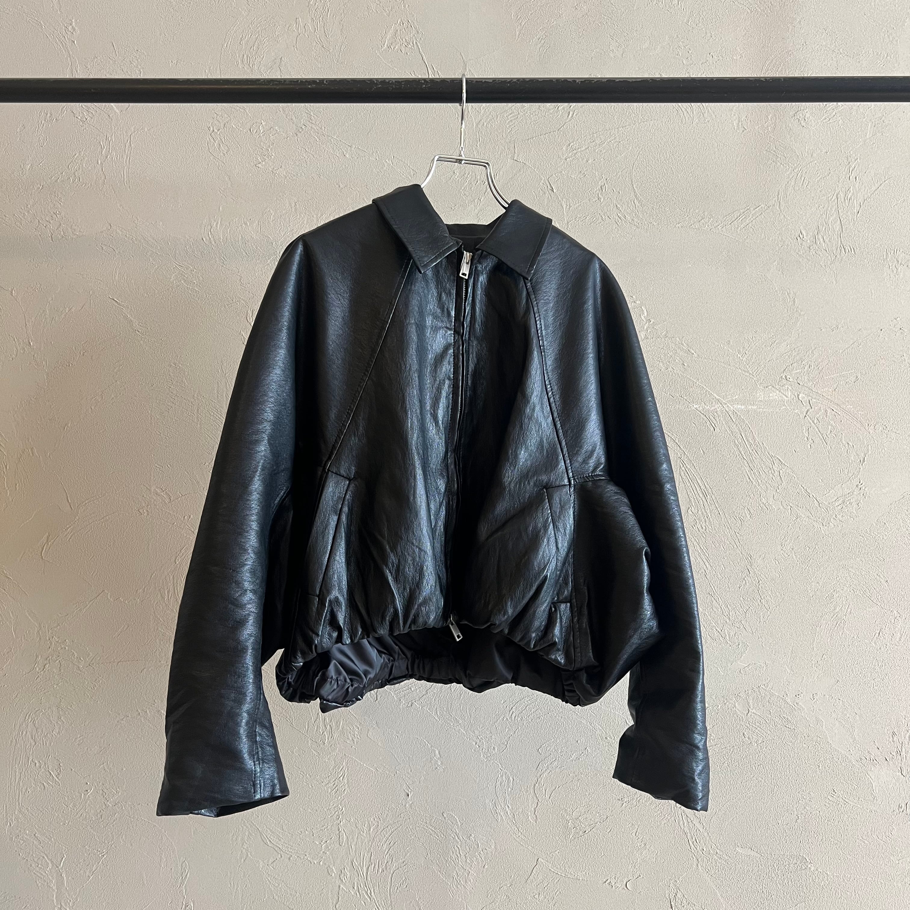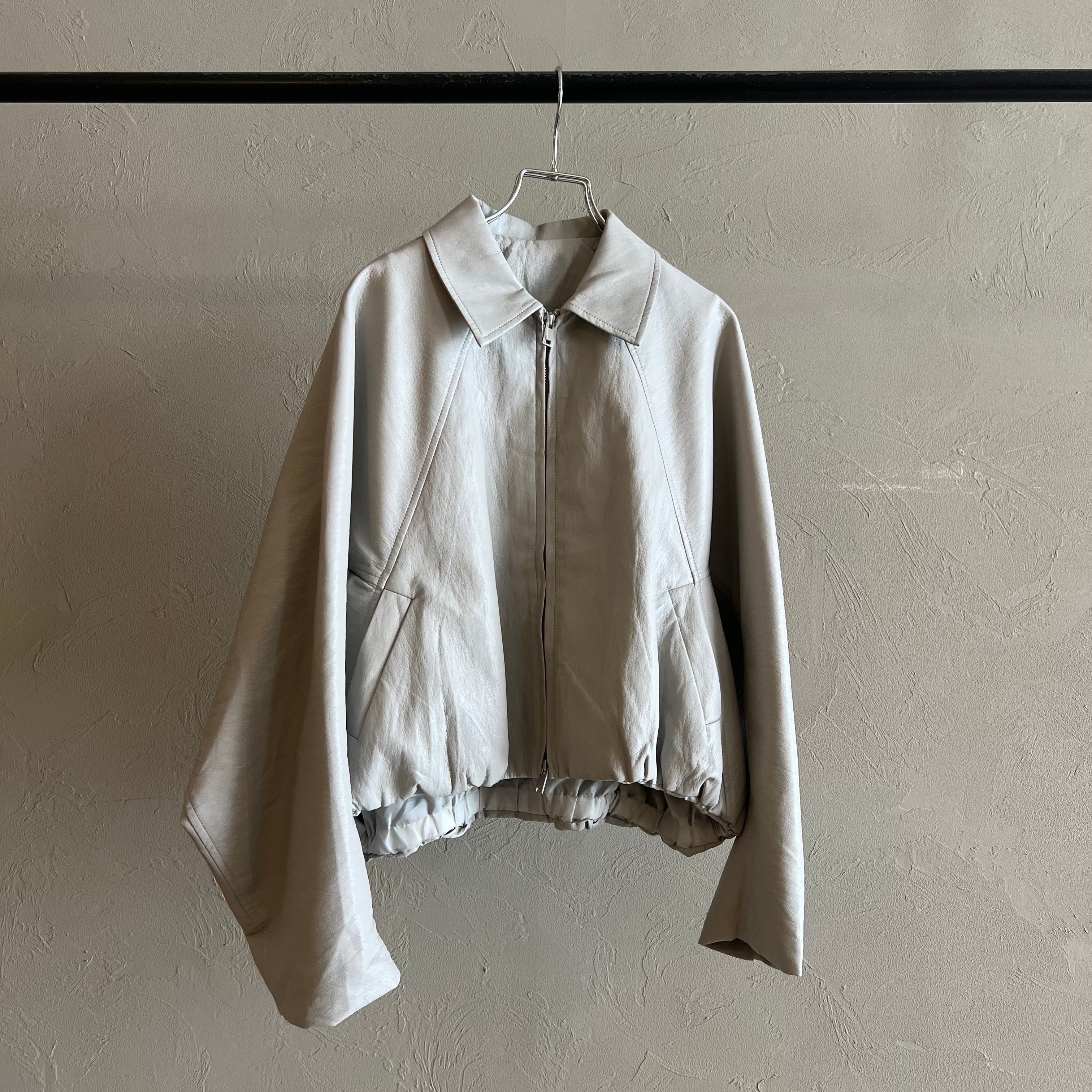 裾ギャザーレザージャケット