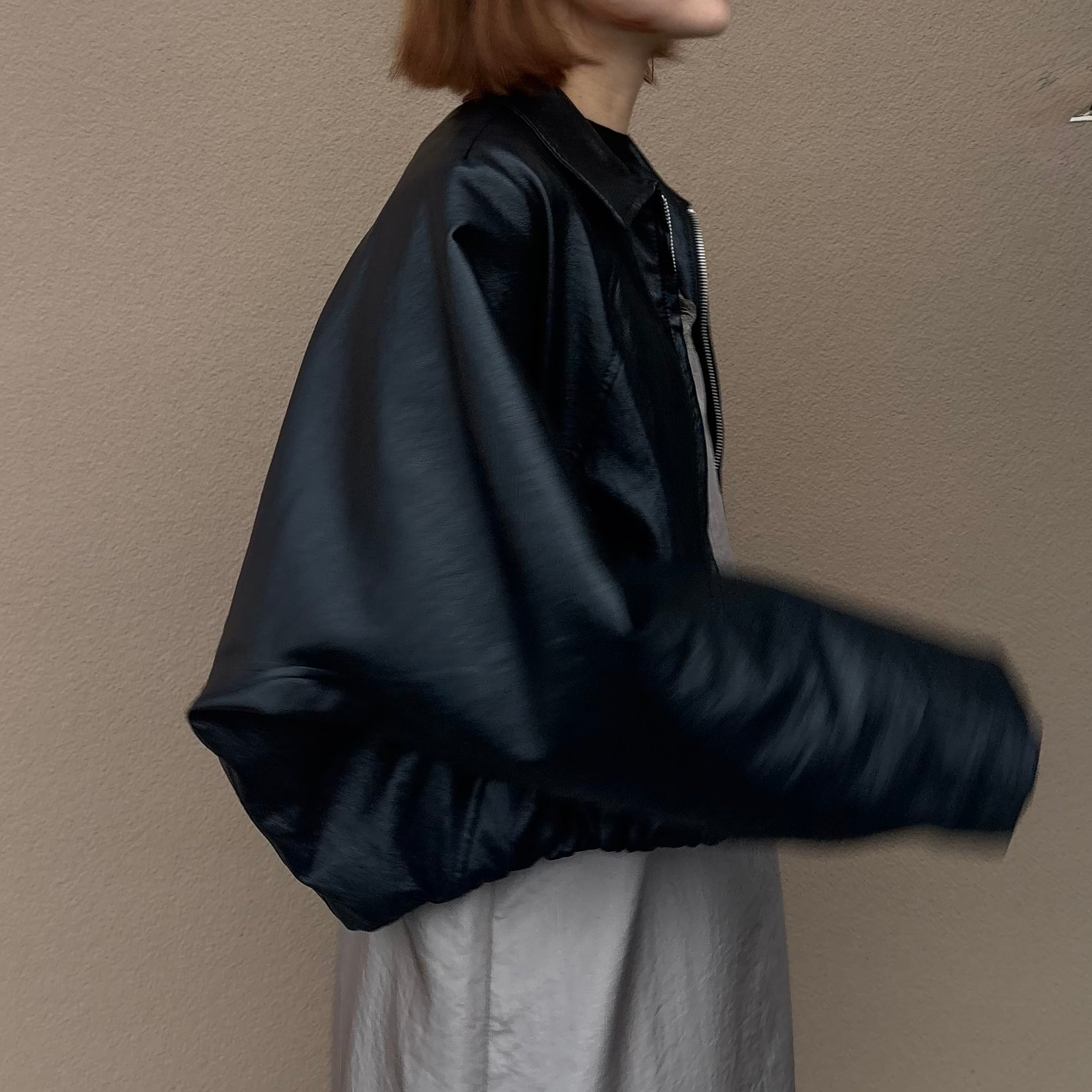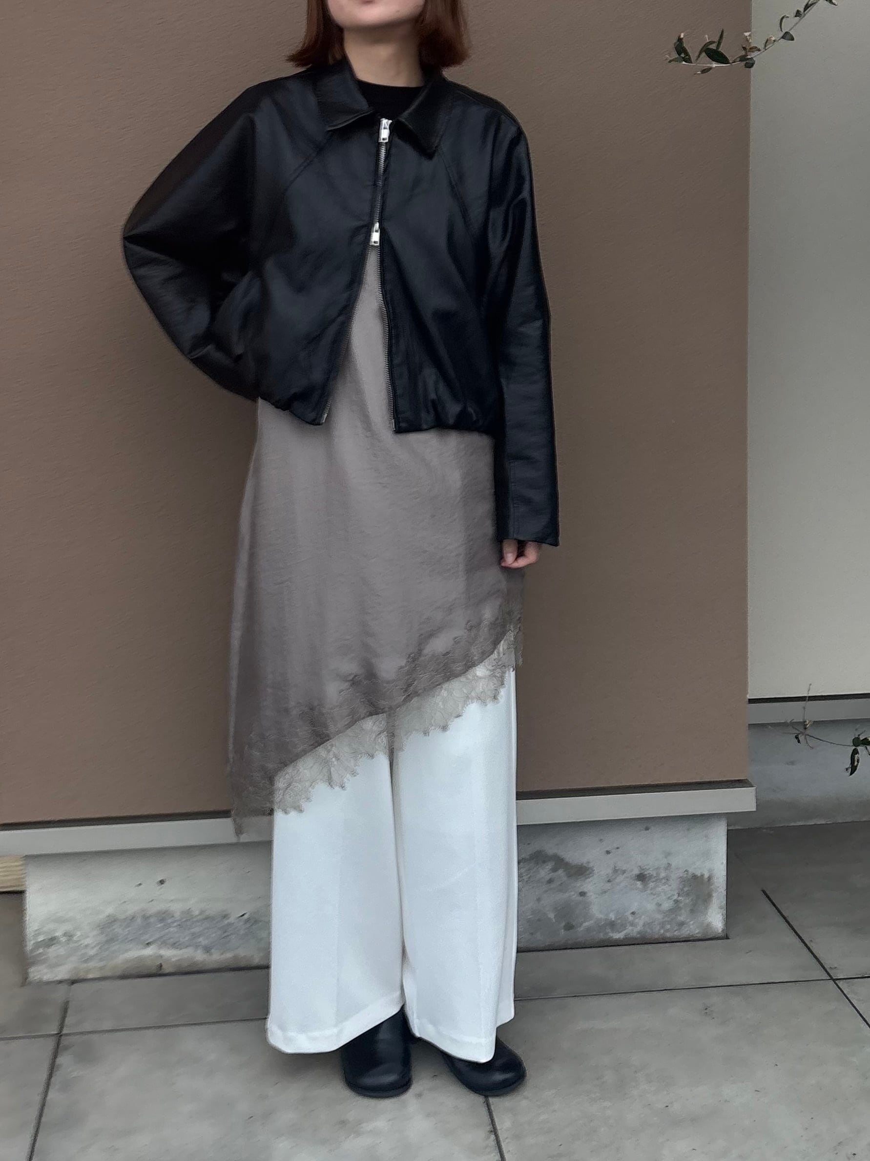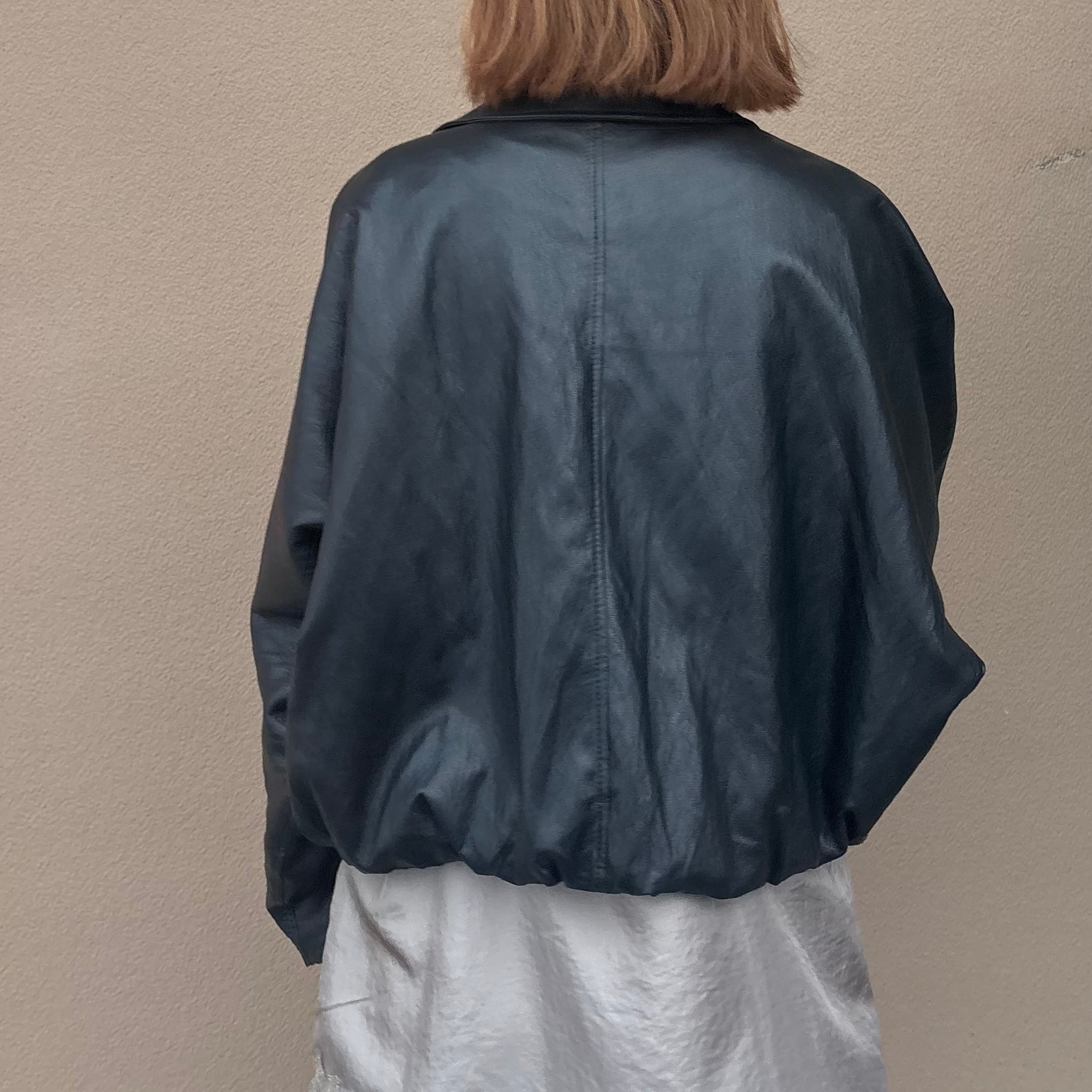裾ギャザーレザージャケット