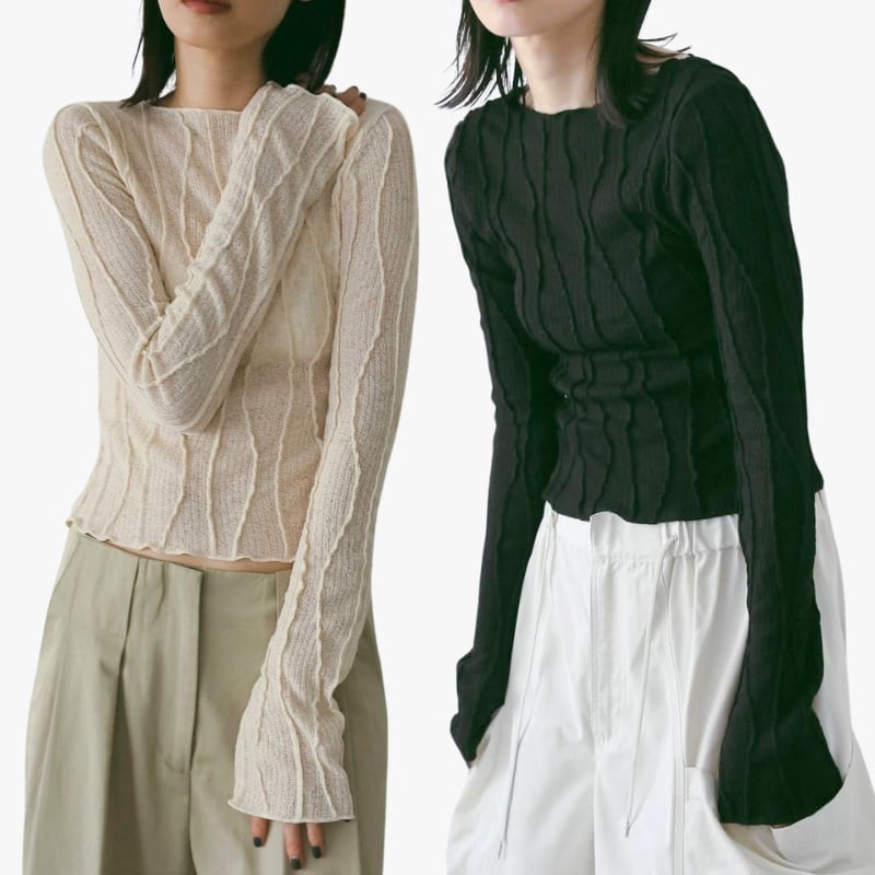 ランダムに施したピンタックが表情を生む、ニットライクな素材のコンパクトトップス。