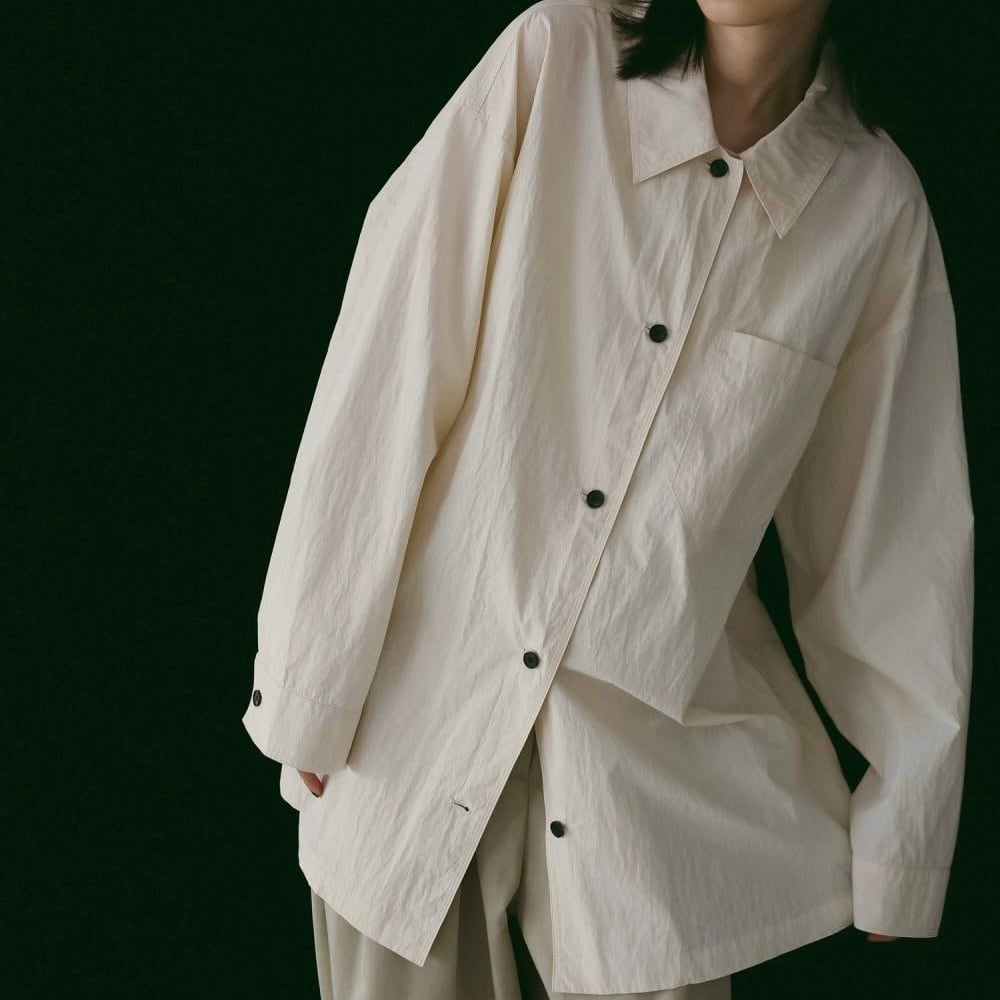 ステンカラーデザインで仕上げたオーバーシャツ。