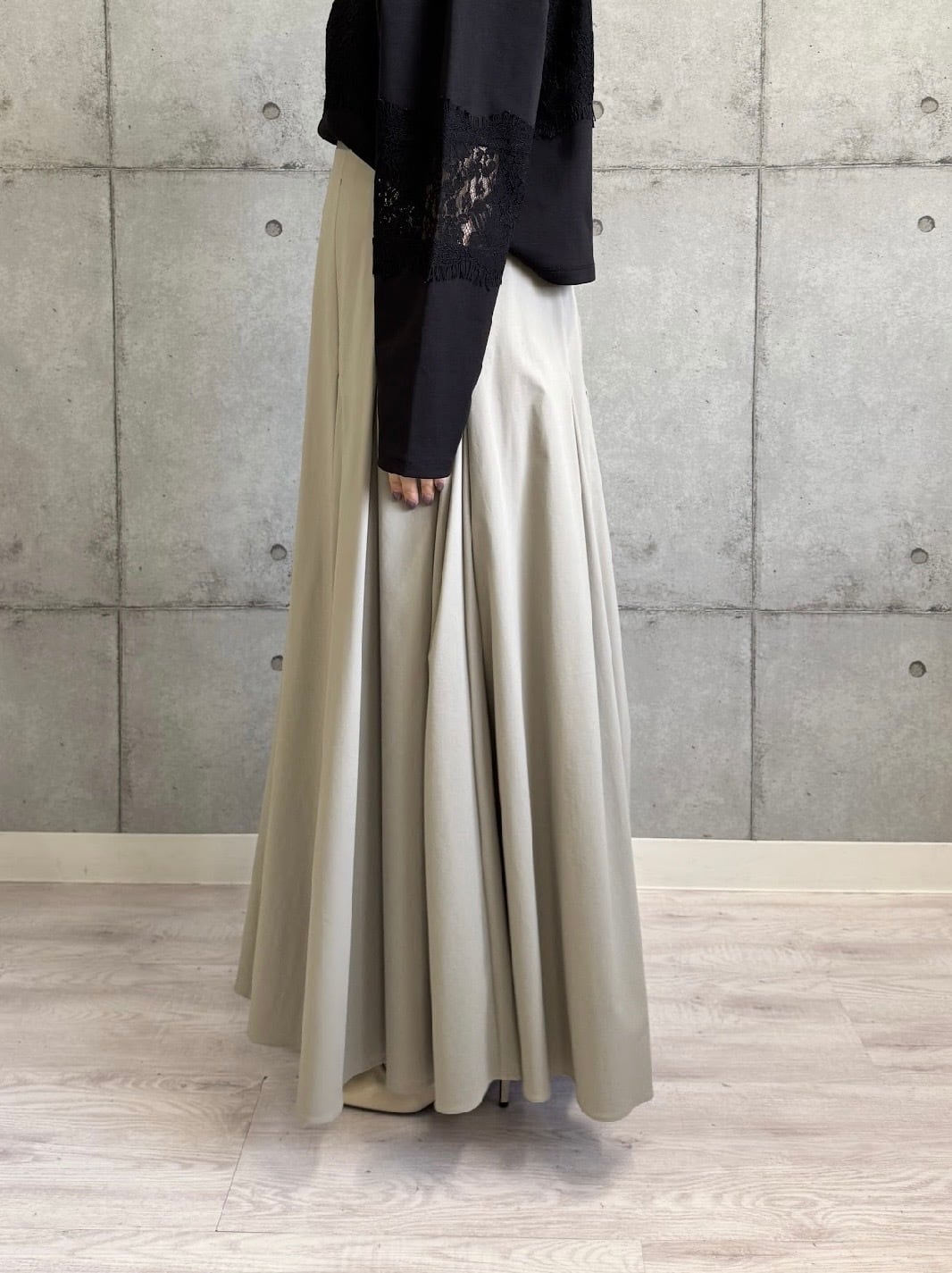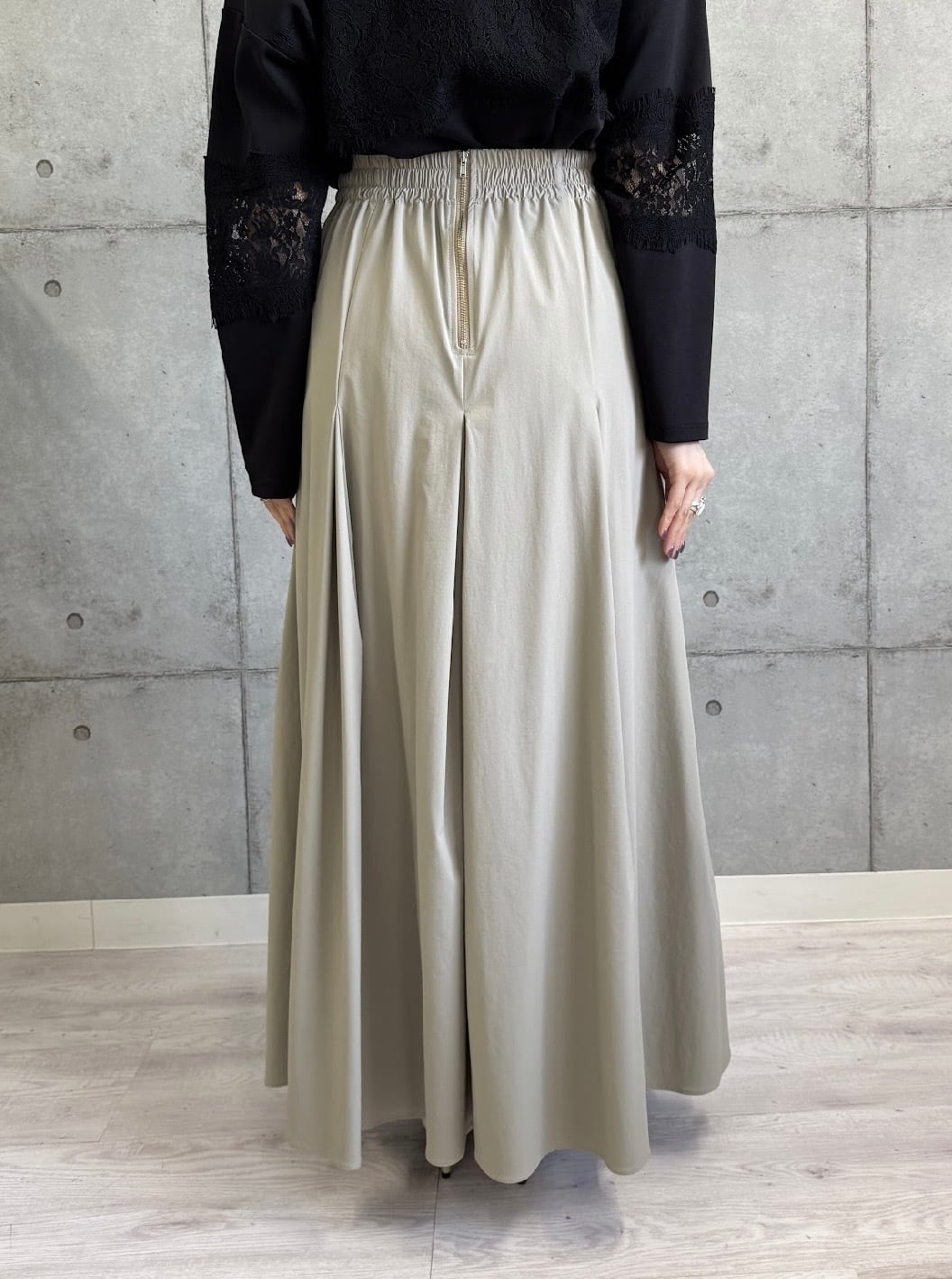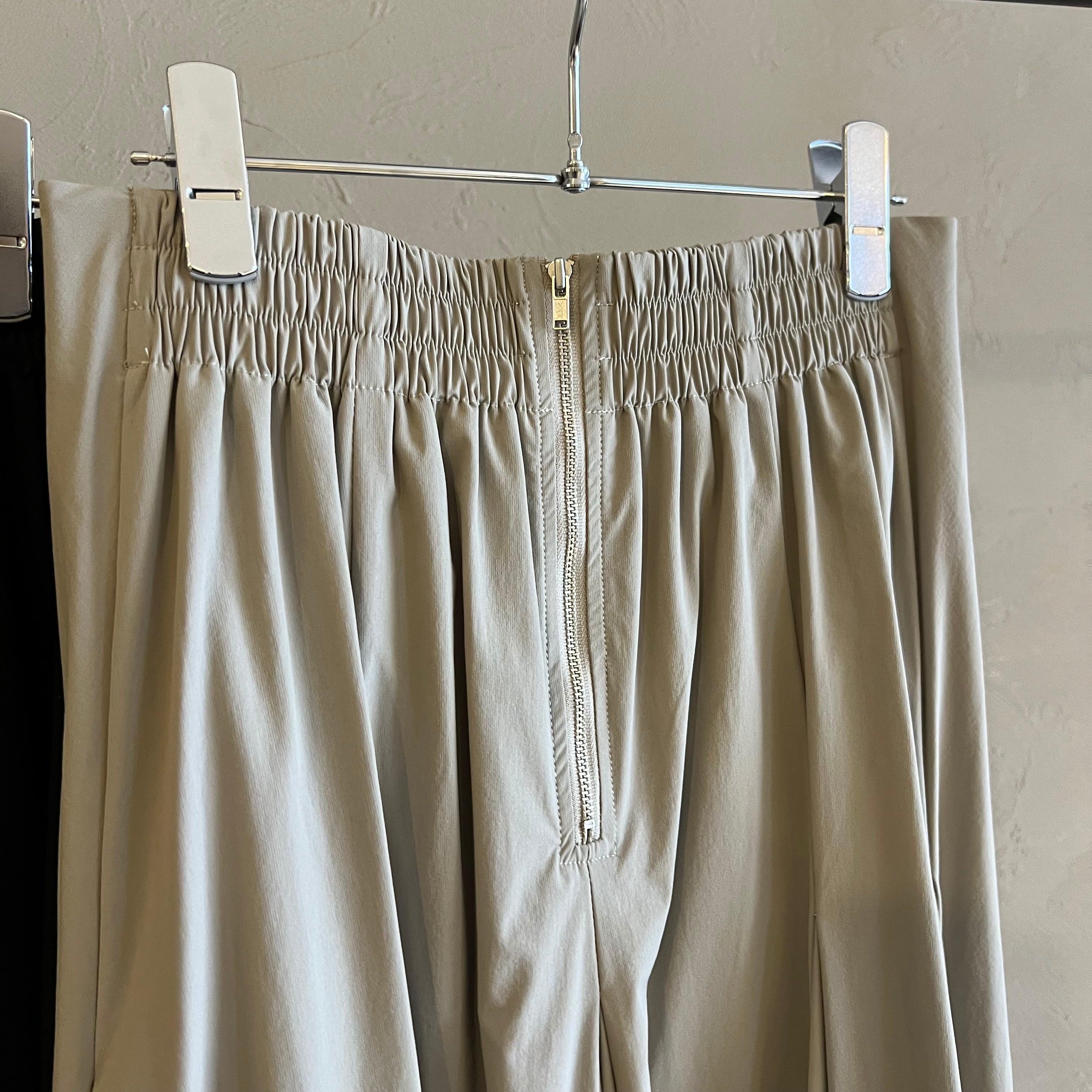 今シーズンらしい軽やかなナイロン素材で、風をはらむふんわりとしたフレアシルエットが魅力です。