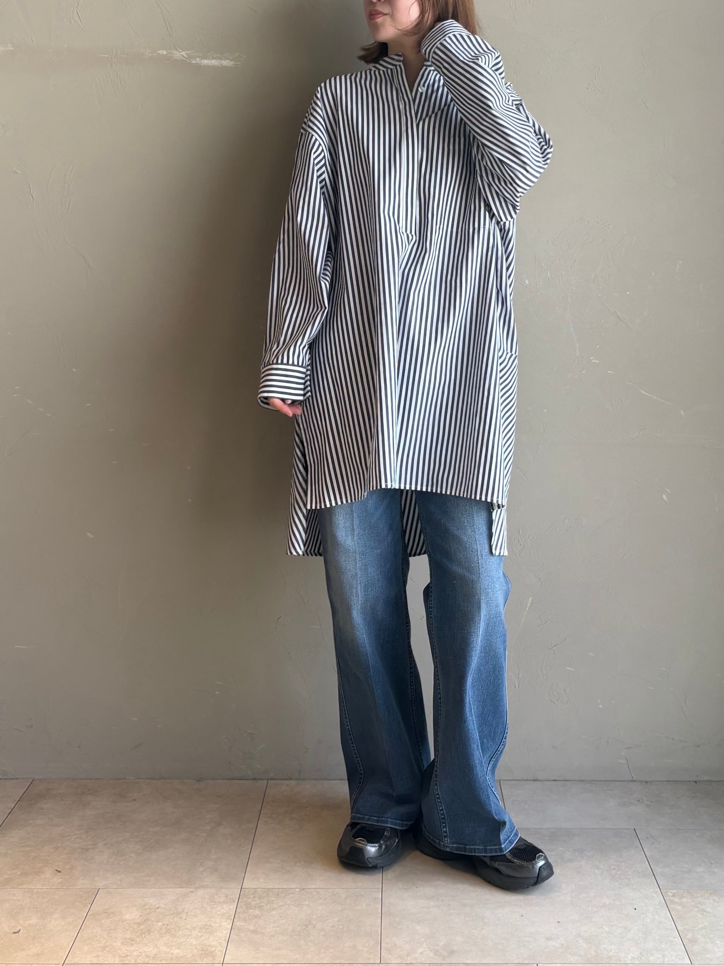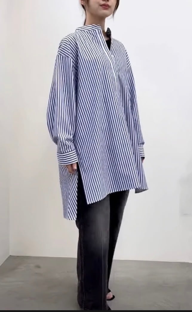 チュニック丈のスキッパーシャツです。