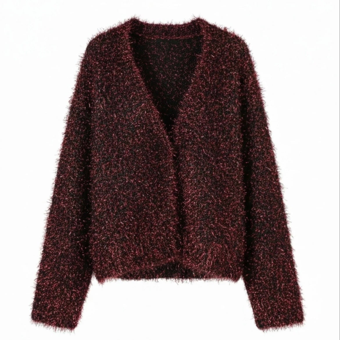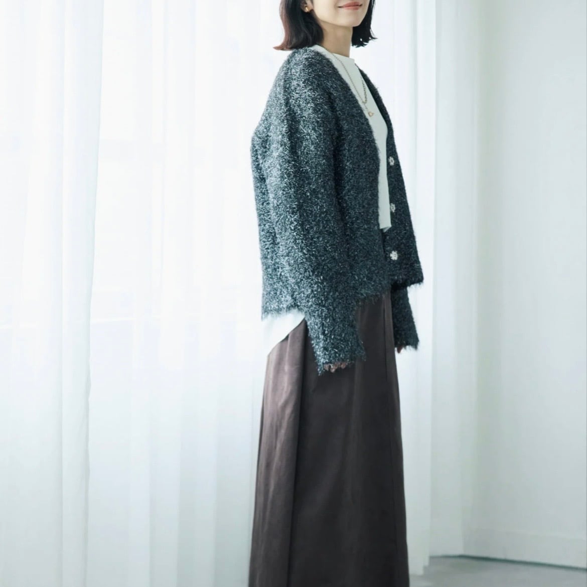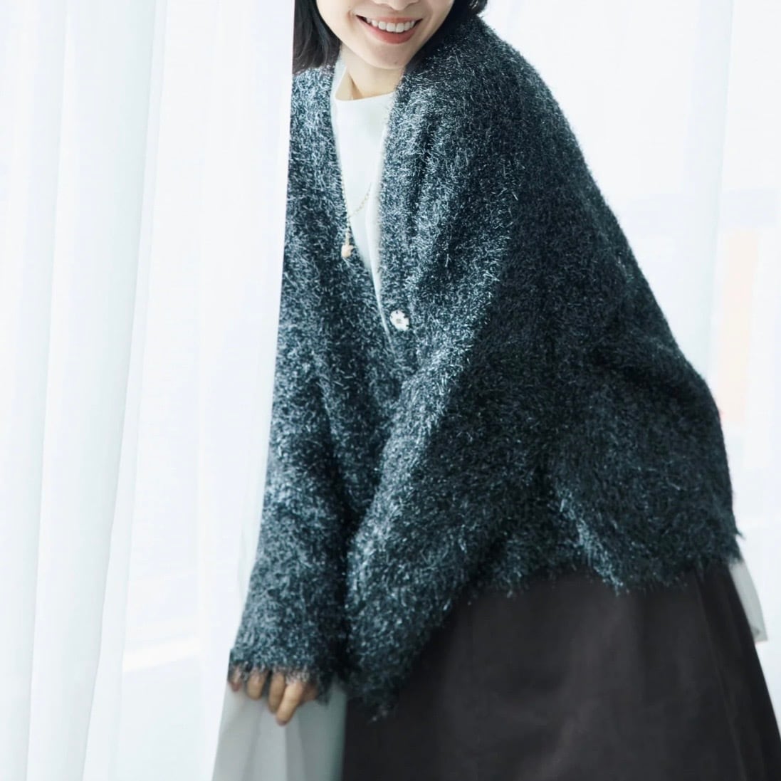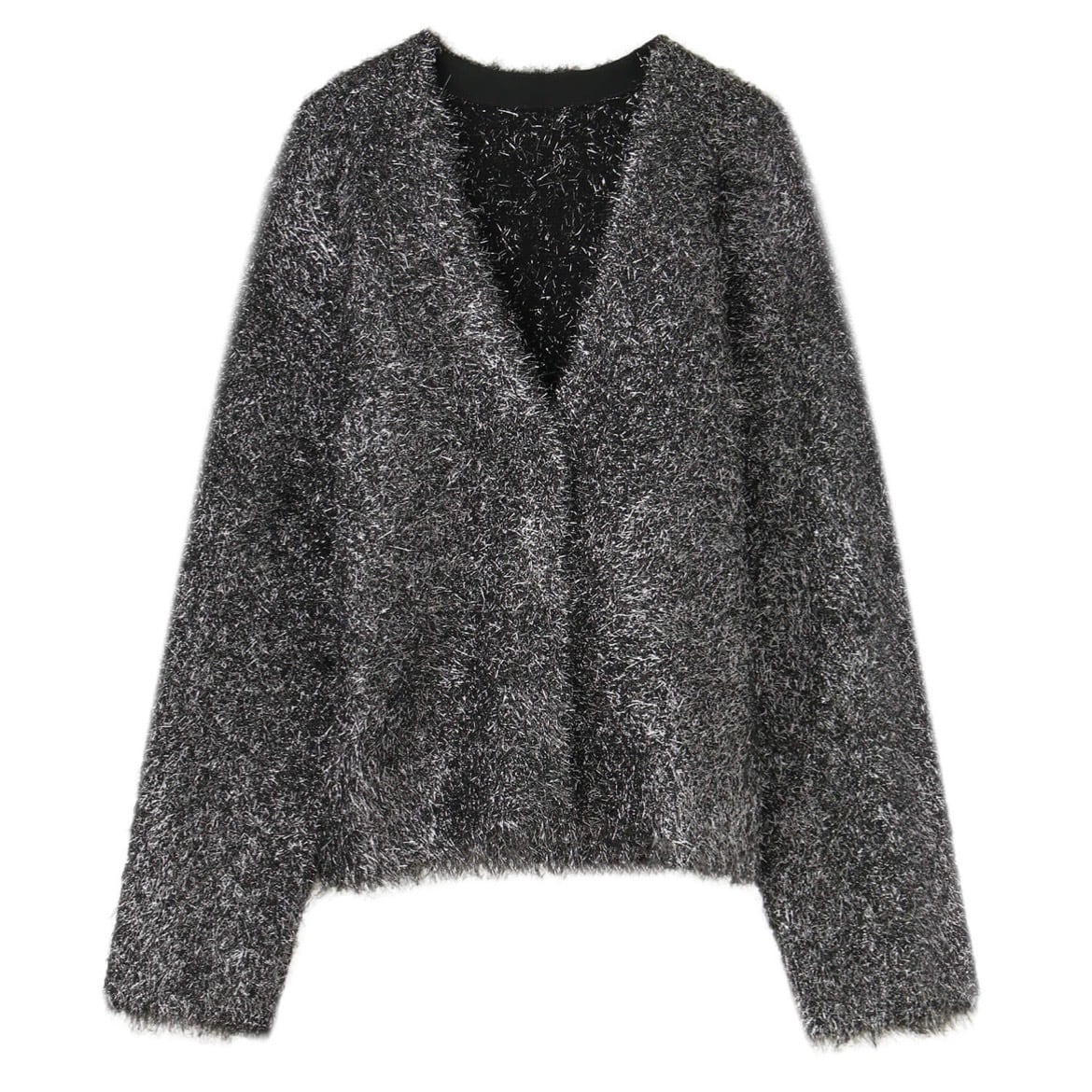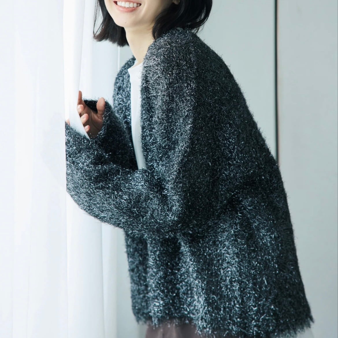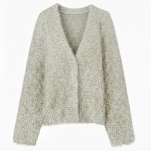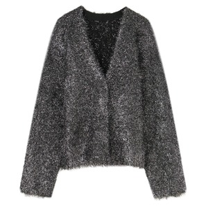 光沢のある糸とマットな糸をミックスした、表情豊かなシャギー素材のカーディガン。