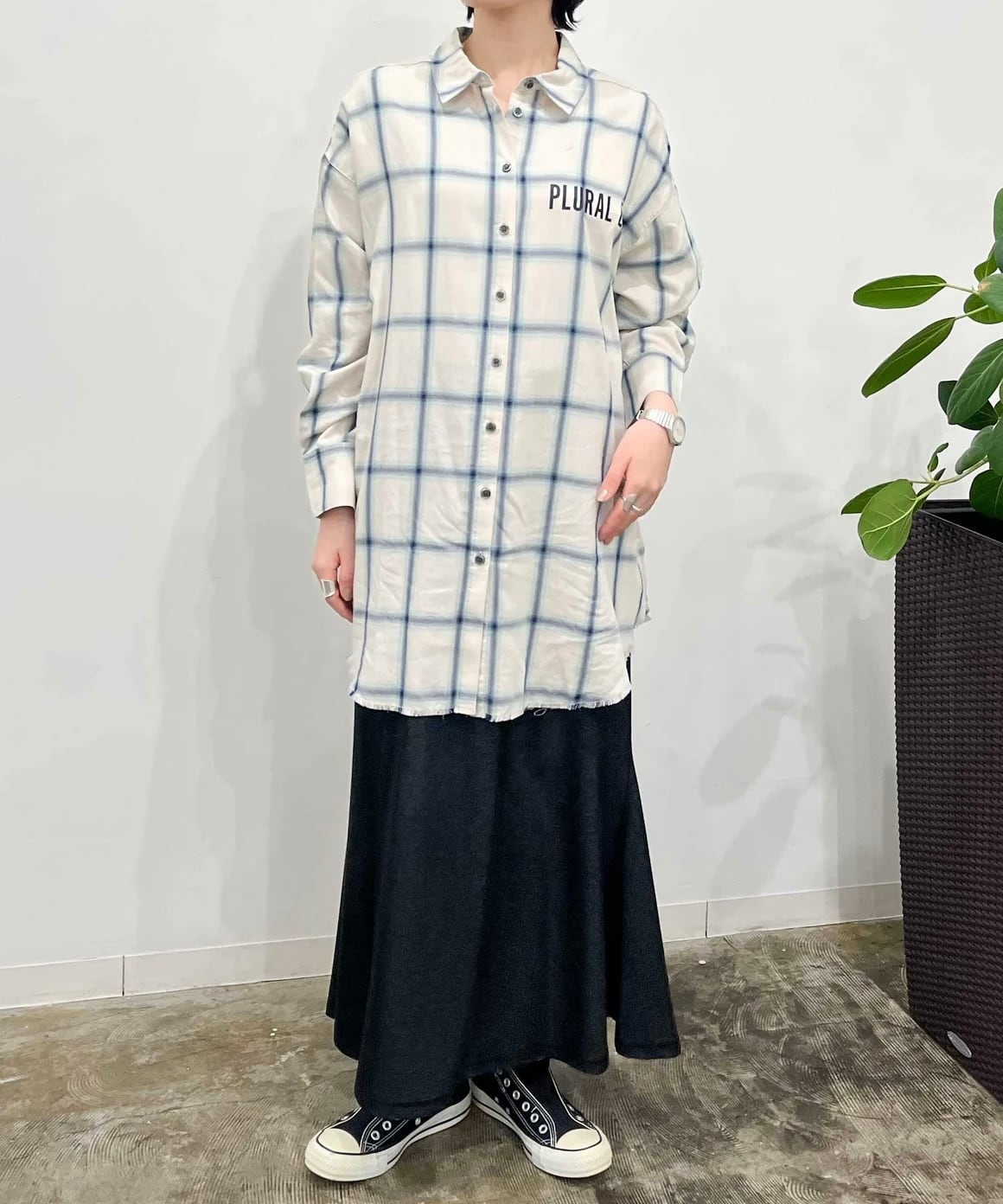 【 HERENCIA 】PLURAL Soft Check Long Shirt