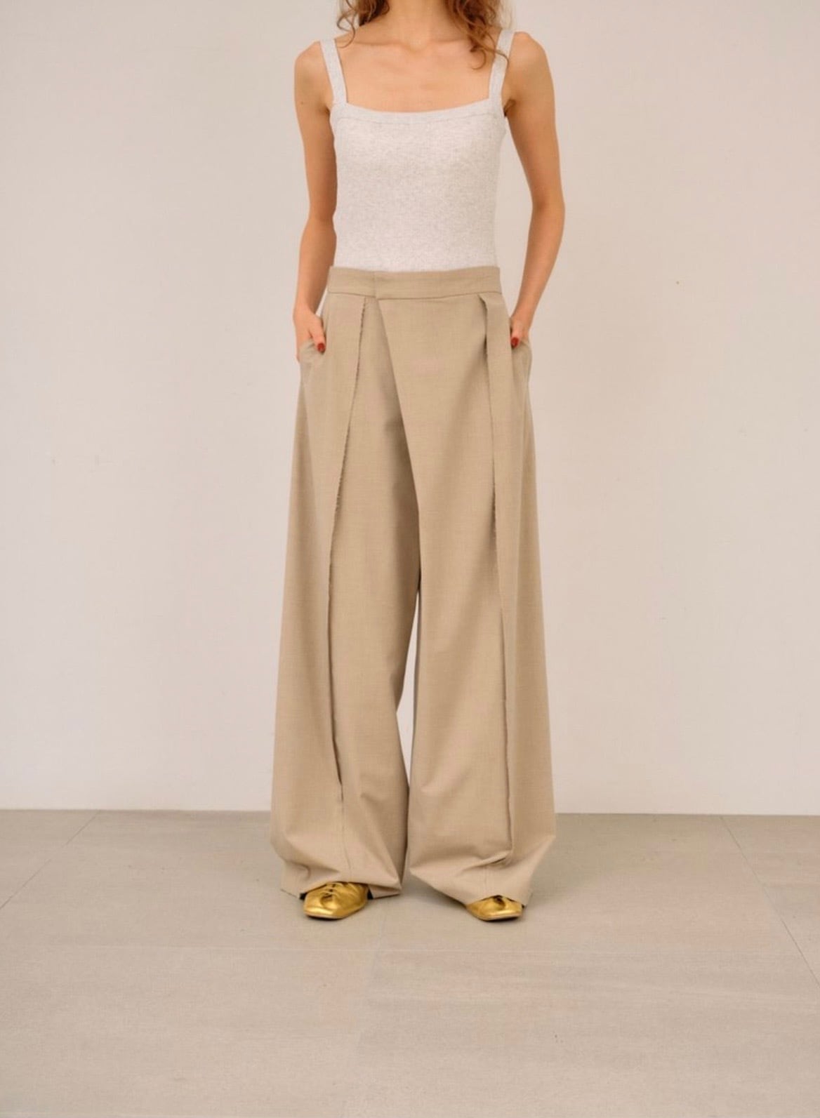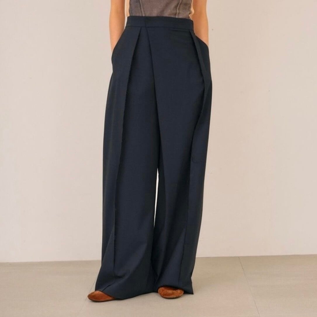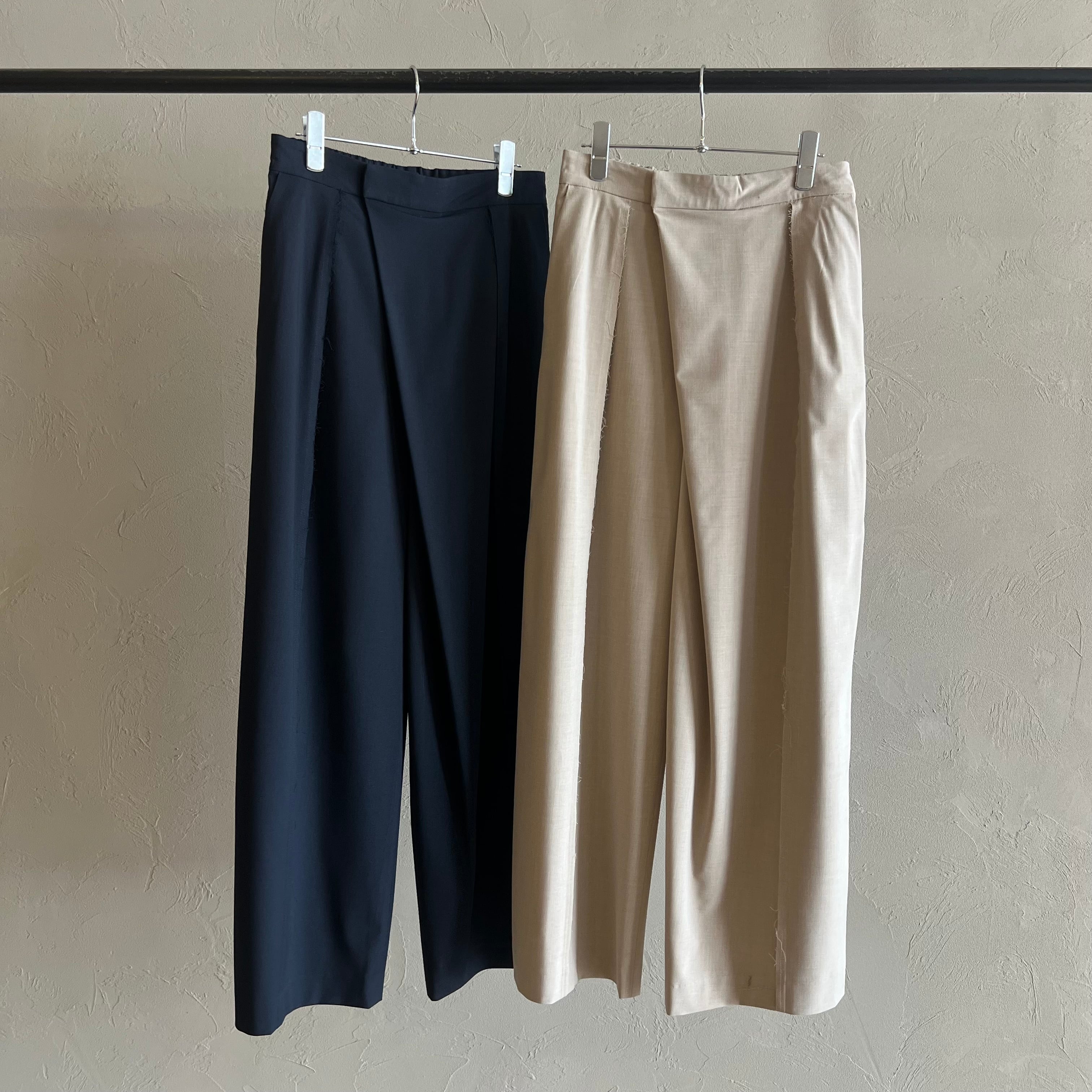 フロント箇所にカットオフデザインの入ったパンツ。