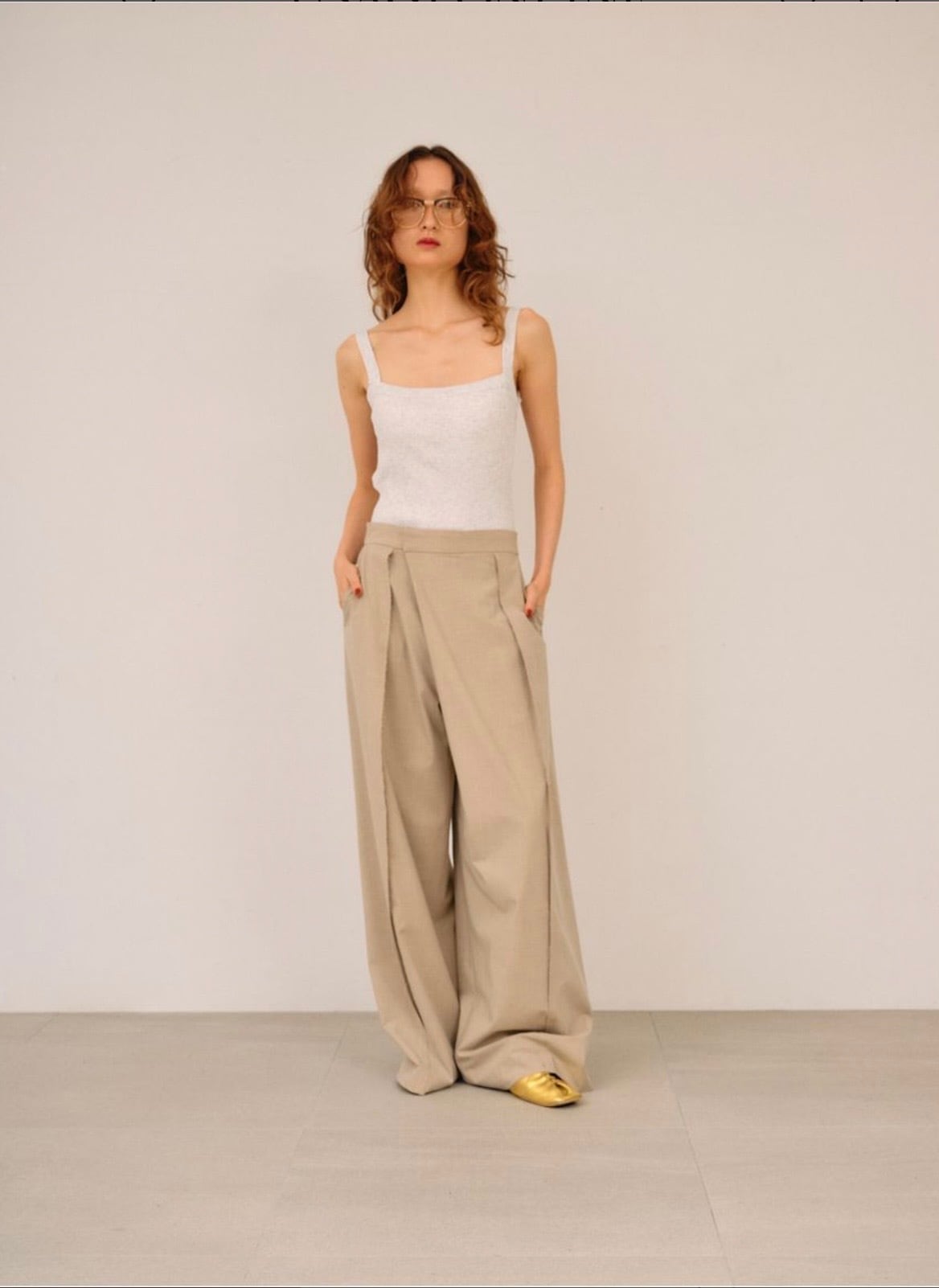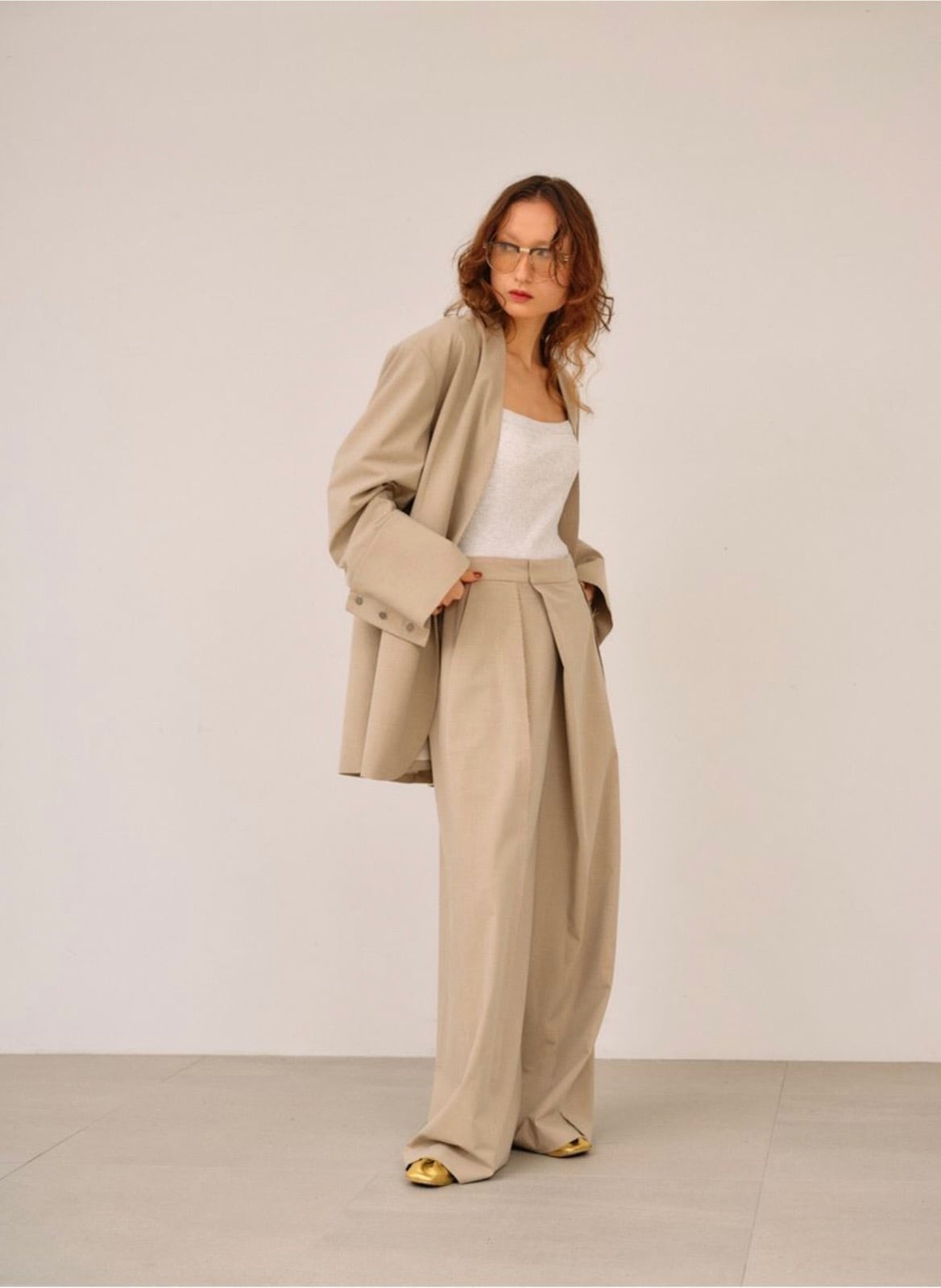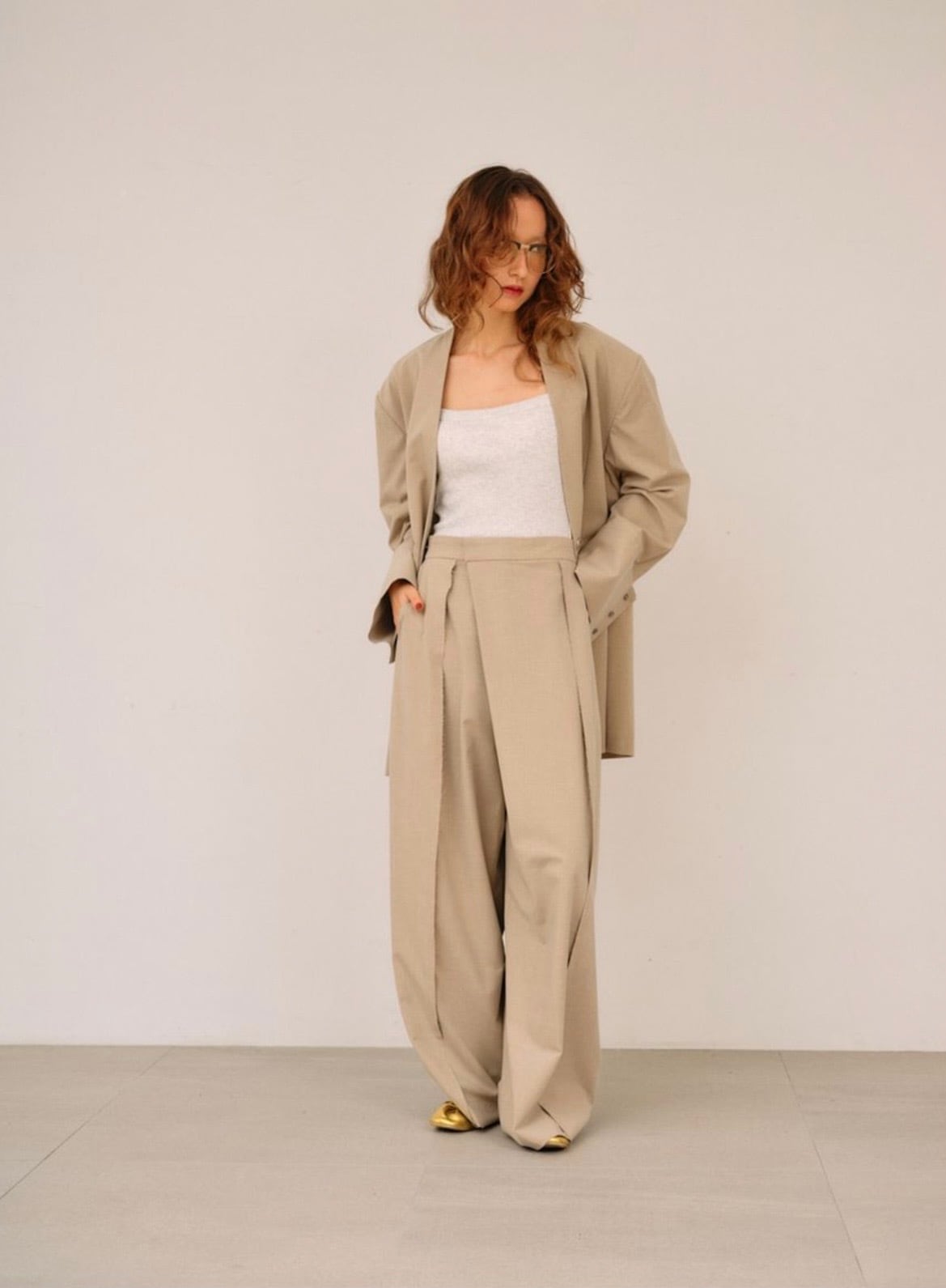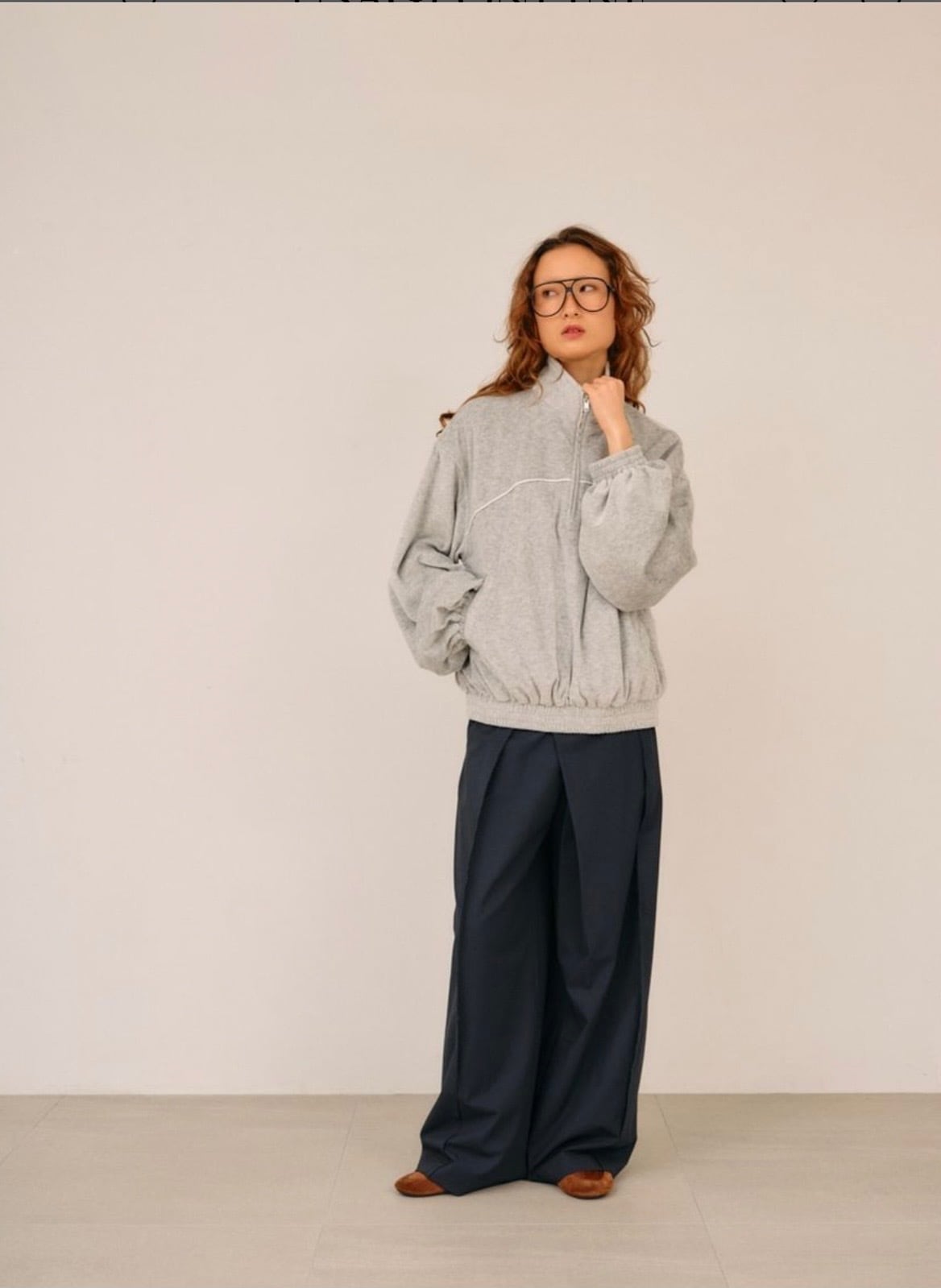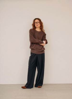 シワになりにくい素材でスウェットやカジュアルなカットソー合わせにも、