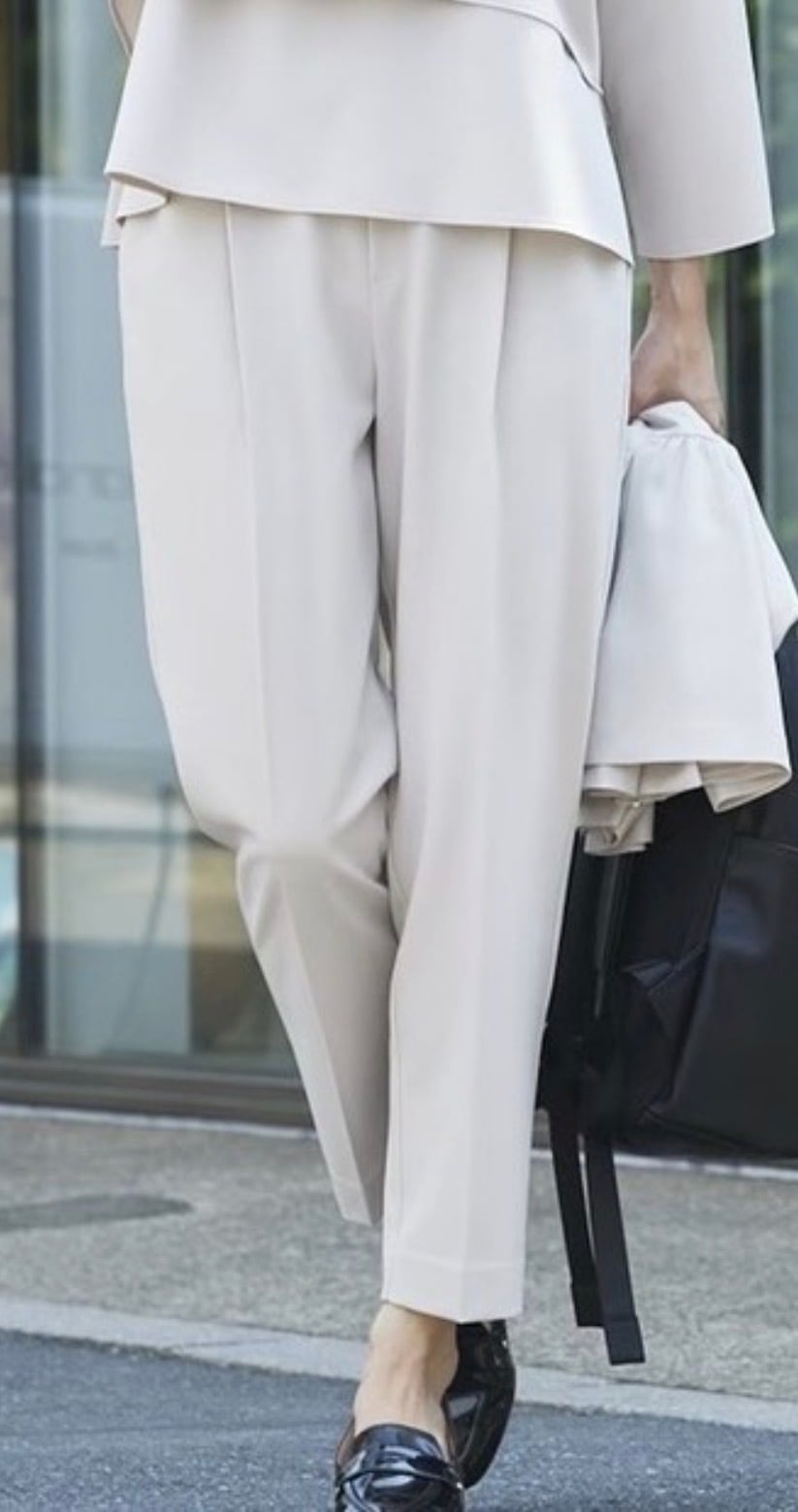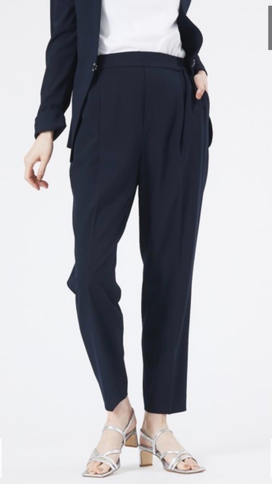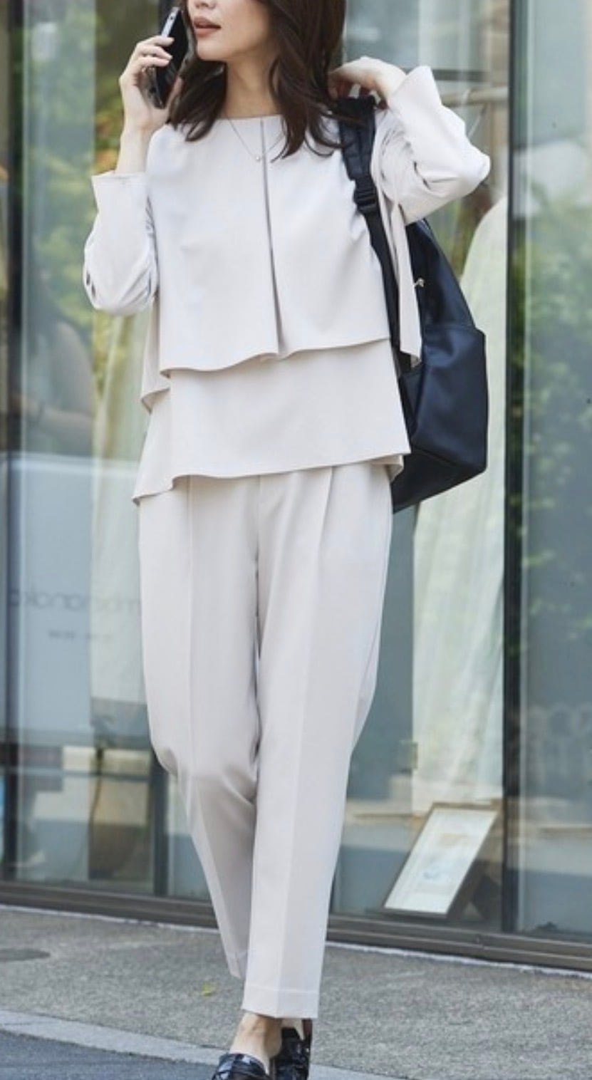 センタープレスのパンツは脚長効果と細見えの両方を叶える優秀アイテム。股上は少し深めで今っぽくこなれたシルエットです。きちんと感も兼ね備えたオンオフ使える美シルエットパンツです。