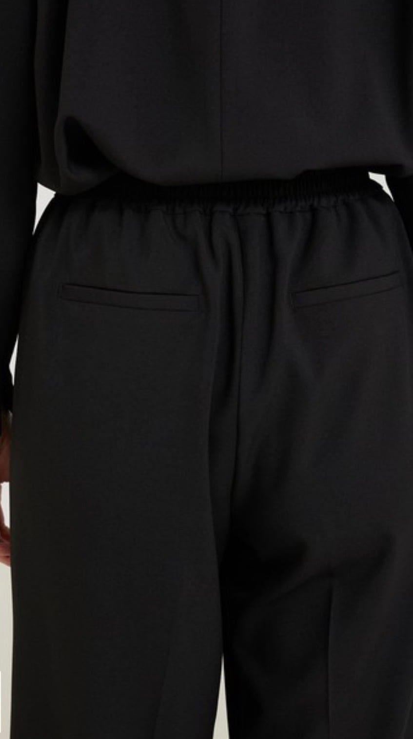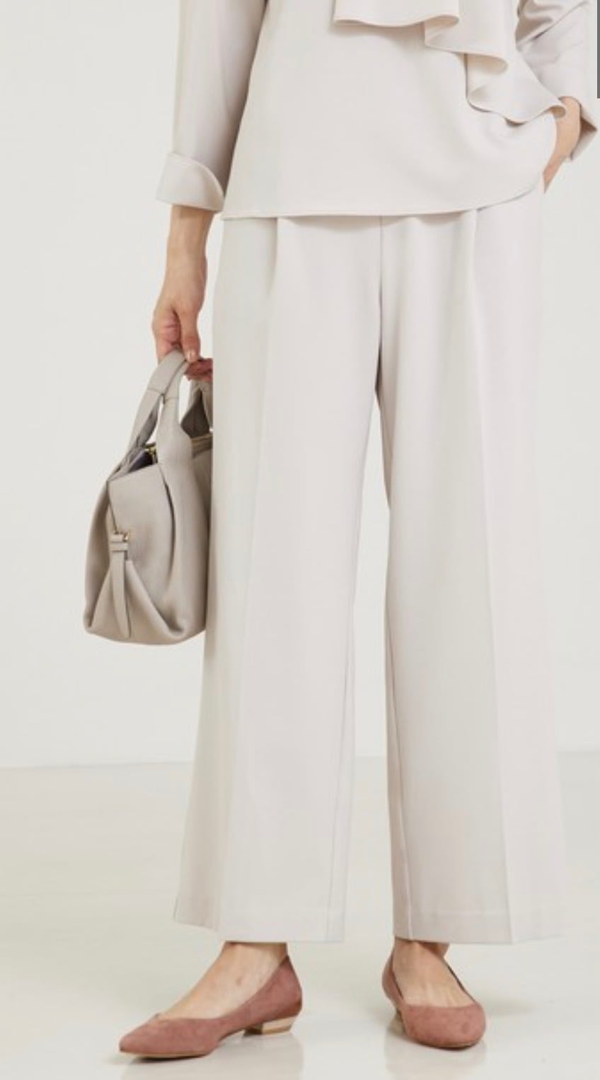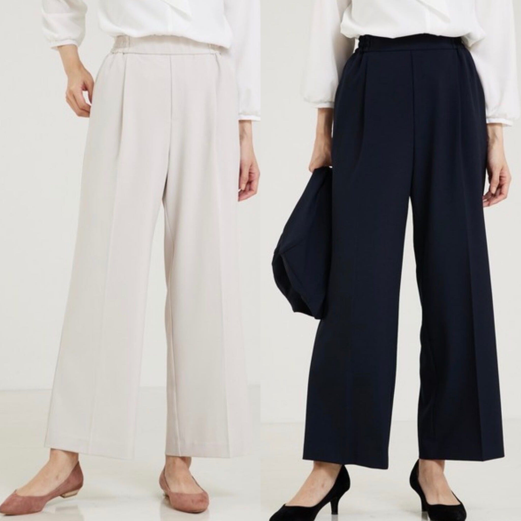 ウエストゴム仕様ながら、きちんと見えするフロントデザインなのでフォーマルなシーンでのタックインのスタイリングも◎