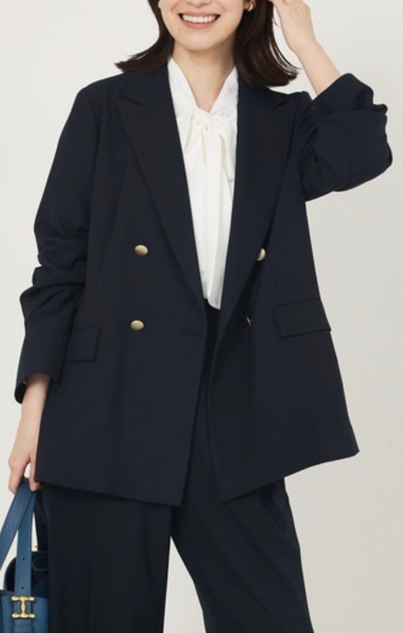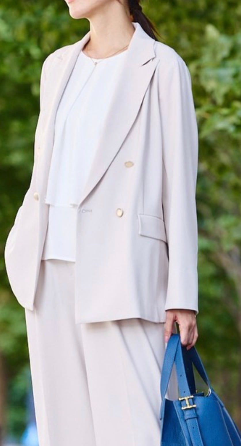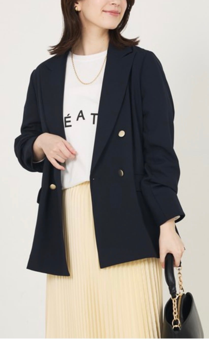 単品で大人カジュアルにはもちろん、同素材のパンツと合わせてセットアップに出来るので、オフィスやセレモニーシーンにも活躍間違いなしです。