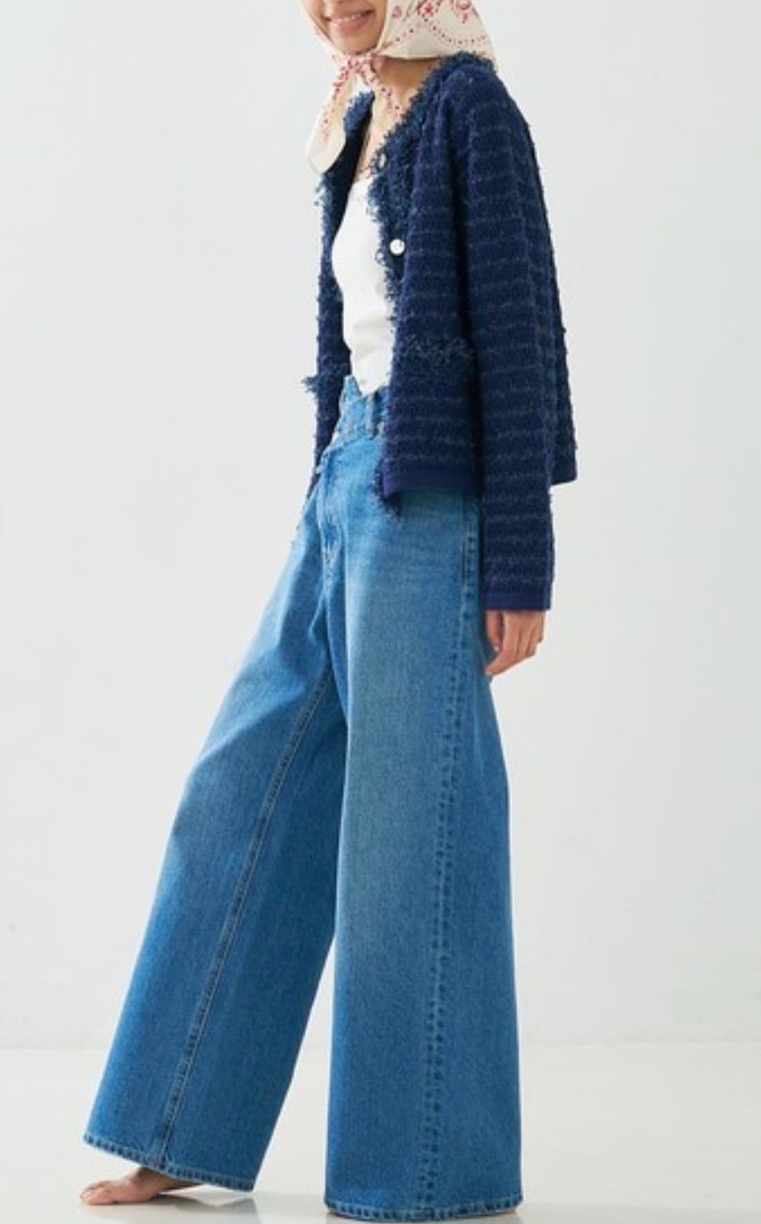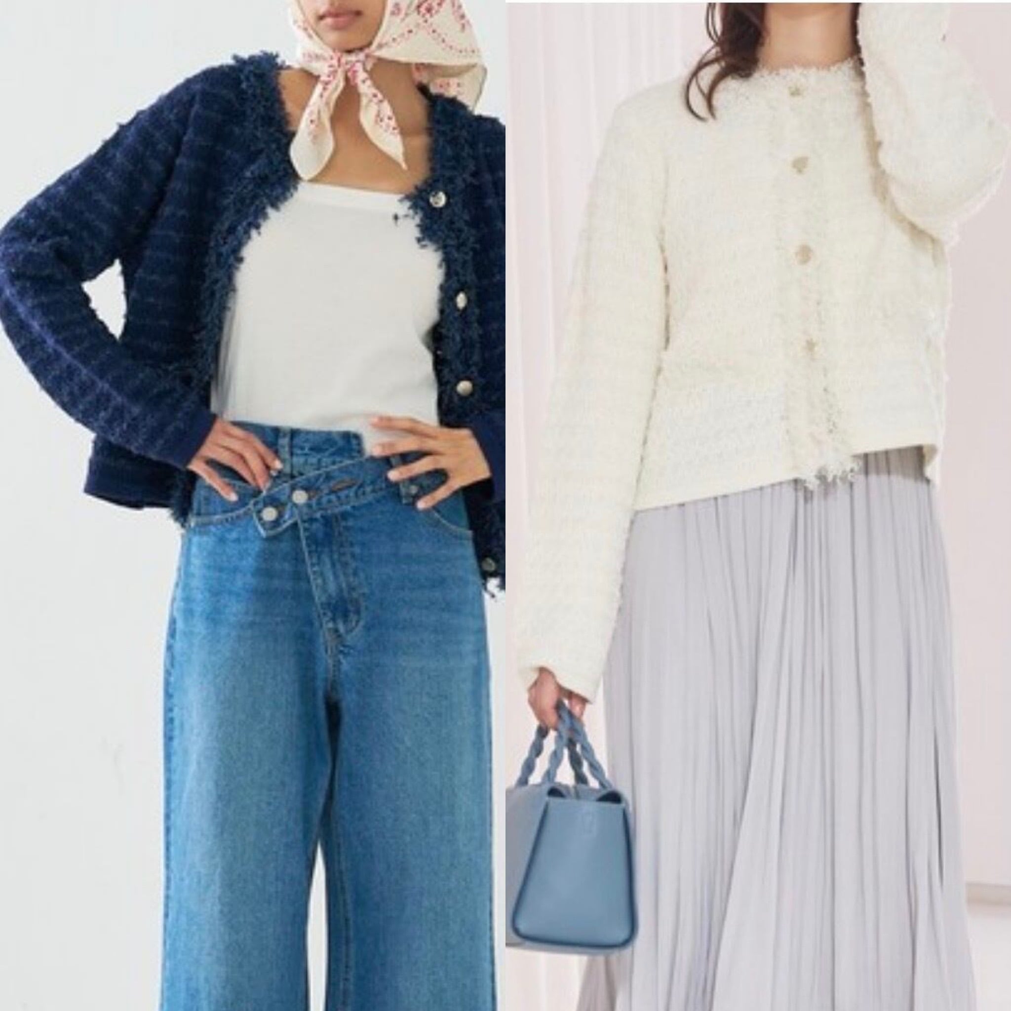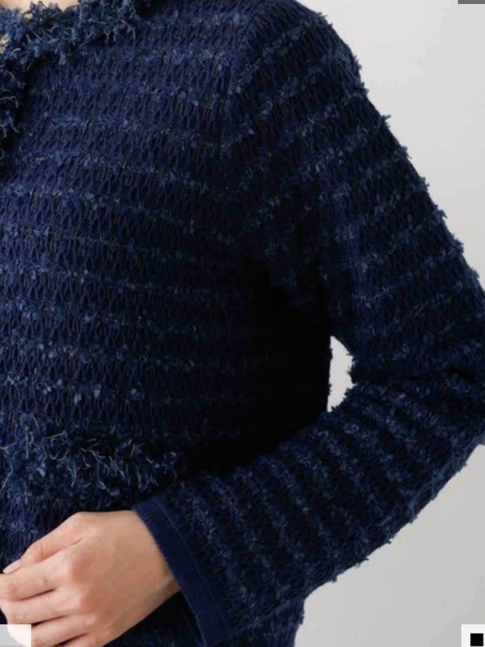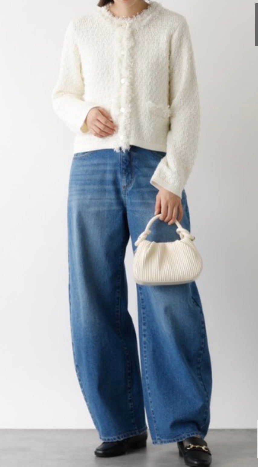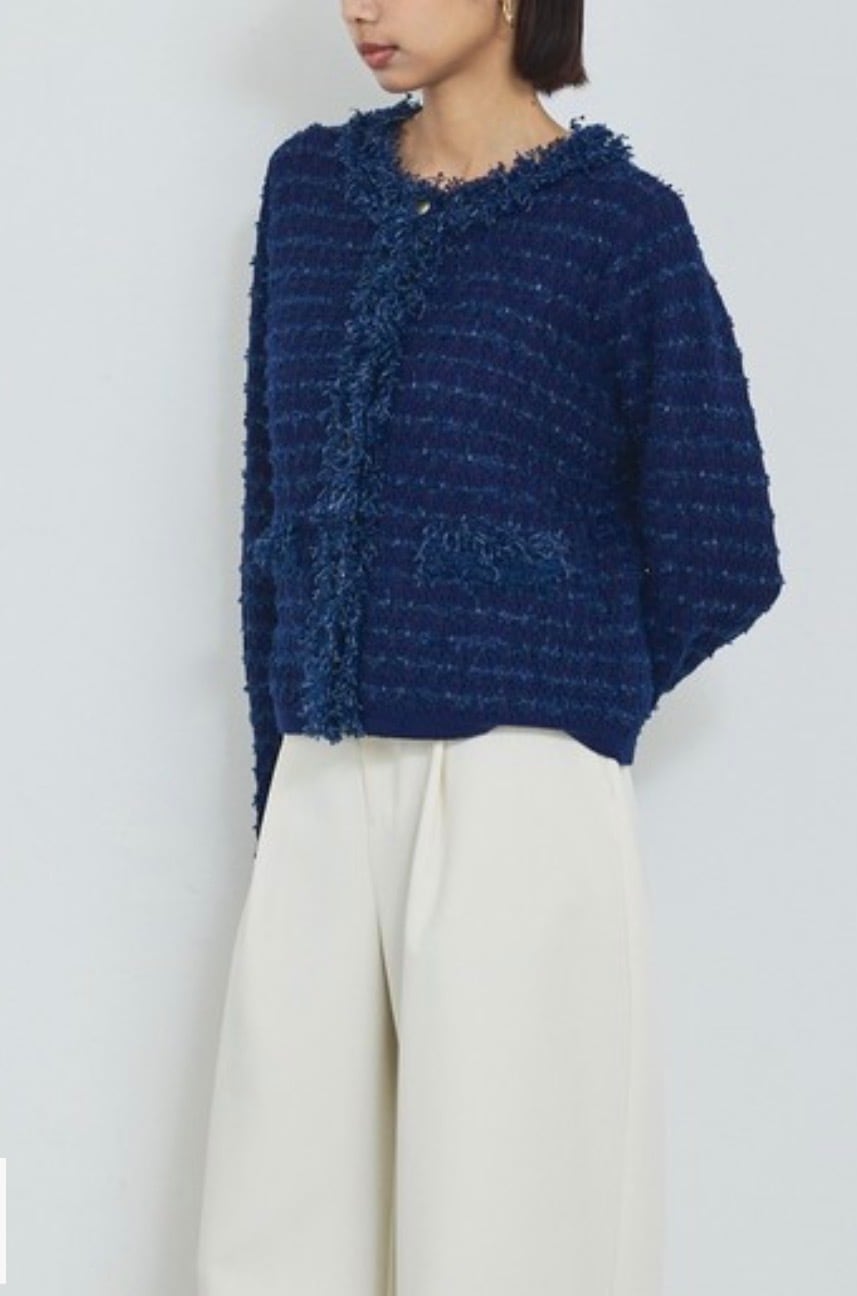 柔らかく着心地の良いジャケット風ニットカーディガン。端のフリンジが華やかなツイード織り、さらにシャネルカラーでジャケットとしての存在感をちゃんともつ1着。トレンドのコンパクトタイプ、でも実は素材がニットなのでトップス感覚で楽に着れちゃう嬉しい女子アイテムです。スタイリング次第でカジュアルからオケージョンまで幅広く活躍します。