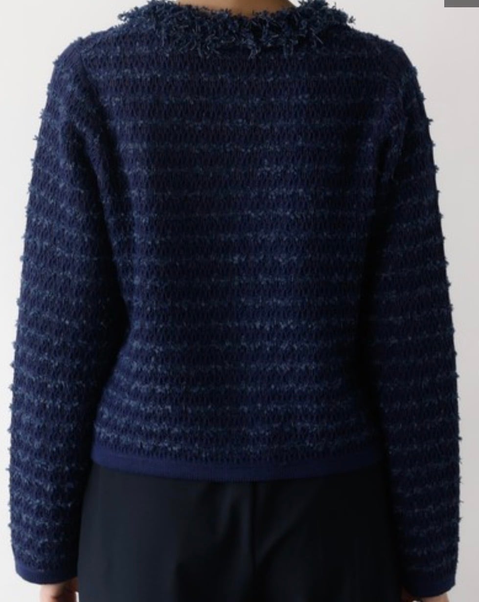 優しく編まれたツイード調ニット。とても柔らかく伸縮性もあるので、中にシャツを重ねたりも出来ます。