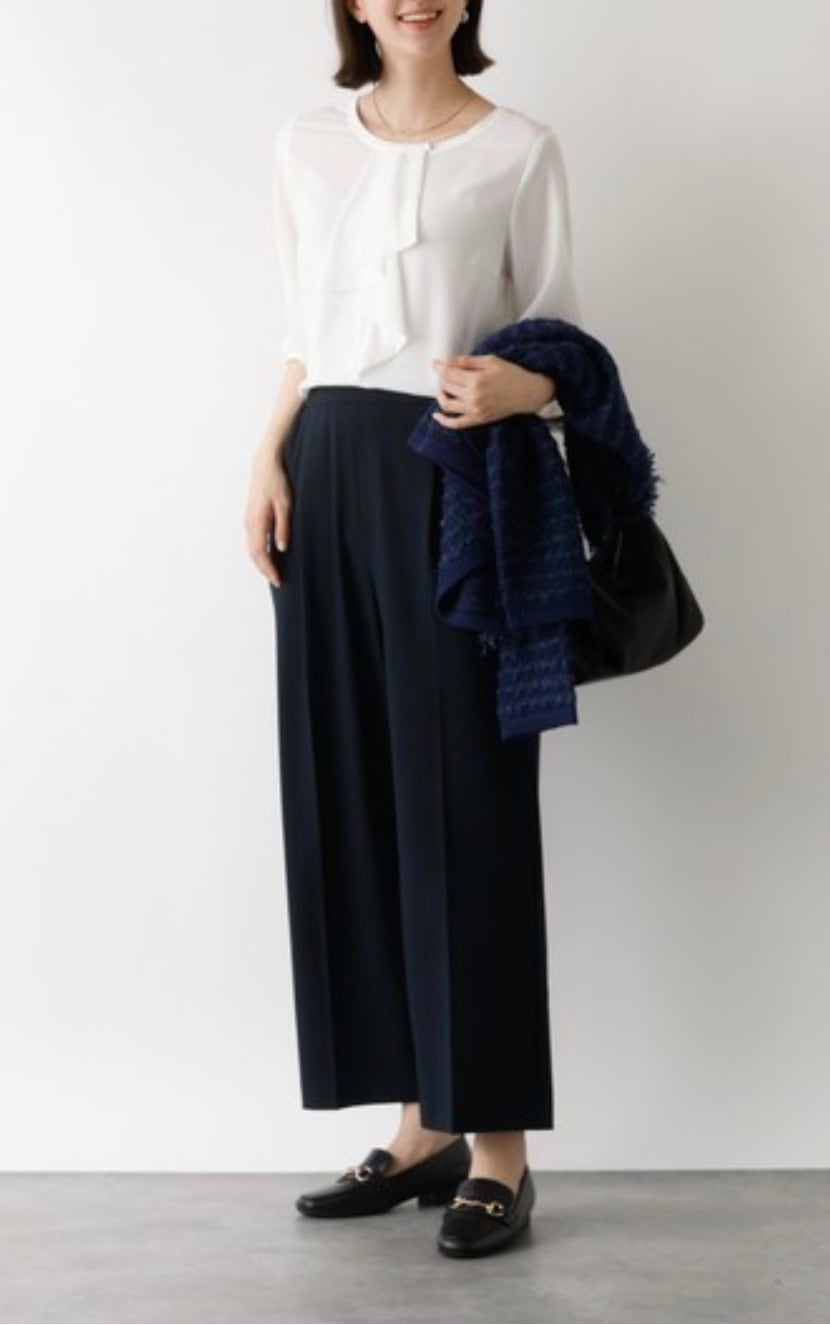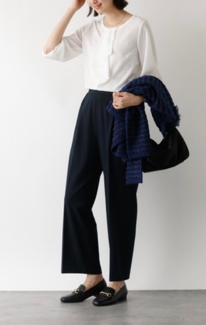 裾が長すぎずインのスタイルが特にきれいにきまります。ヒップ側も余り過ぎないのでフロントのみインのスタイリングも◎お仕事シーンにもおすすめ。トレンドのキレイ目ジレやベストのインにもとても合わせやすいです。