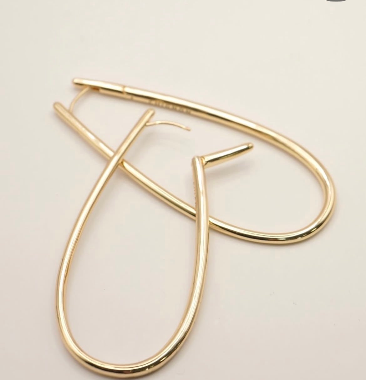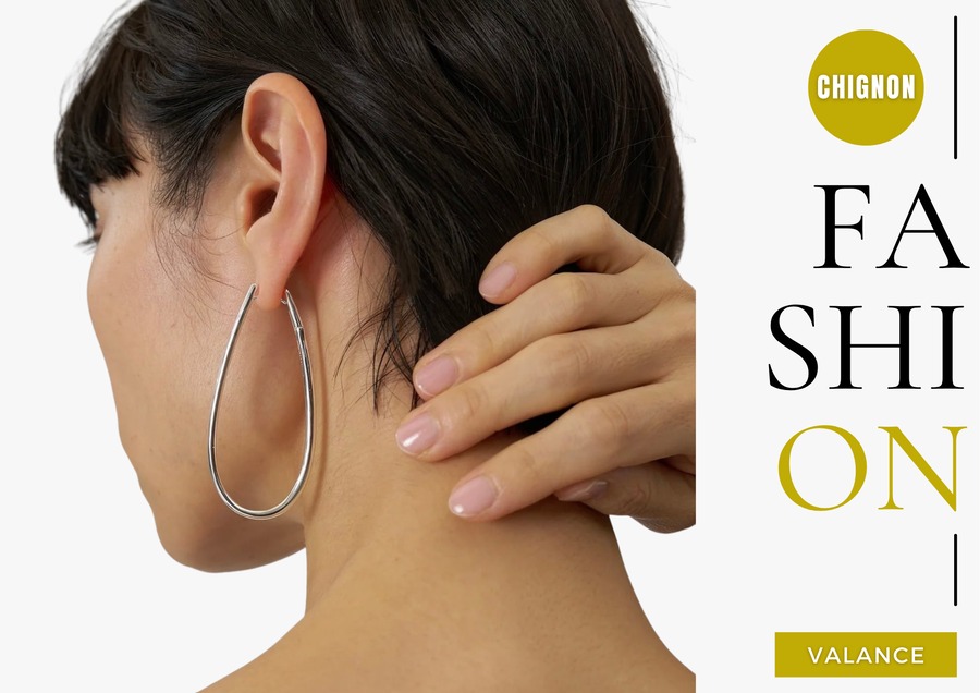 ドロップ型の大振りフープピアスは、後ろから見てもシンプルで無駄のない仕様にしています。