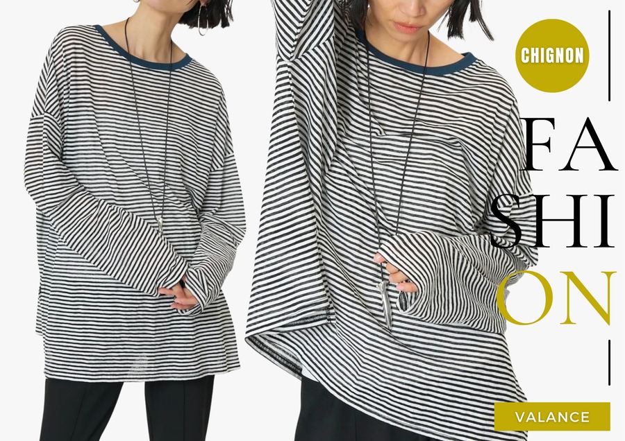 シンプルなボーダー柄は、デニムやスラックスなどどんなボトムとも好相性です。