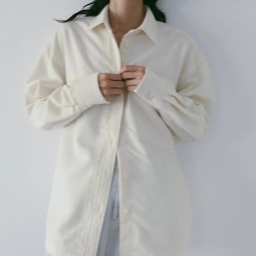 ネップのある表情豊かな素材を使用したオーバーシャツ。