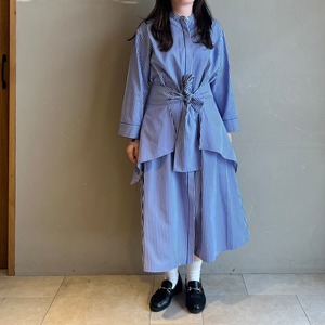 爽やかなブルーストライプが縦ラインを強調して、すっきり見えを叶えてくれます。